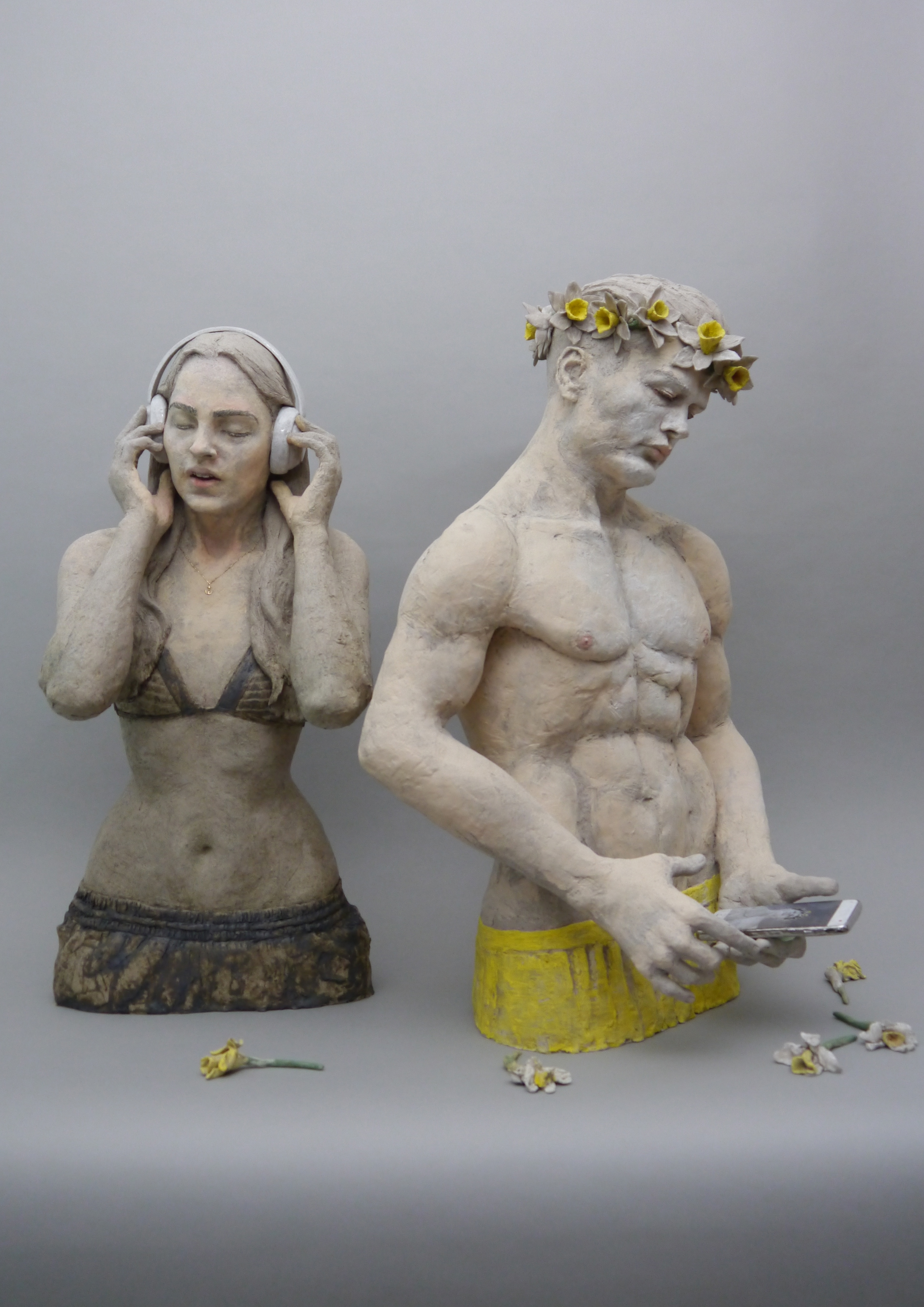 Stoneware, engobe, oxides, glaze, ceramic decal, luster