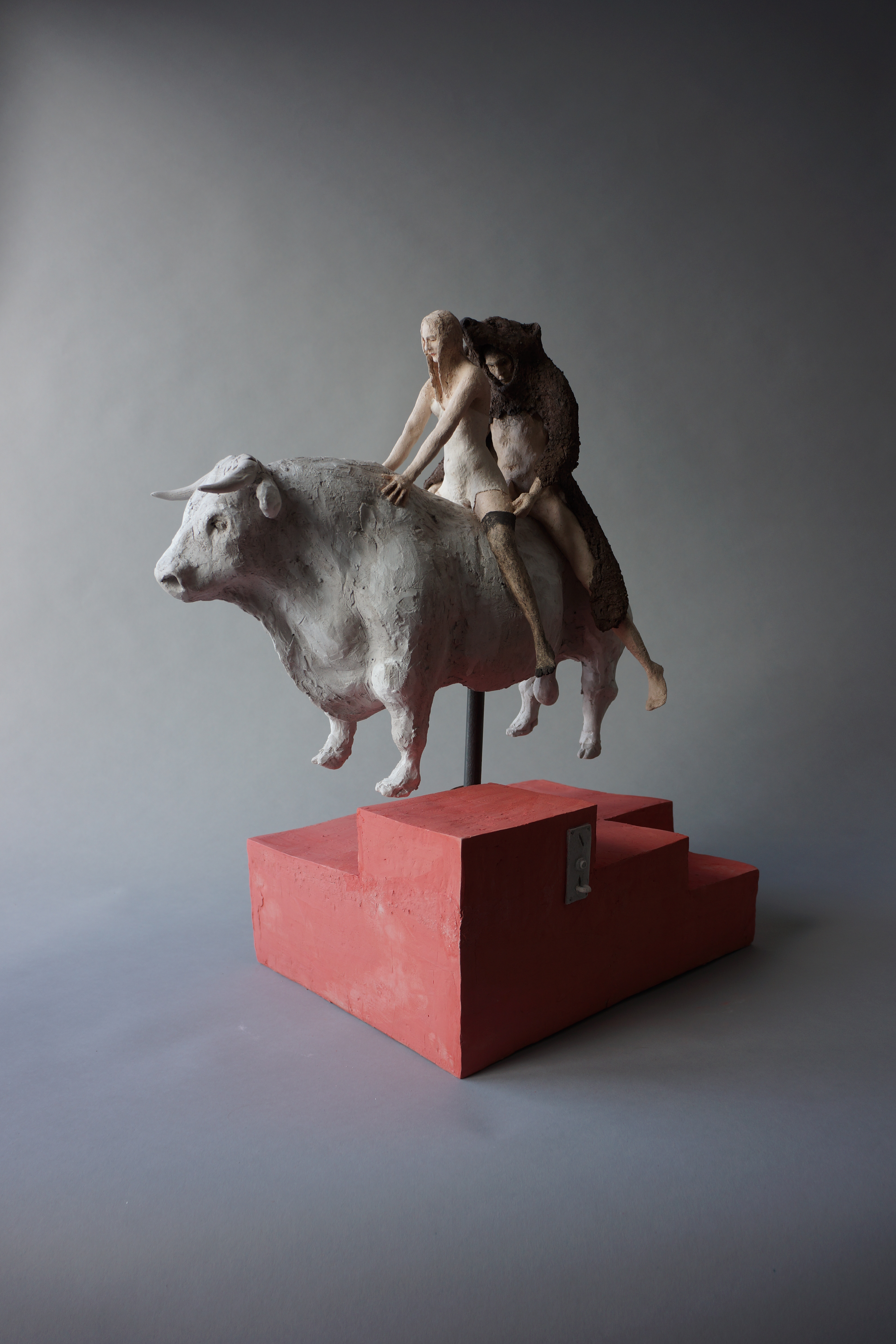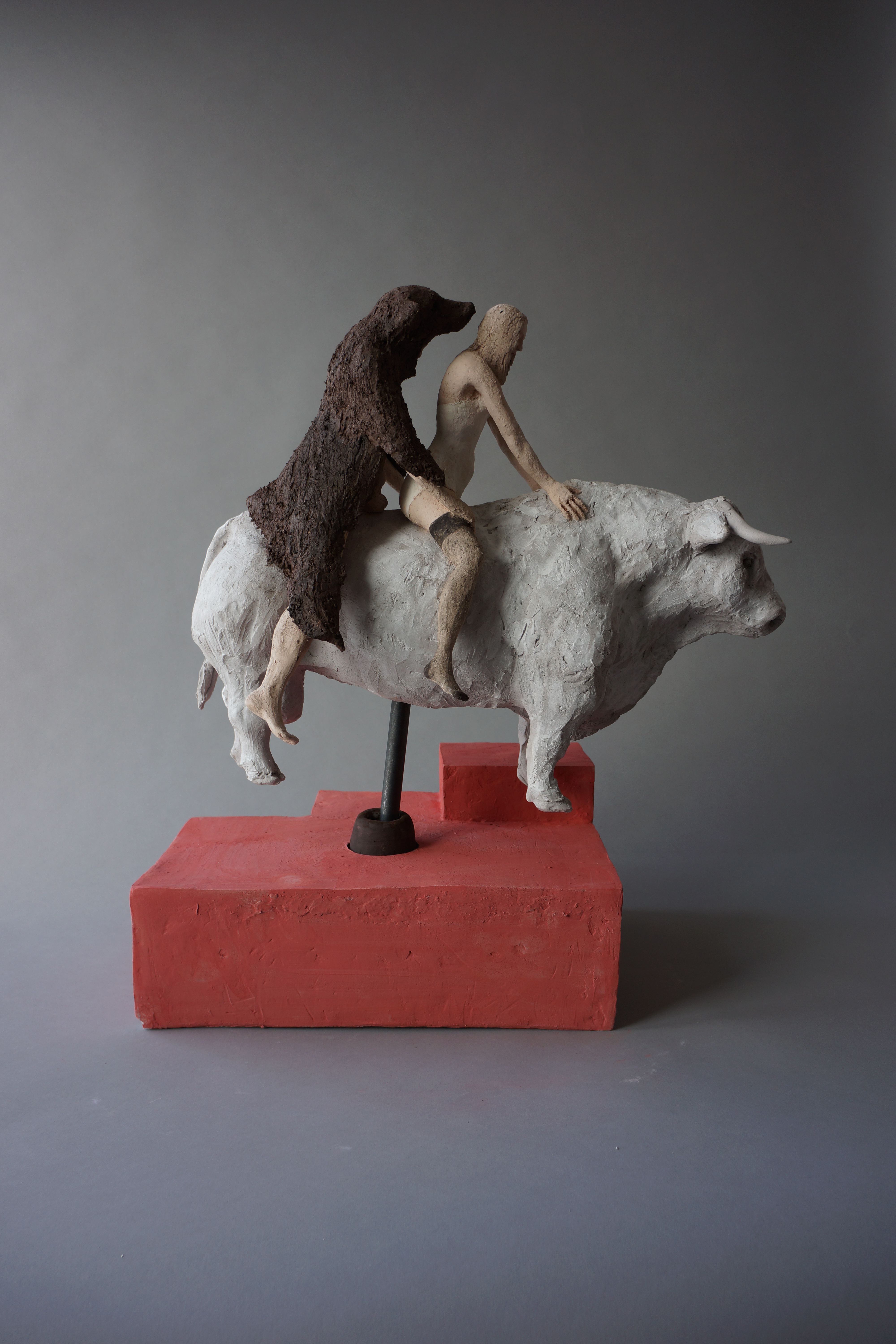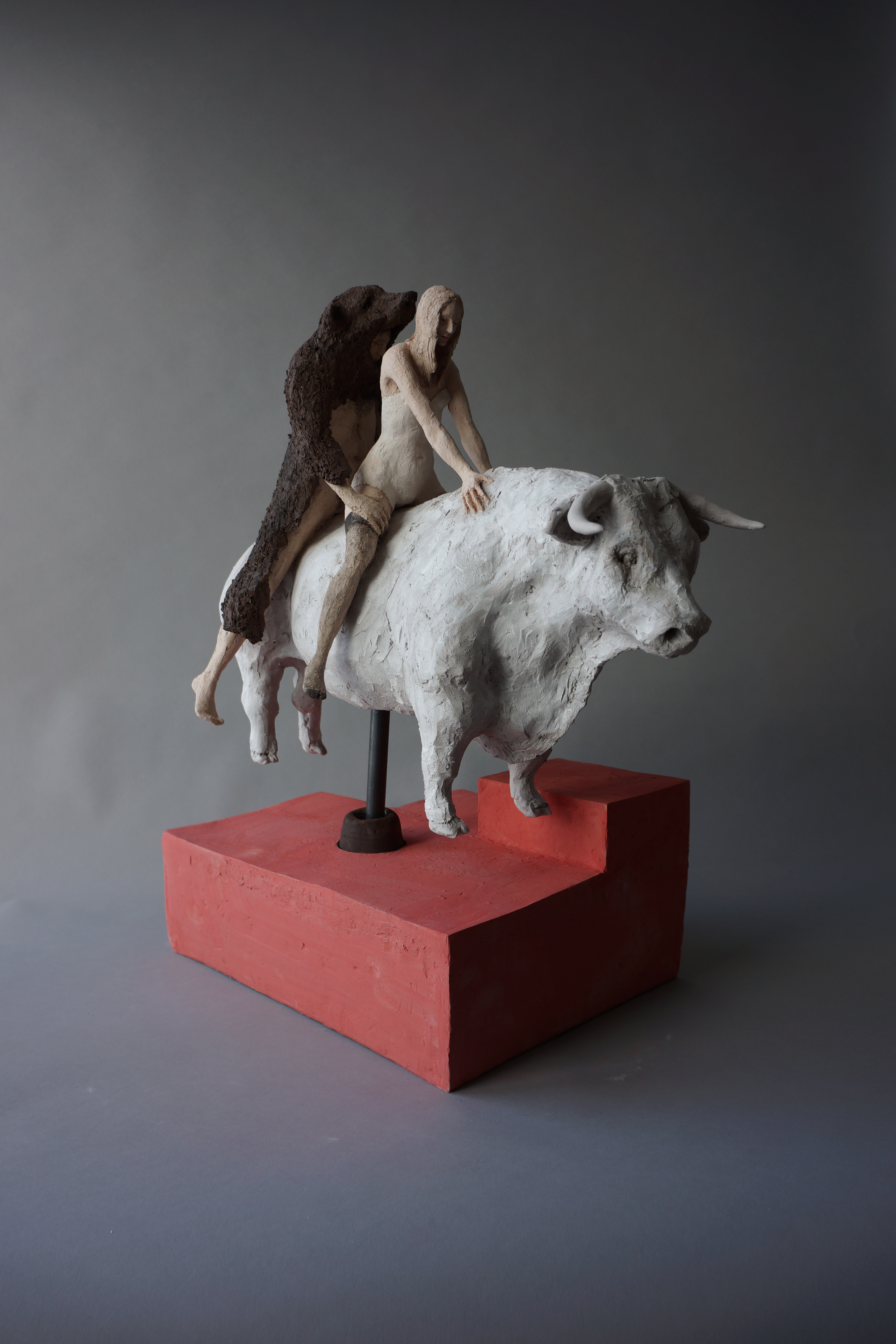 Europa and the bull, 2012 42 x 26 x 53 cm Stoneware, engobe, pigments, oxides, metal rod, epoxy adhesive