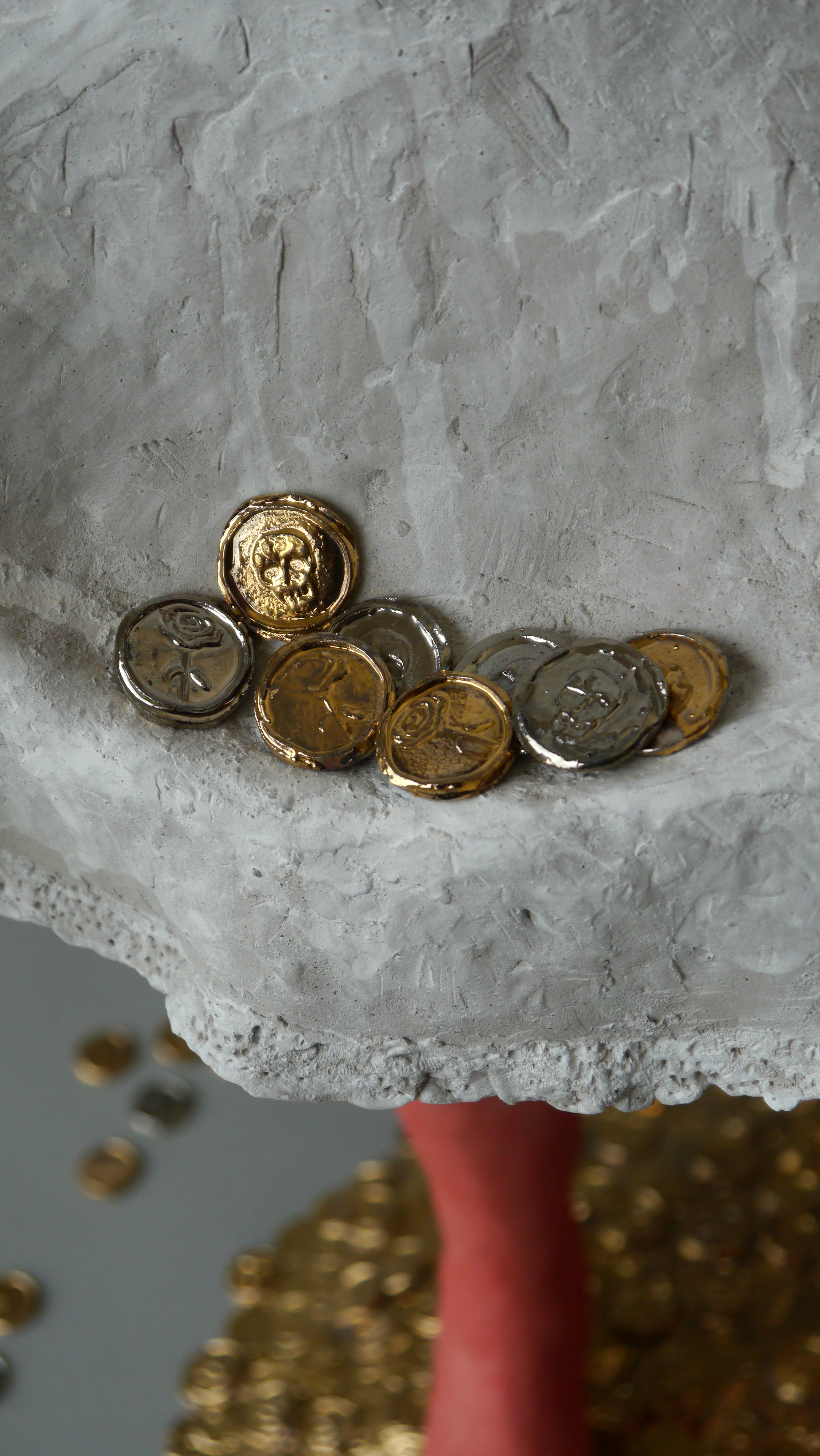 Stoneware, pigments, glaze, platinum luster, gold luster
