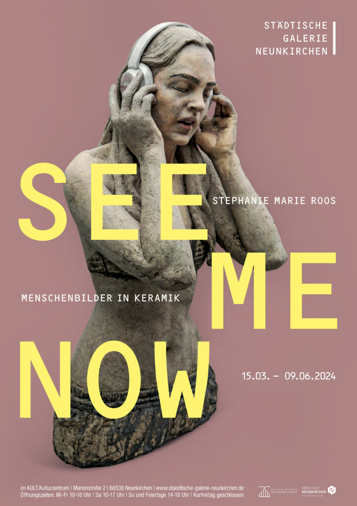 In der bildnerischen Annäherung an die andere, die fremde Person relativieren sich Perspektiven der Nähe und der Distanz. Die keramischen Menschenbilder von Stephanie Marie Roos sind Bildnisse von Zeitgenossen, die Beachtung einfordern für sich und das, wofür sie stehen: „See. Me. Now!“ Aber sie besitzen Authentizität auch jenseits des Abbildlichen.