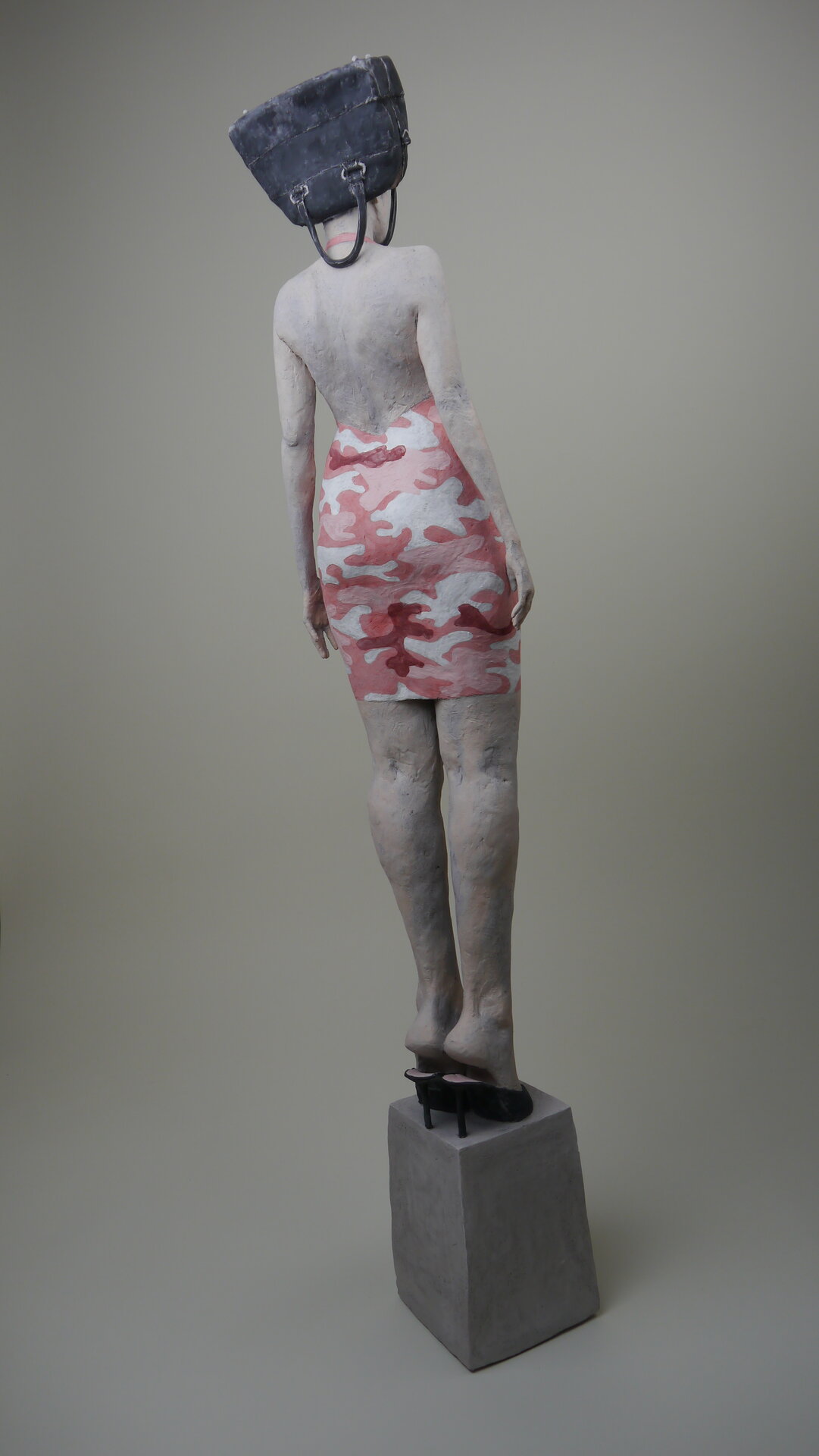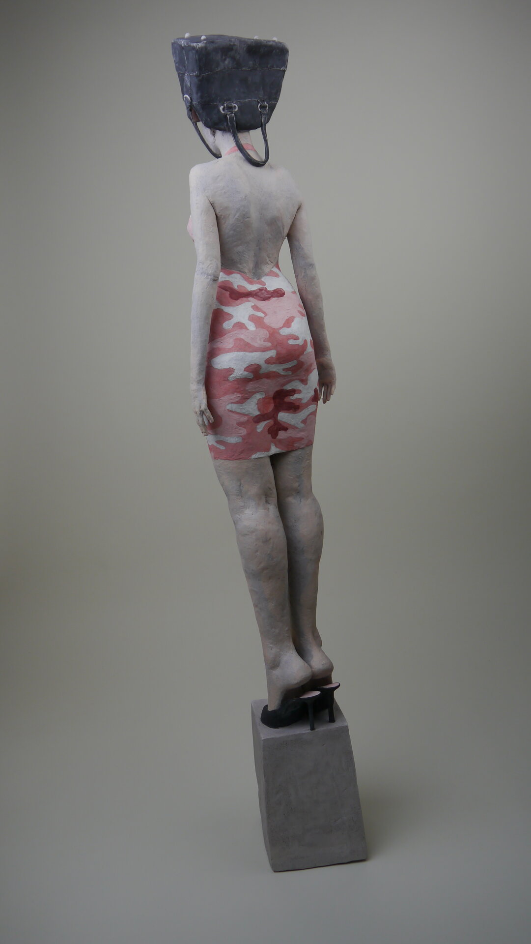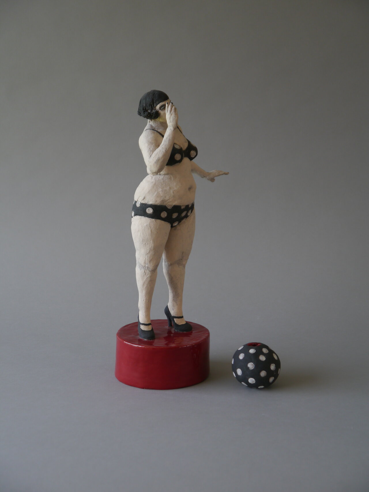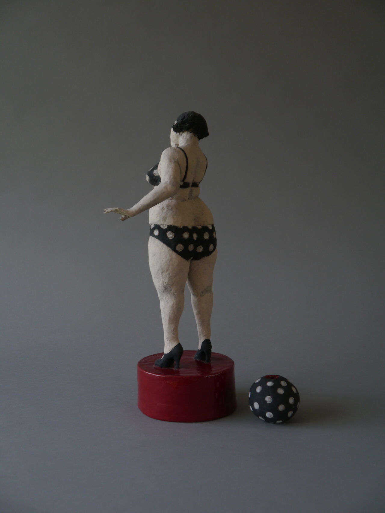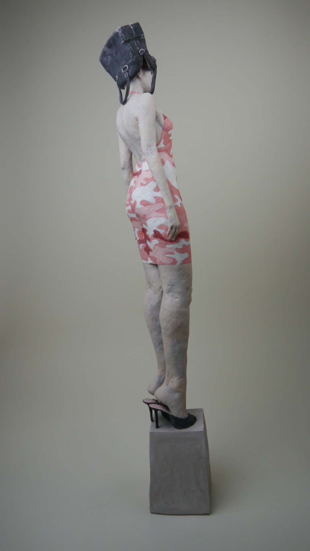 Figur: 18 x 37 x 12 cm, Vasenobjekt: 6 x 6 x 6 cm