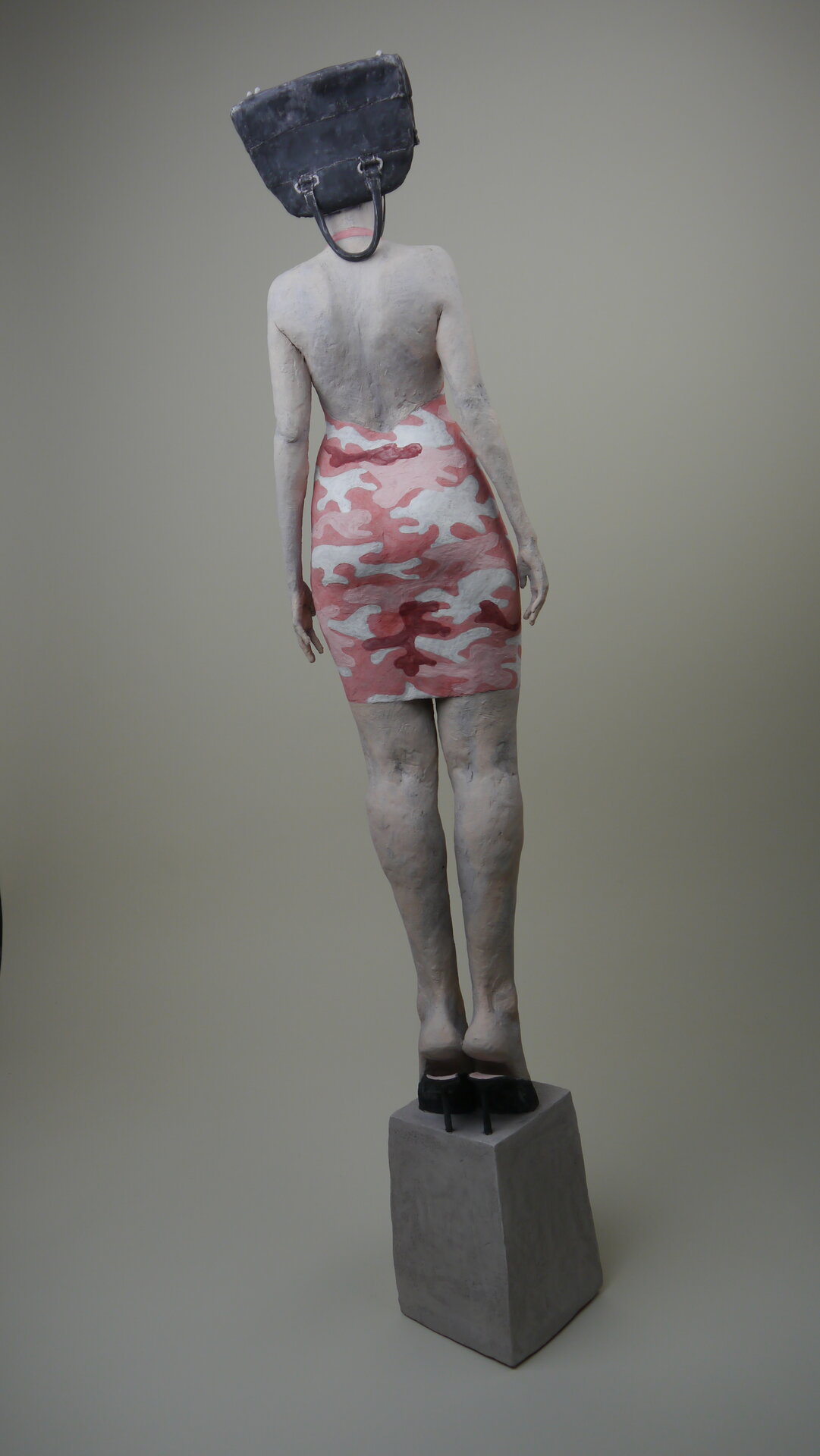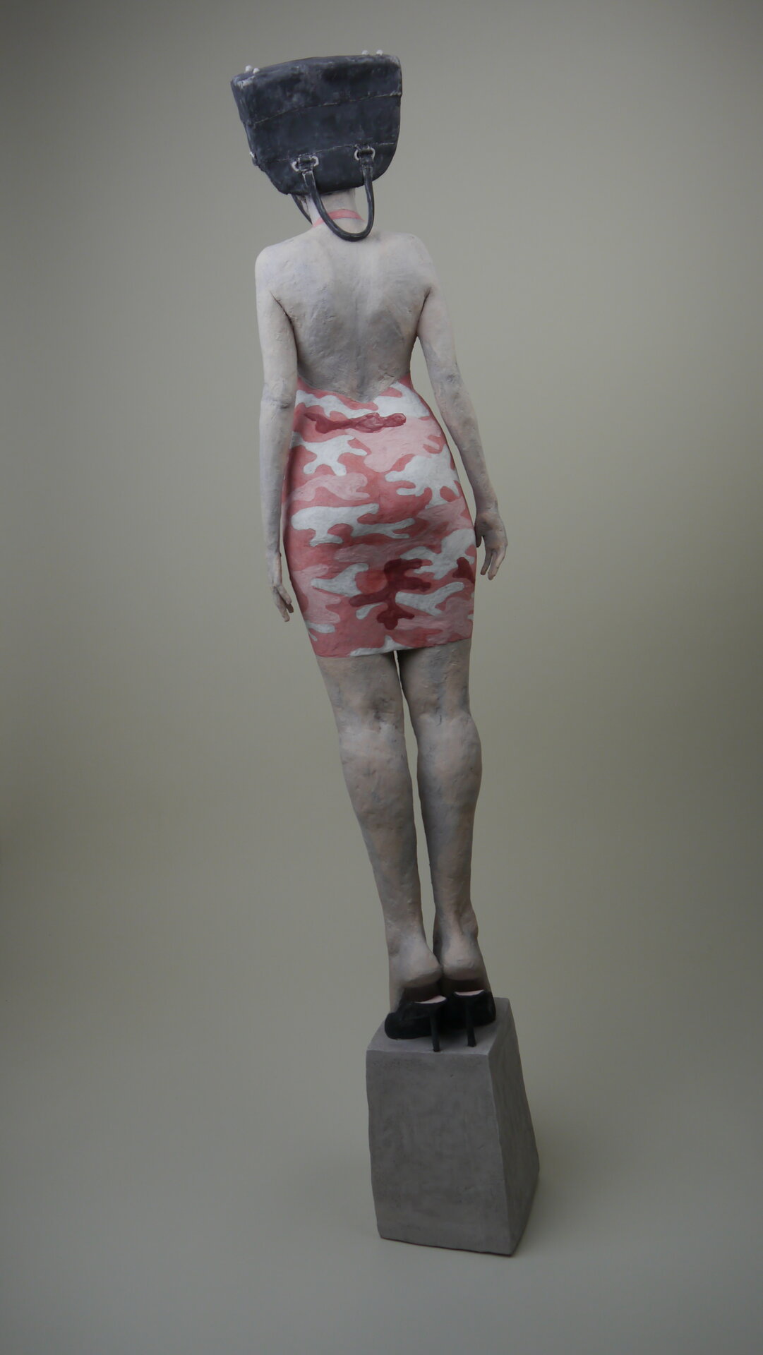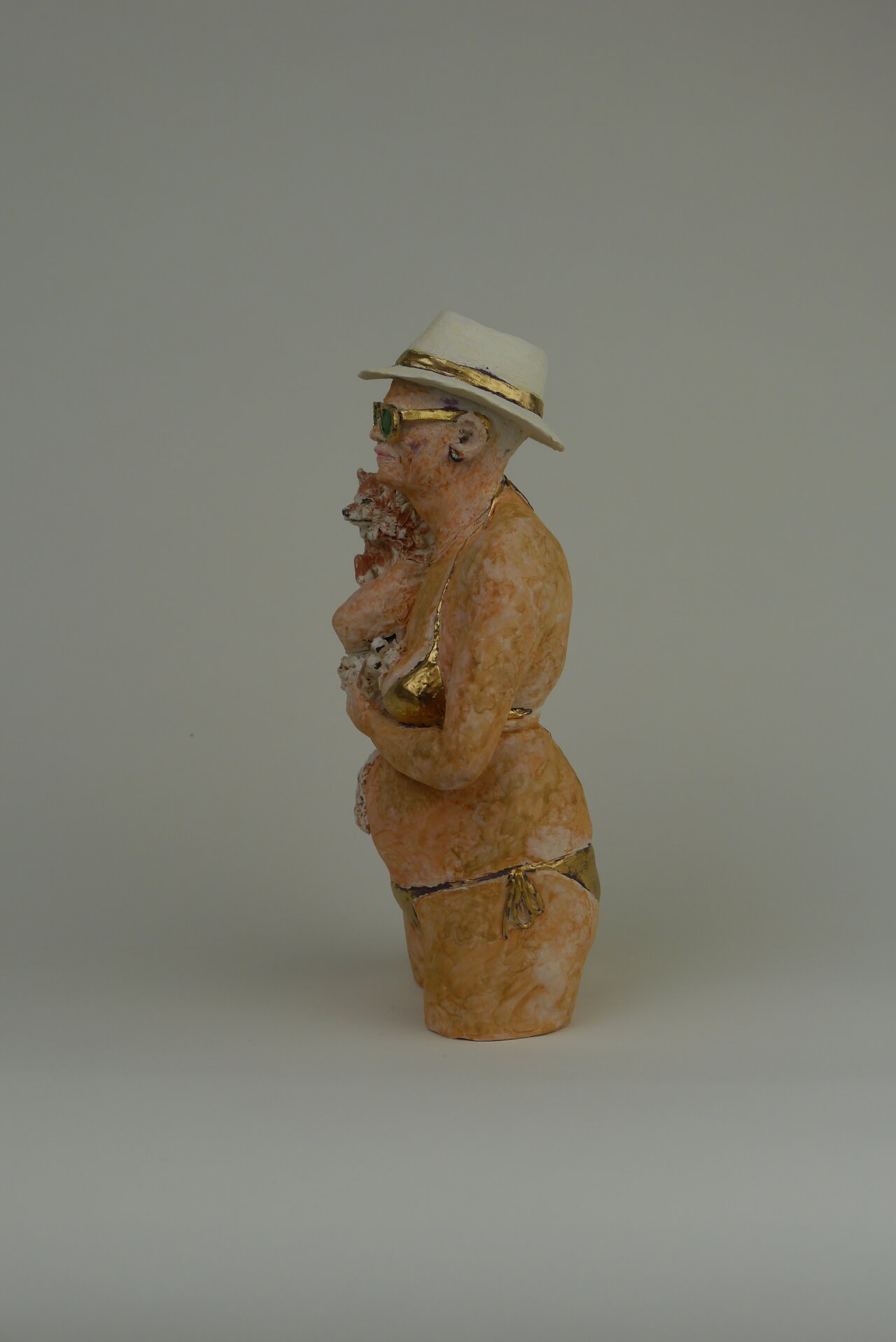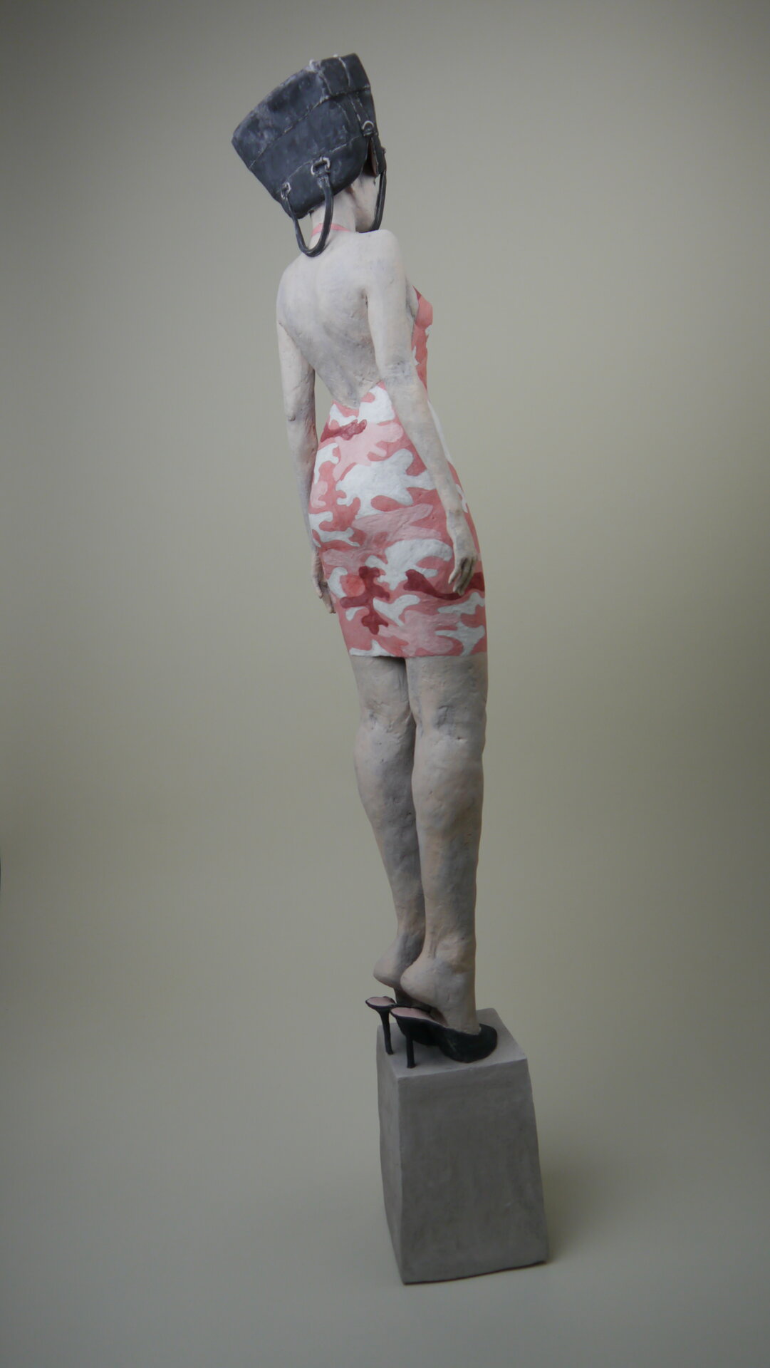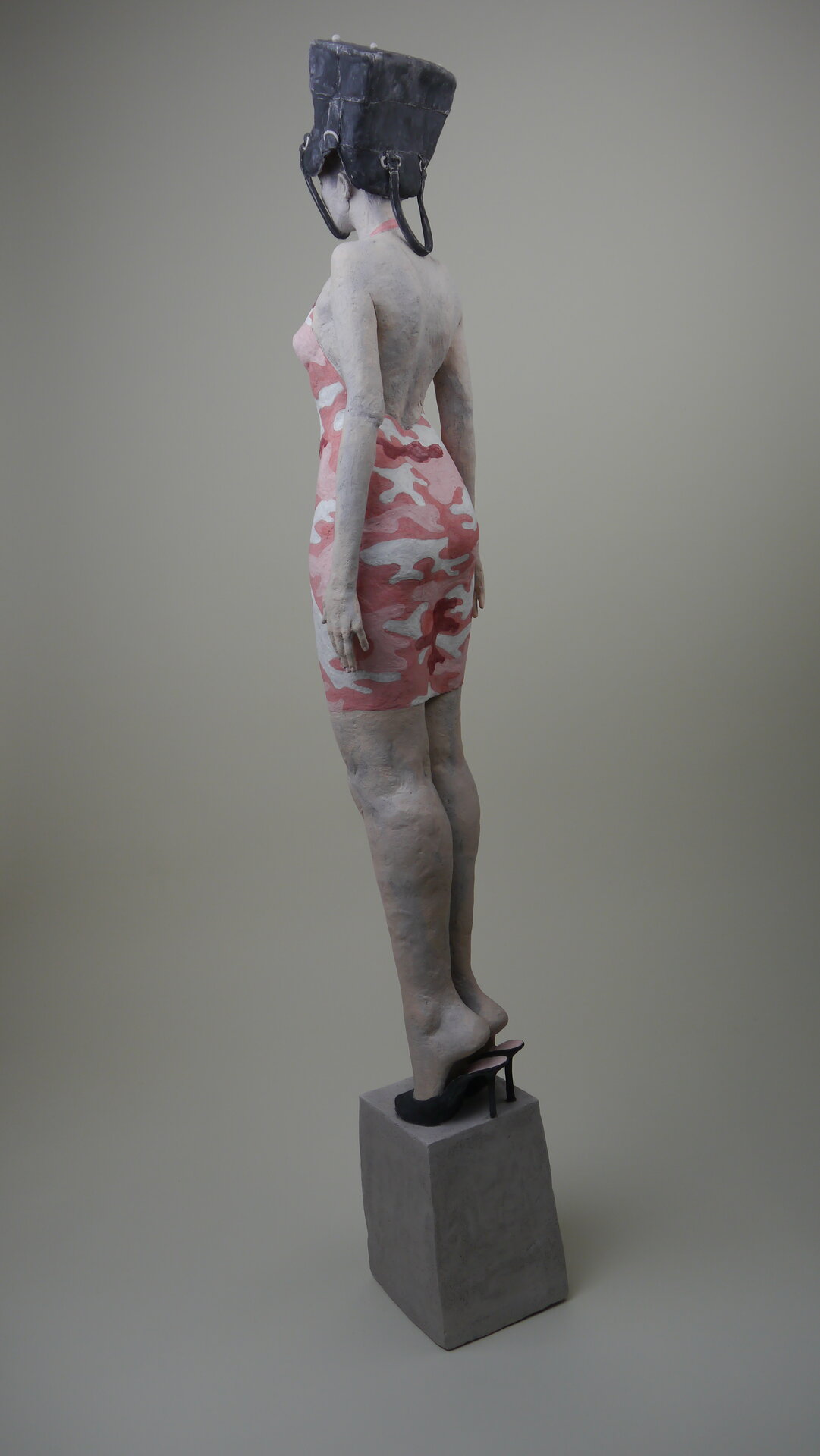 Figur: 18 x 37 x 12 cm, Vasenobjekt: 6 x 6 x 6 cm