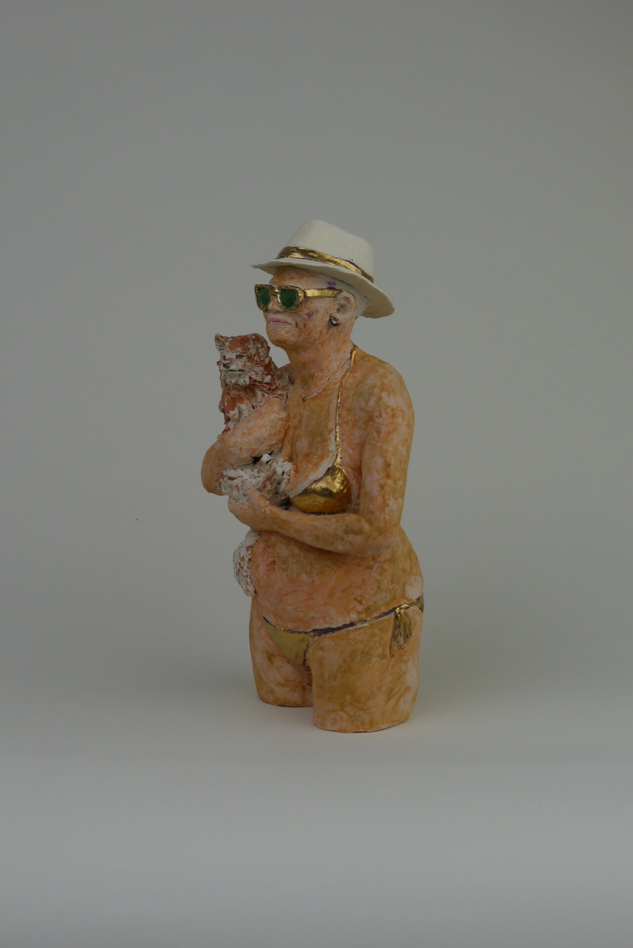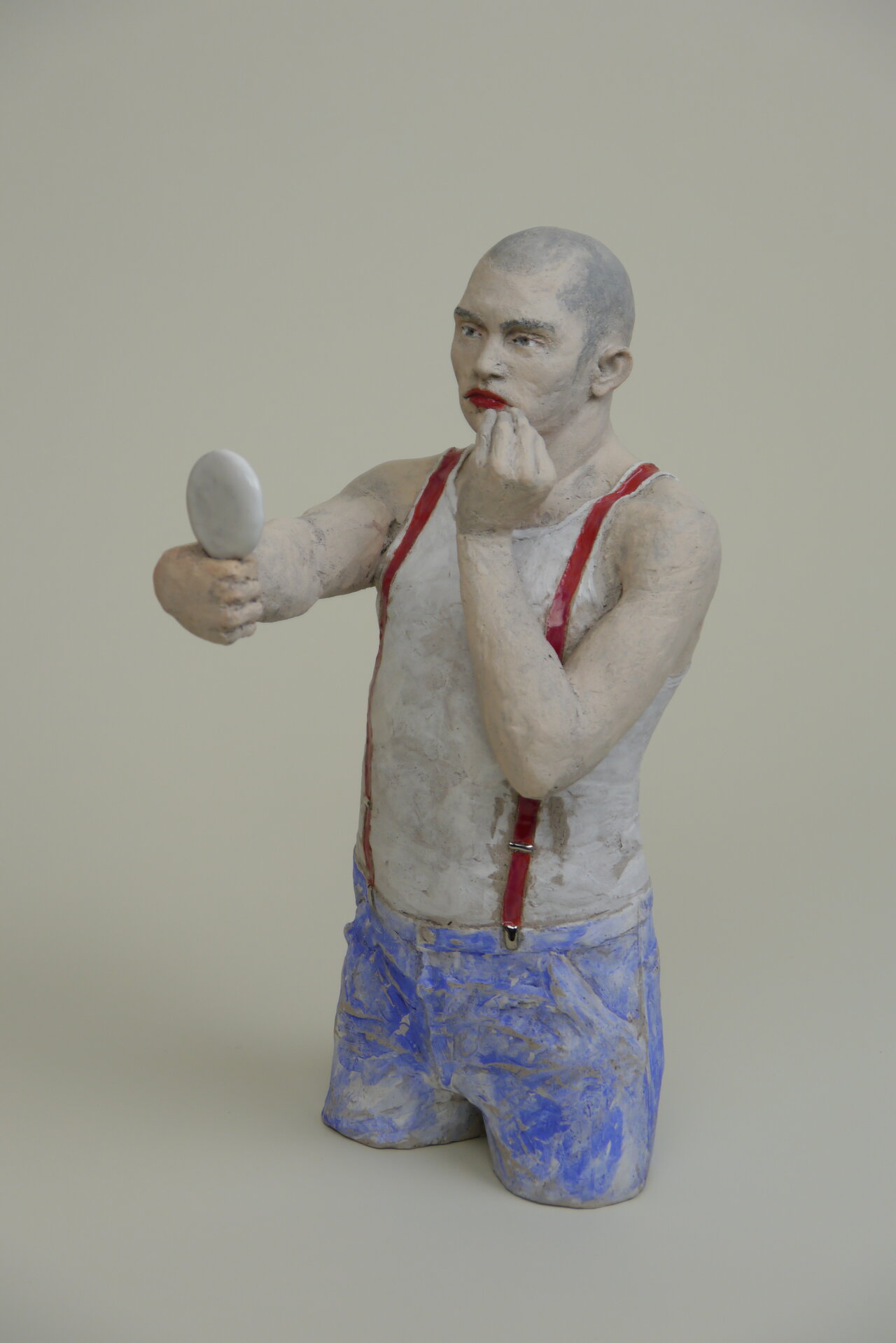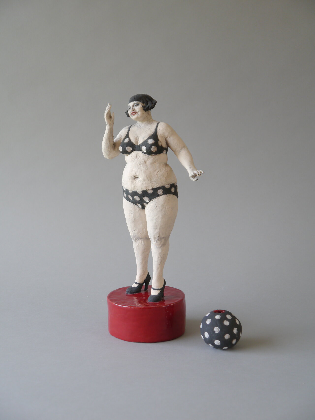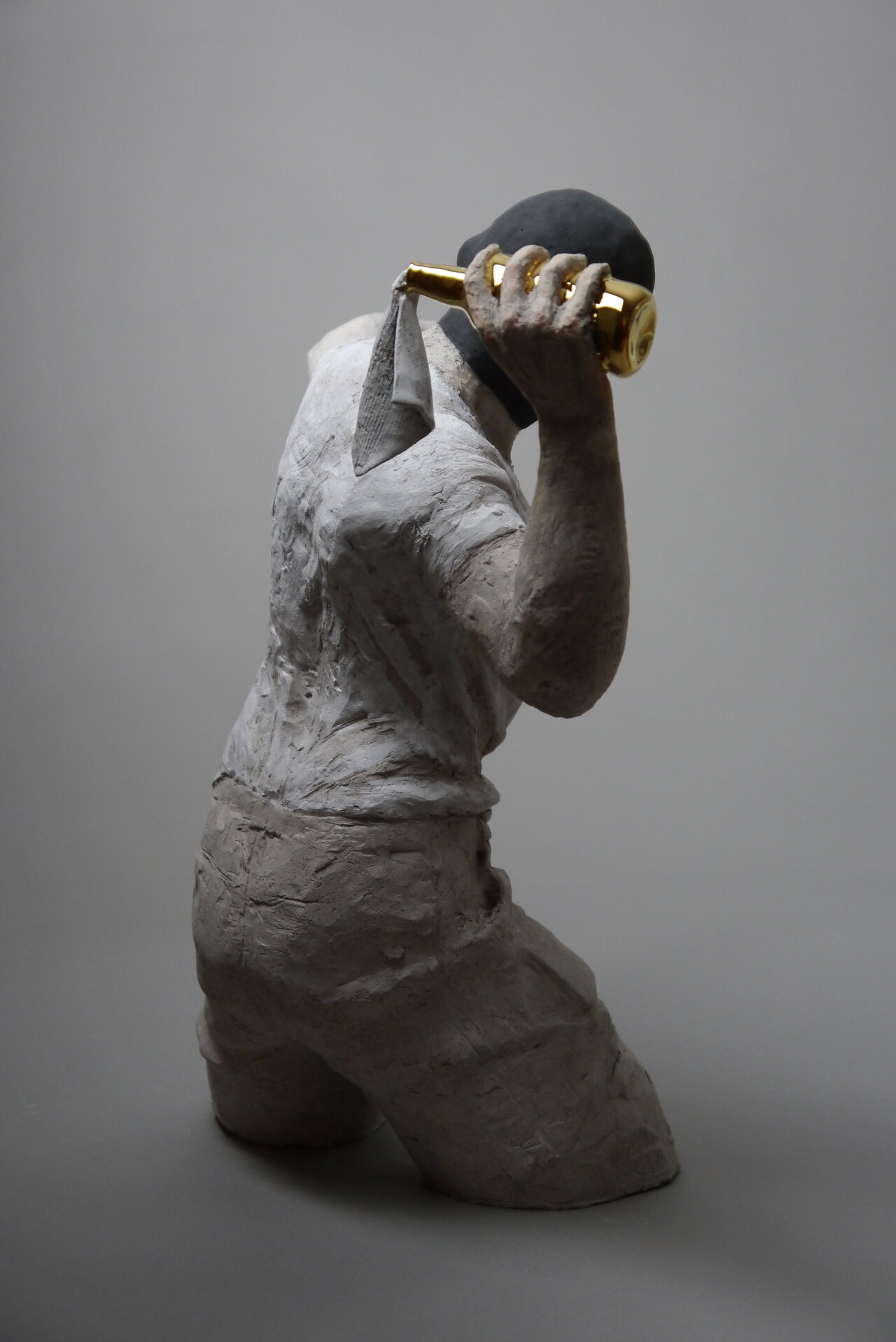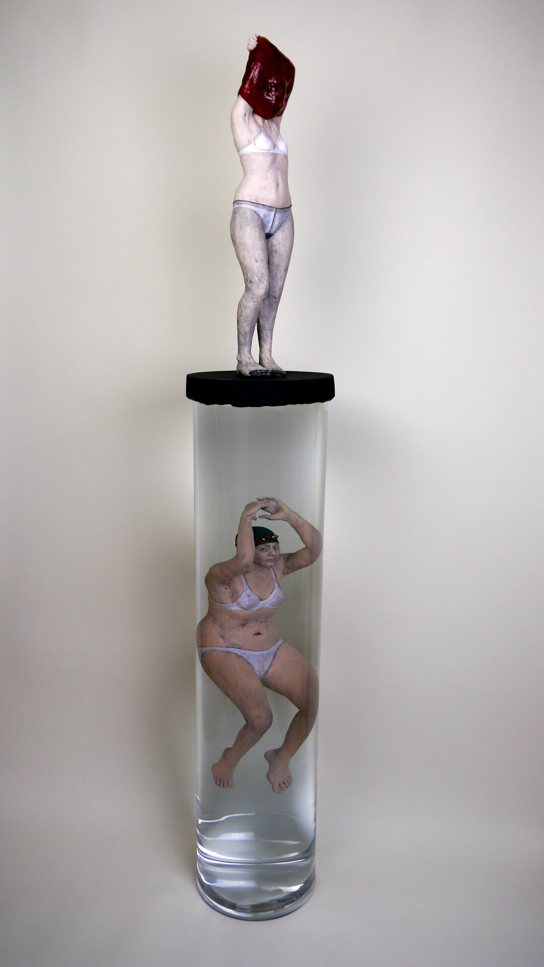 Figur: 18 x 37 x 12 cm, Vasenobjekt: 6 x 6 x 6 cm
