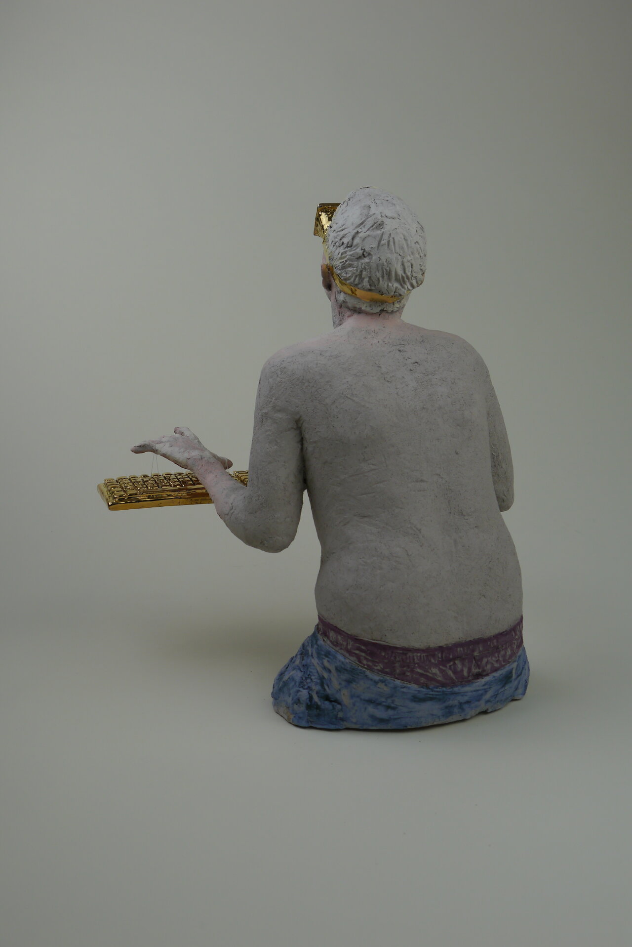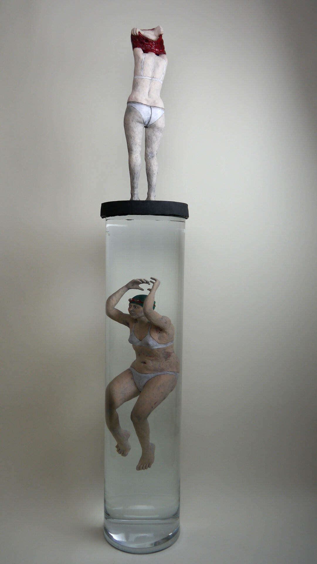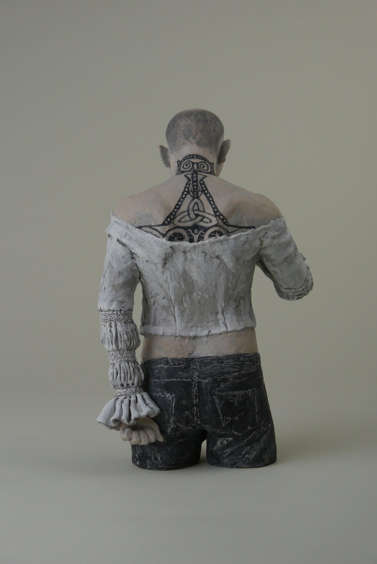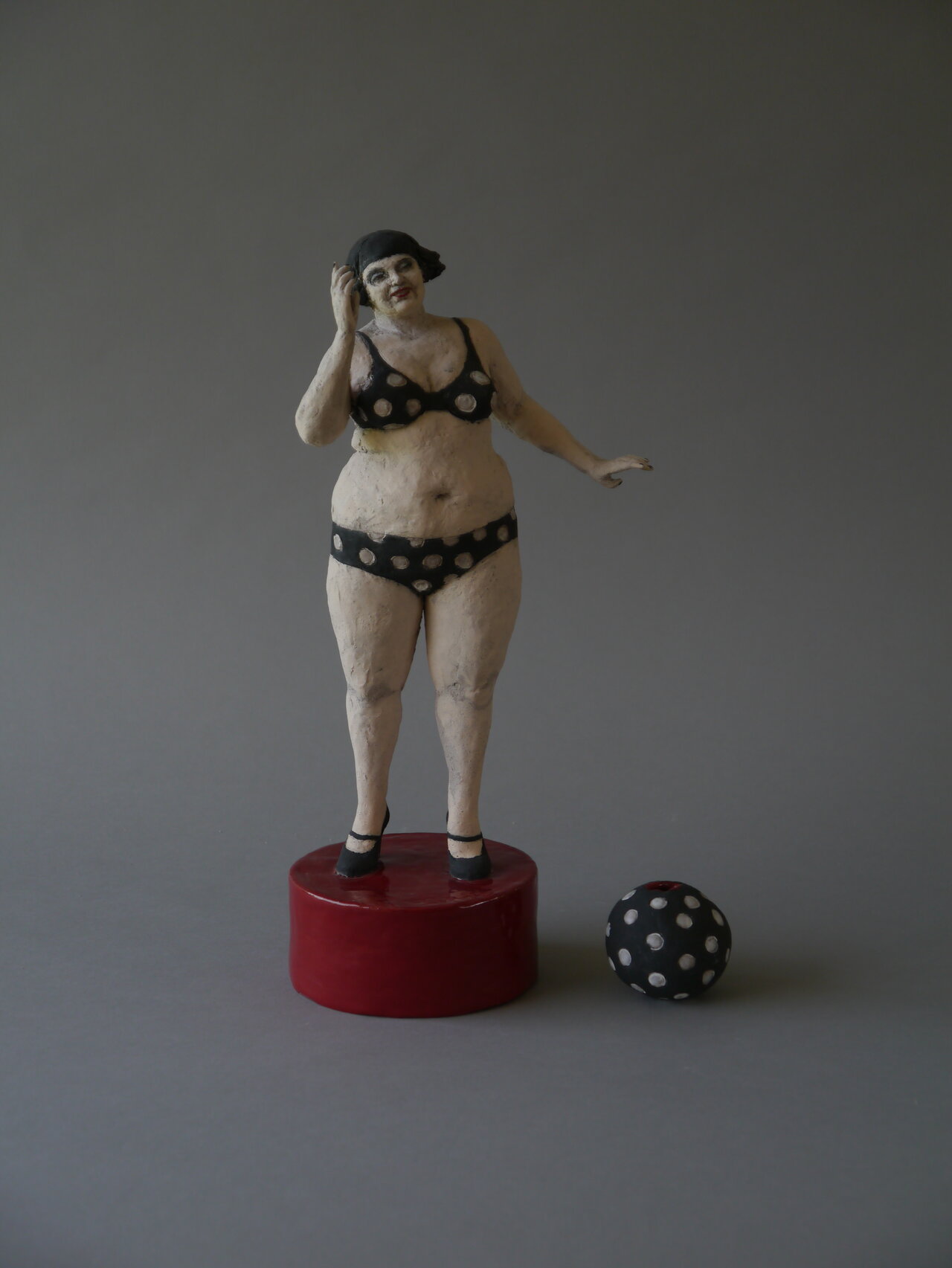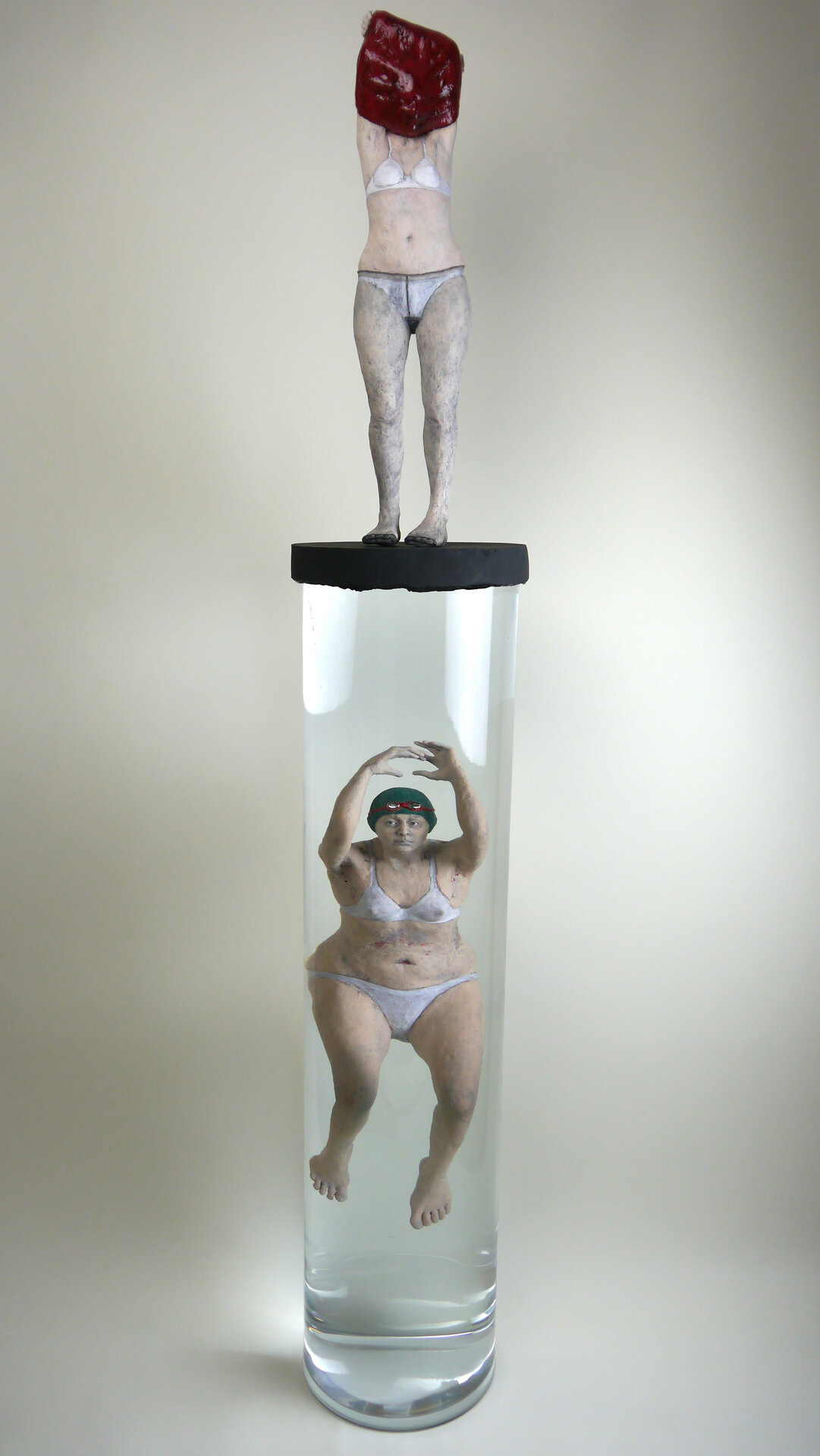Figur: 18 x 37 x 12 cm, Vasenobjekt: 6 x 6 x 6 cm