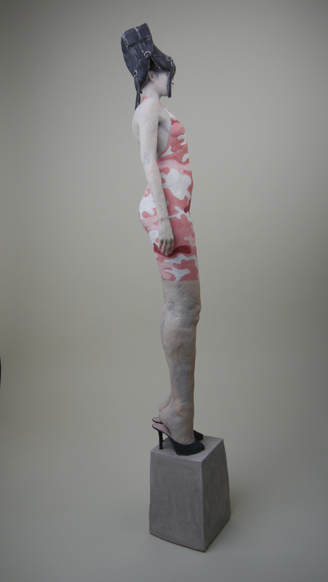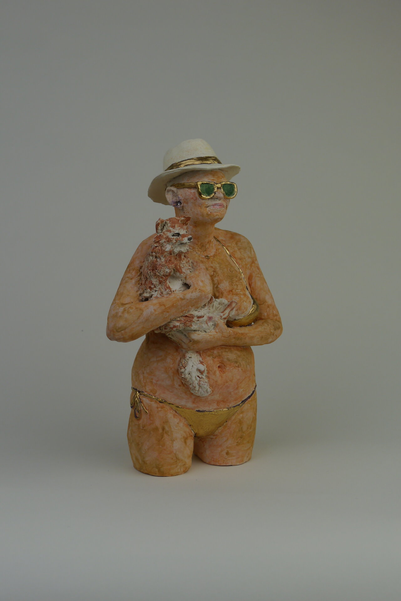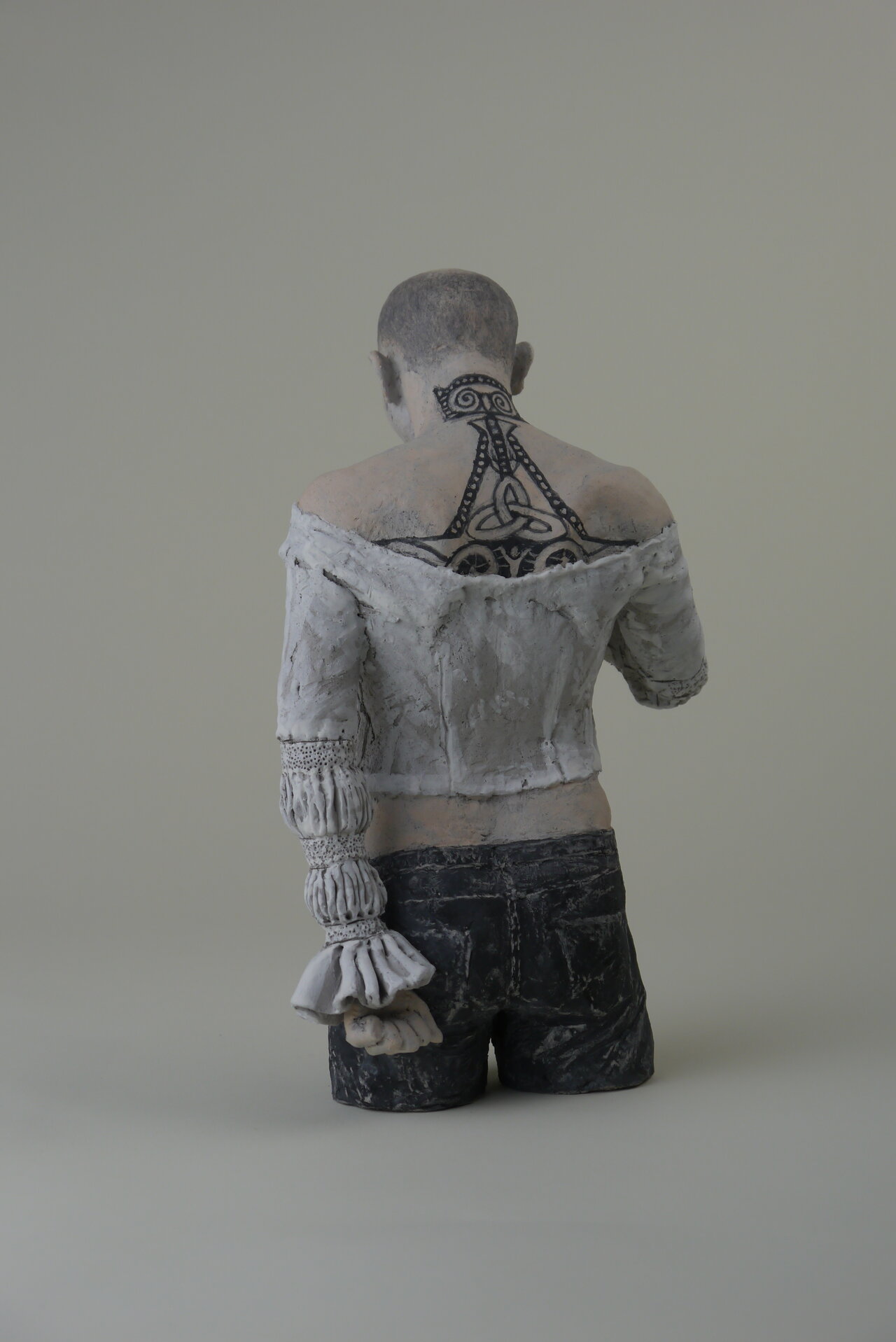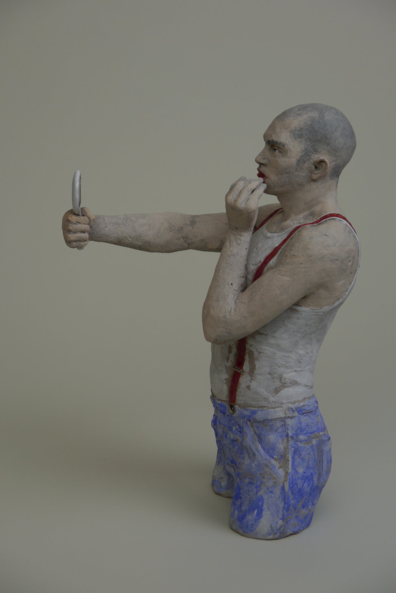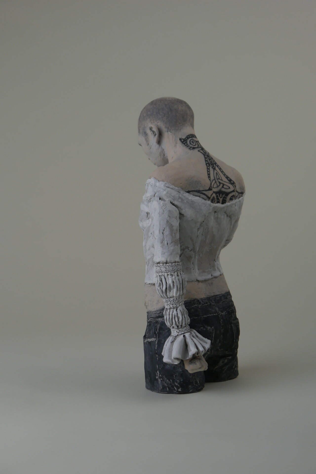 Figur: 18 x 37 x 12 cm, Vasenobjekt: 6 x 6 x 6 cm