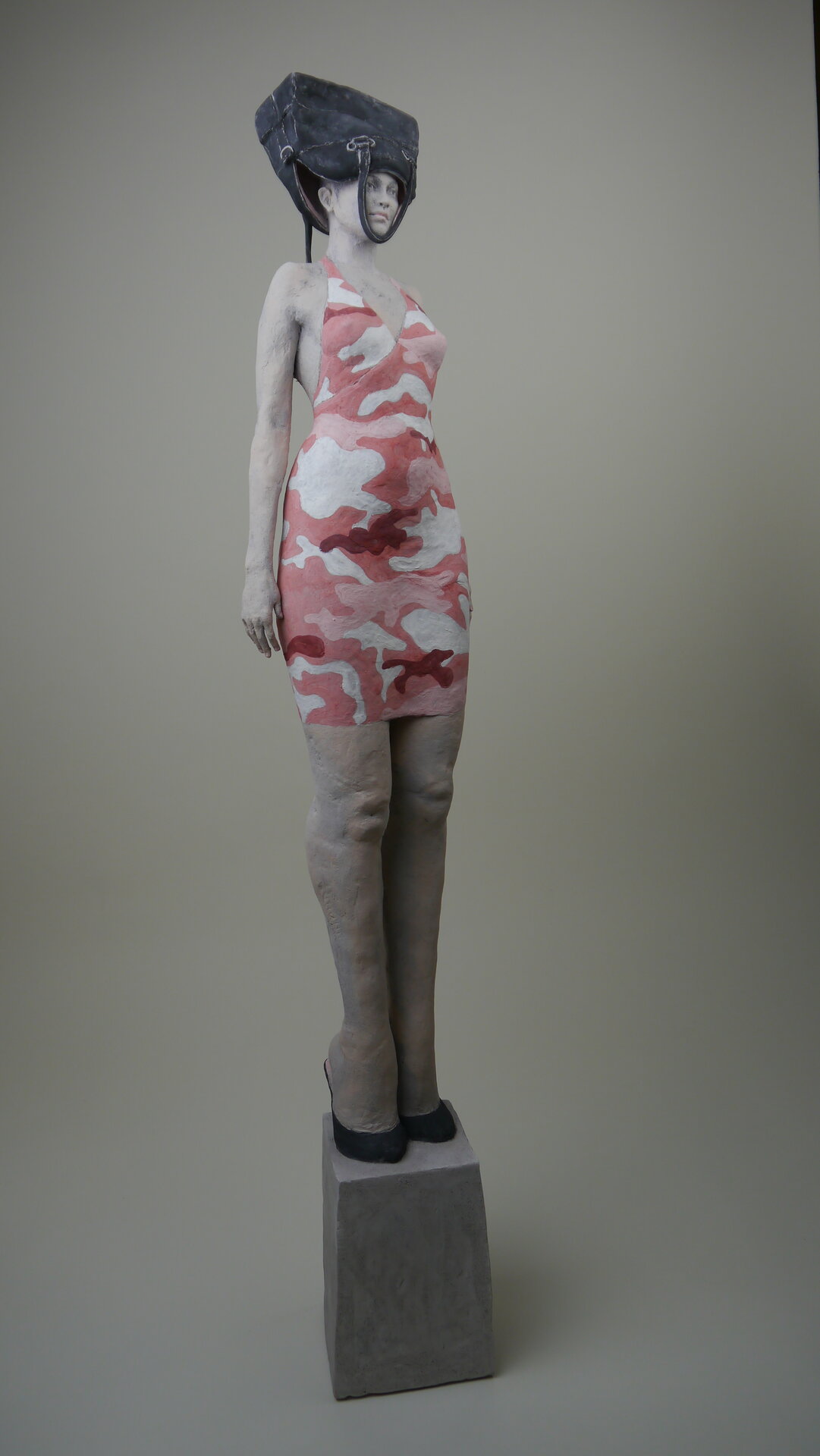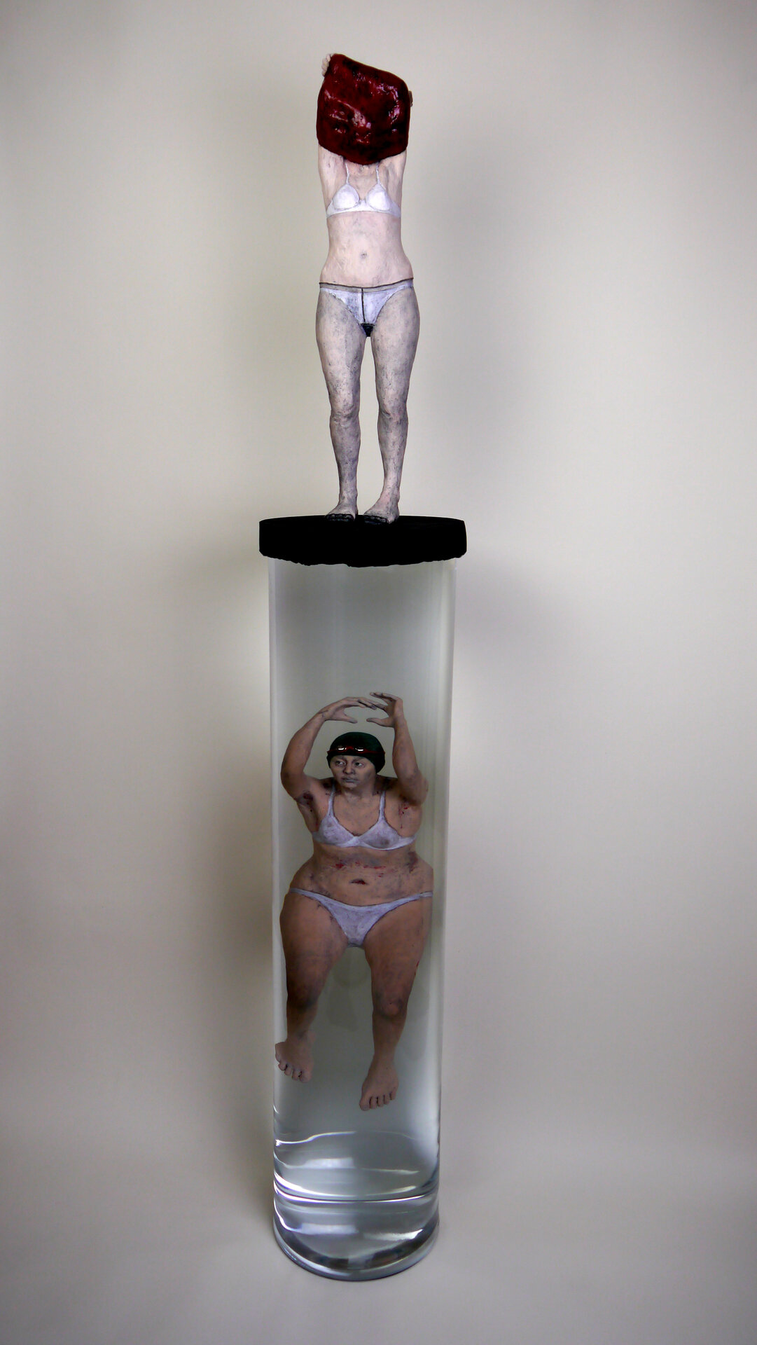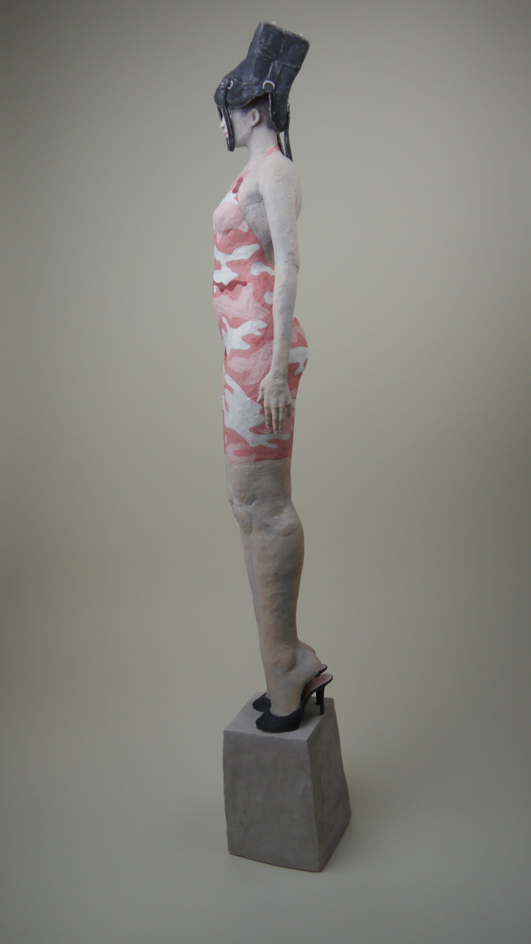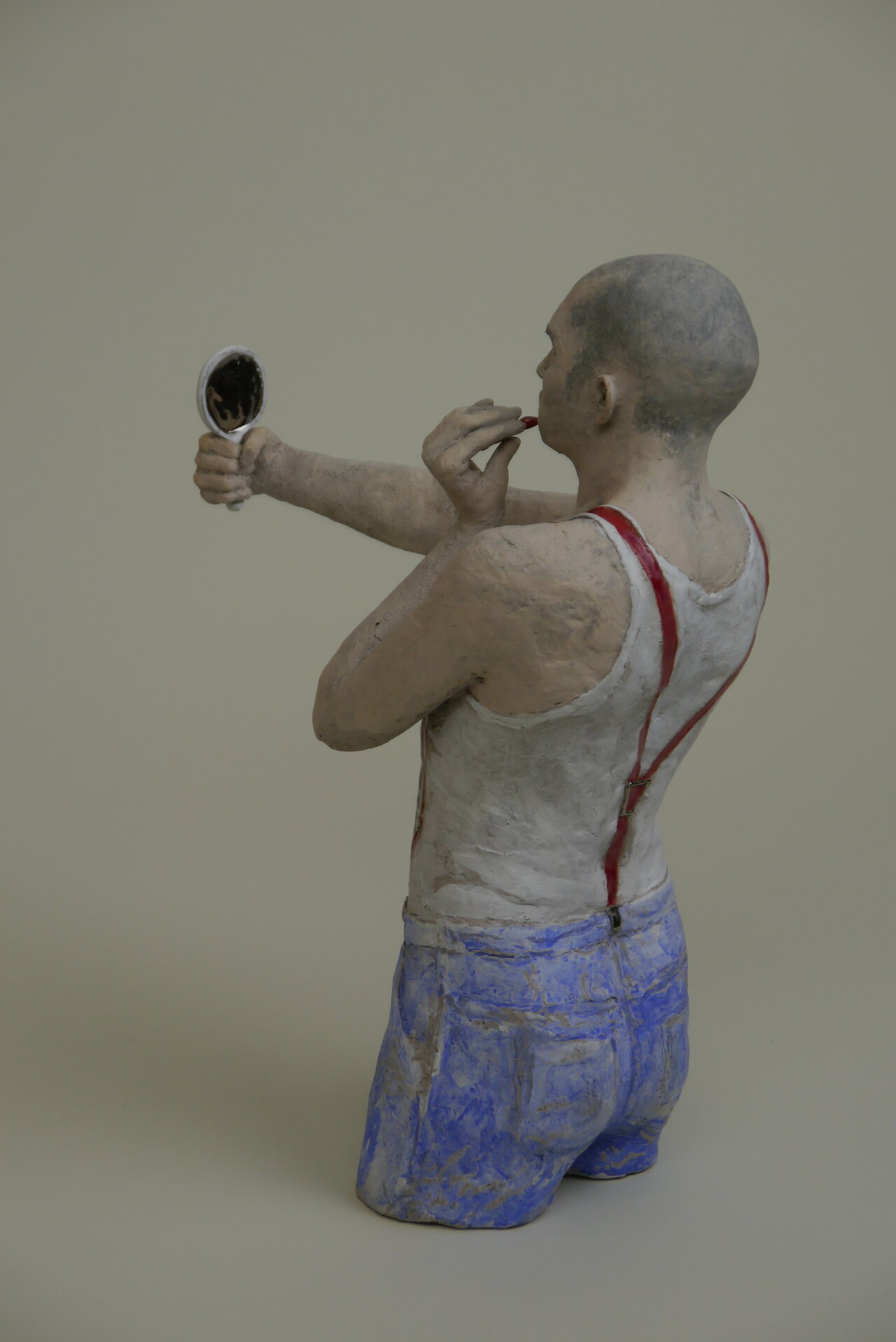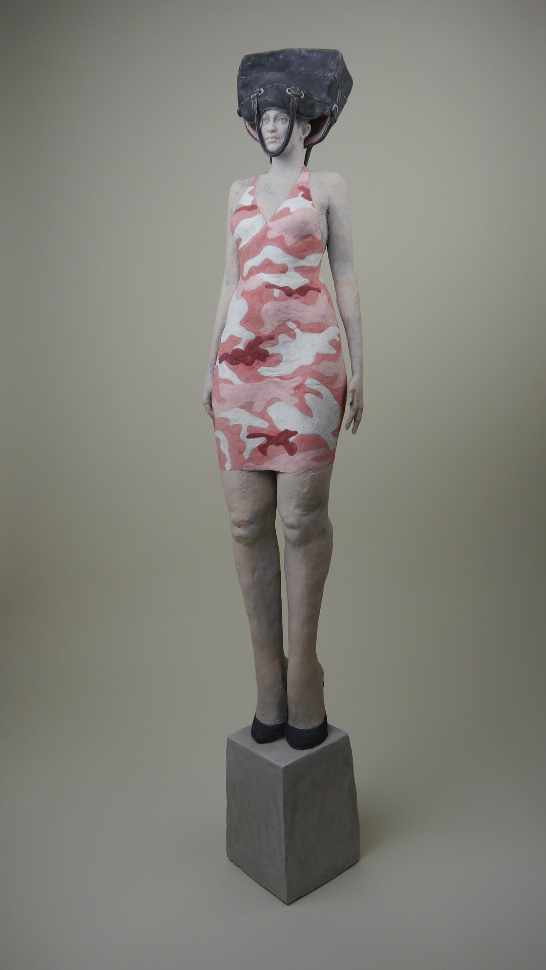 Figur: 18 x 37 x 12 cm, Vasenobjekt: 6 x 6 x 6 cm
