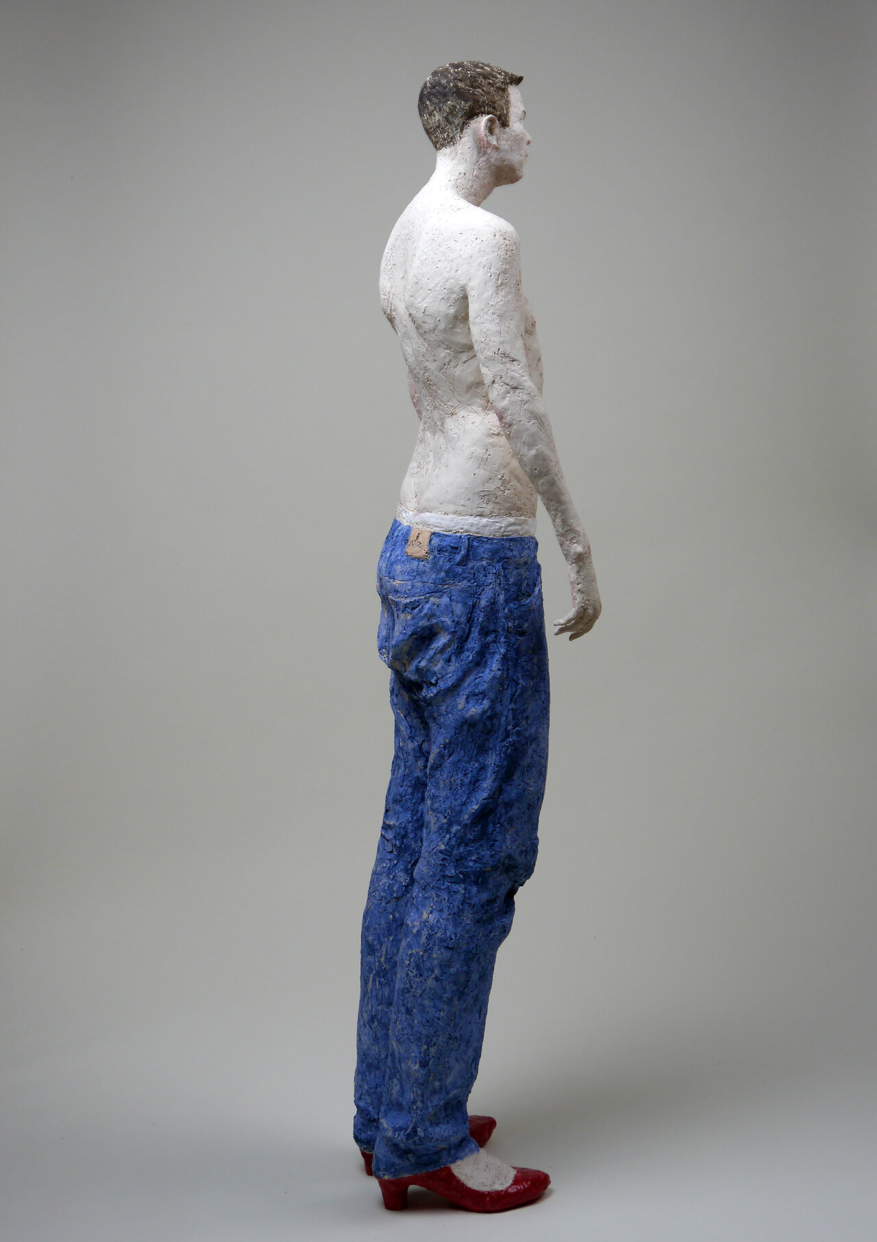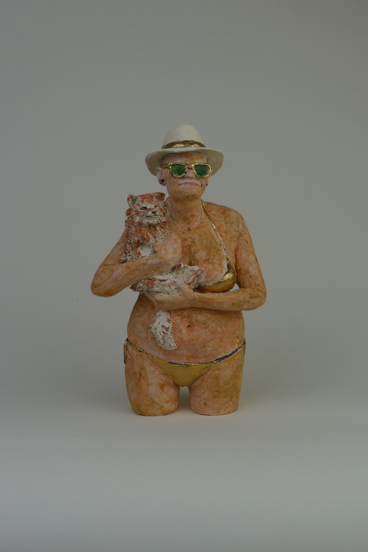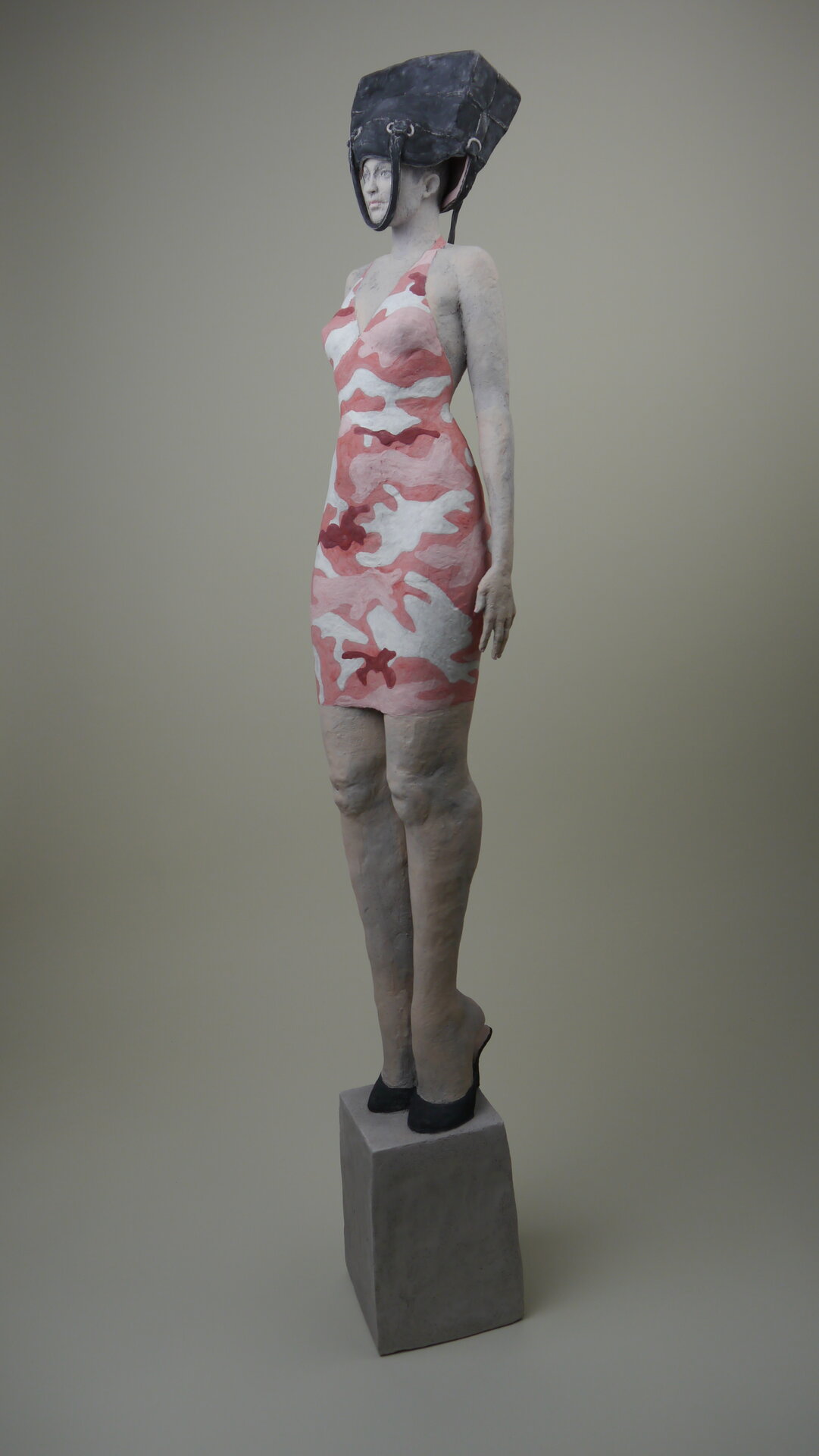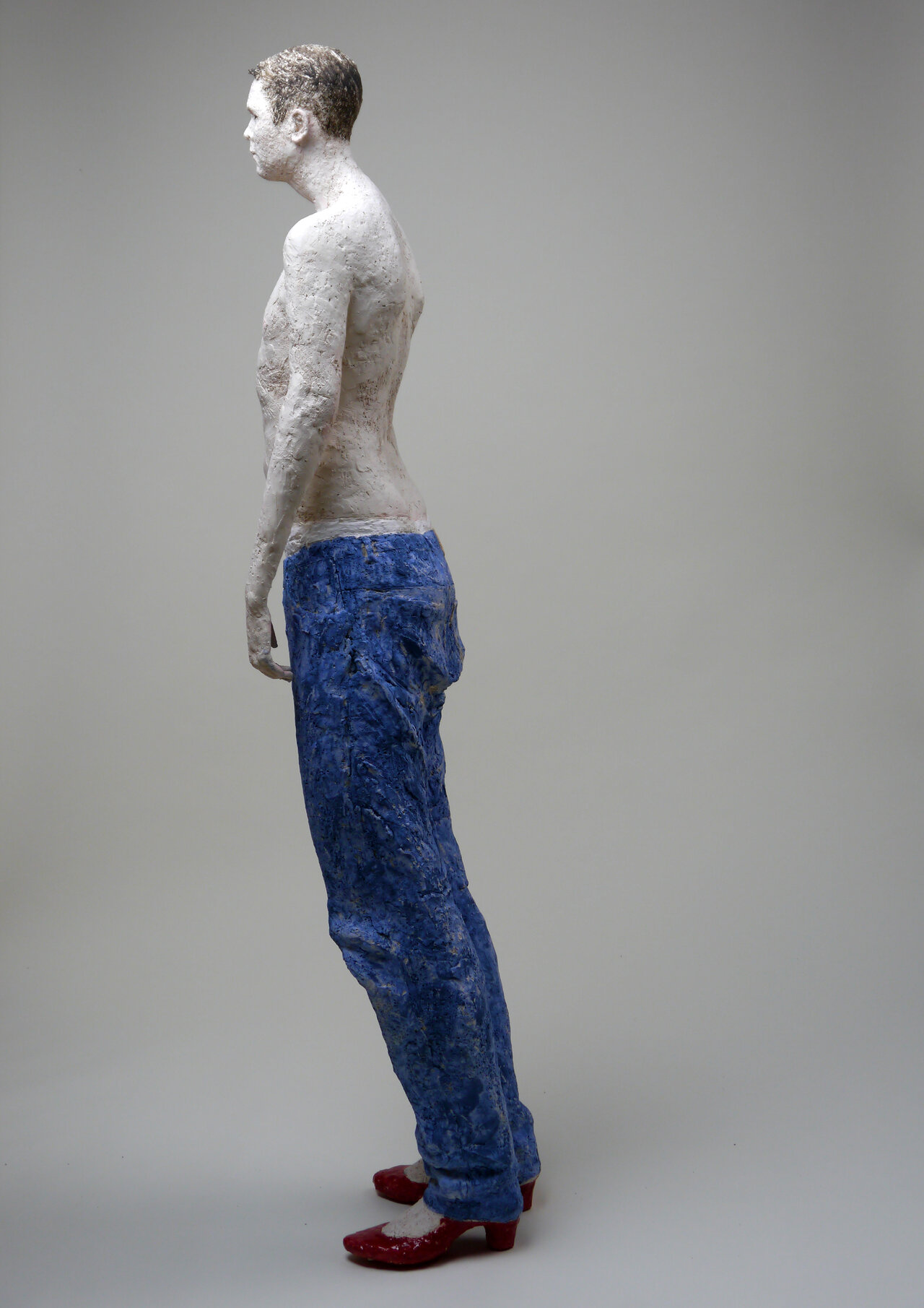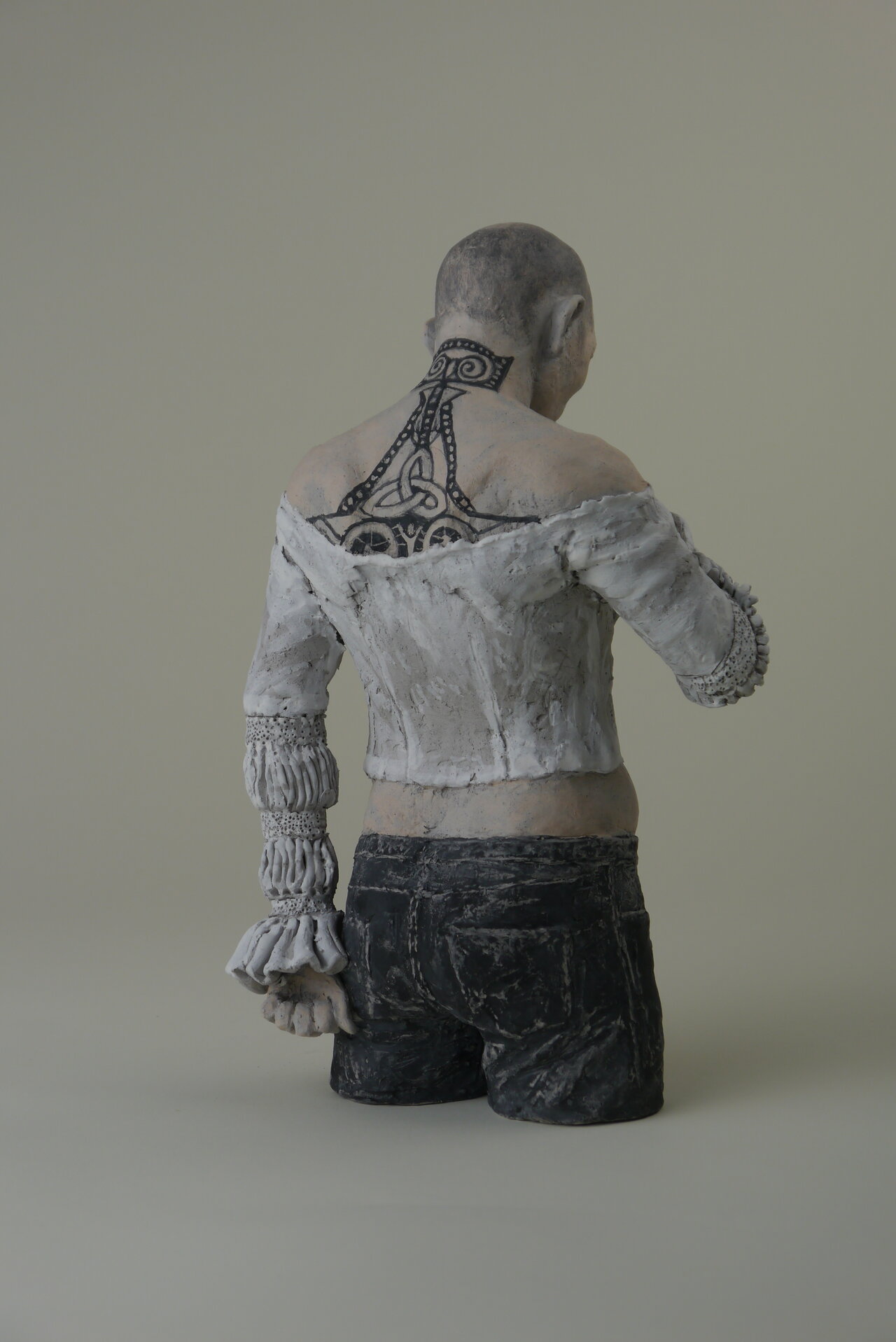 Figur: 18 x 37 x 12 cm, Vasenobjekt: 6 x 6 x 6 cm