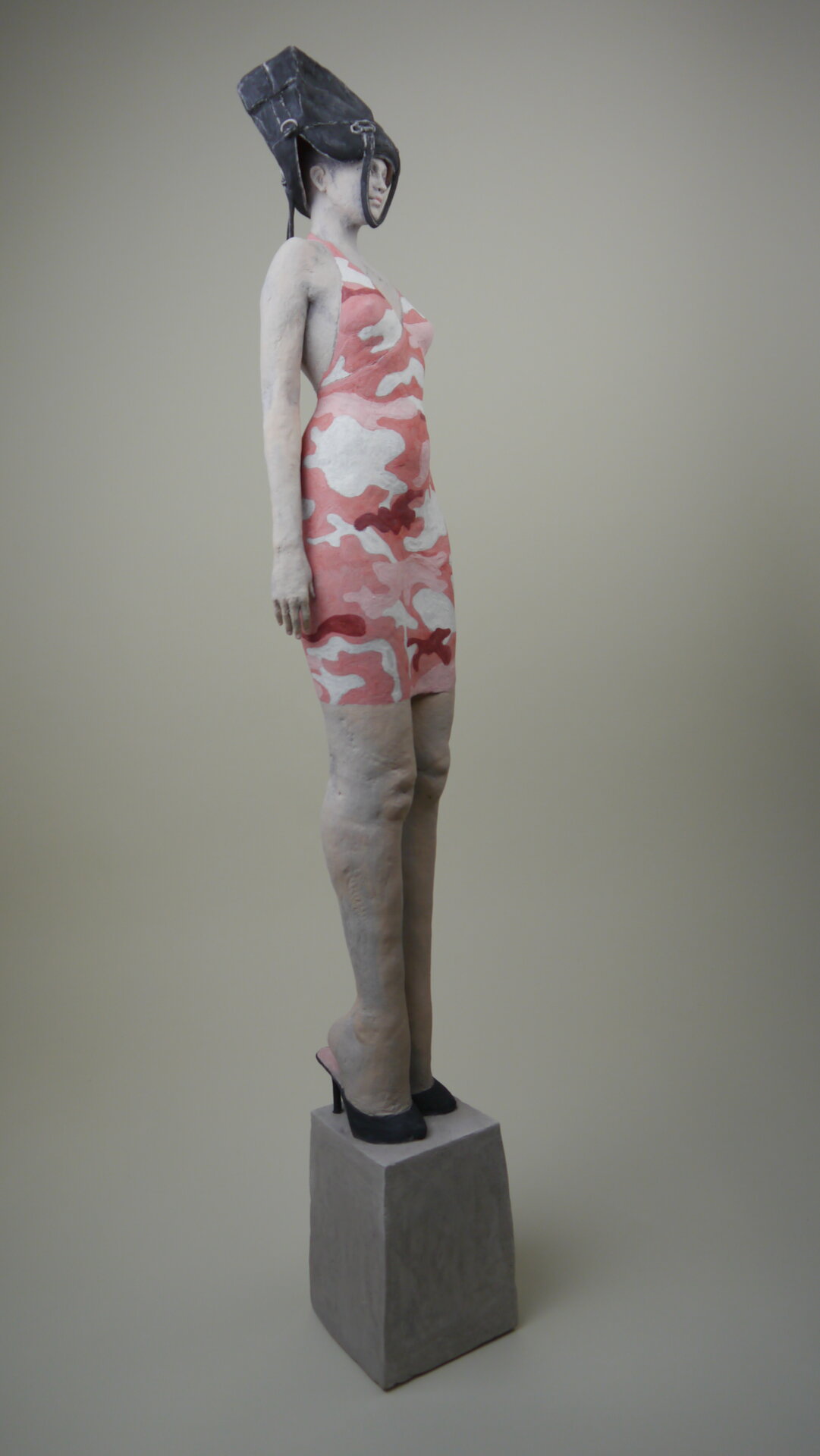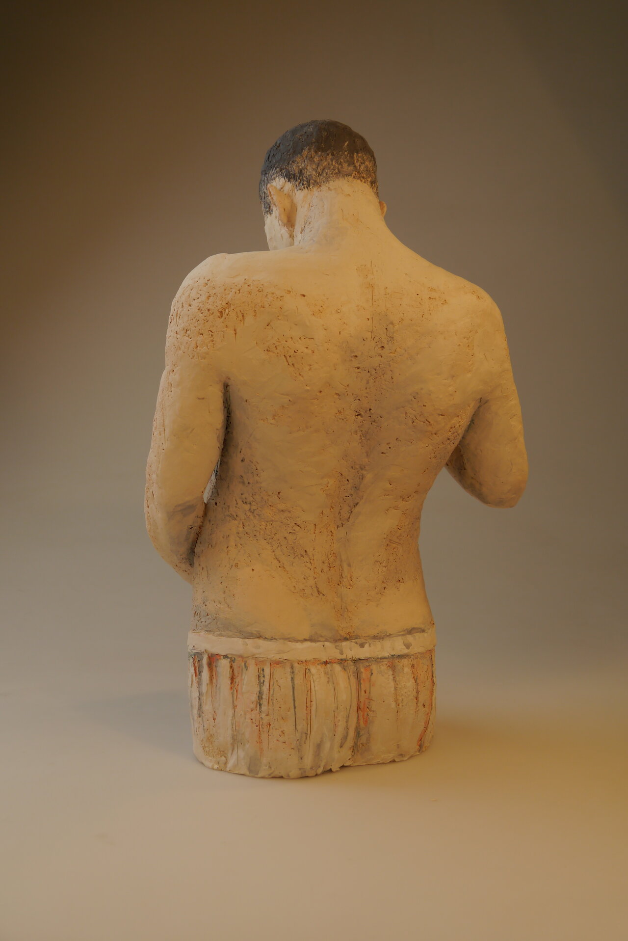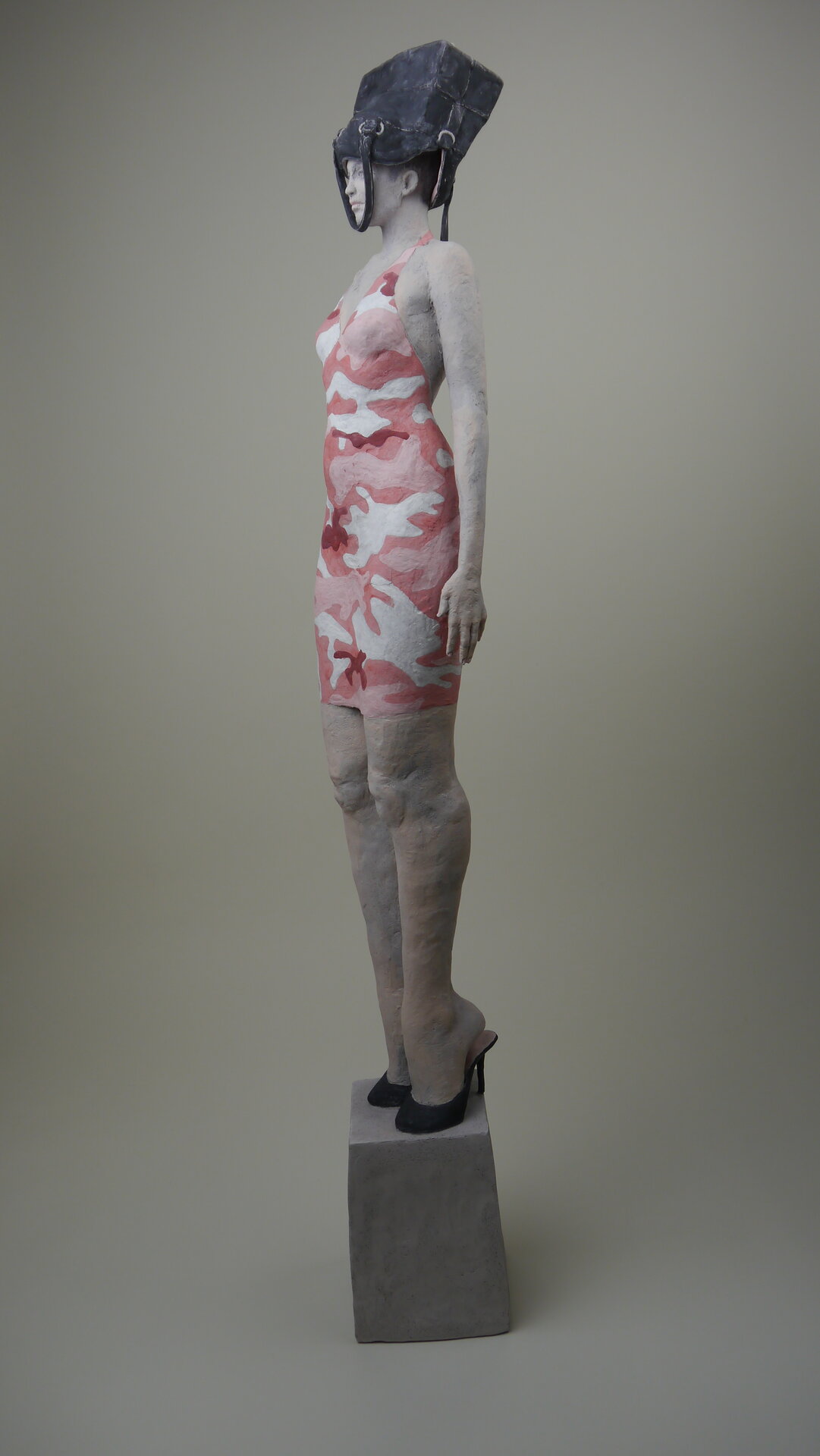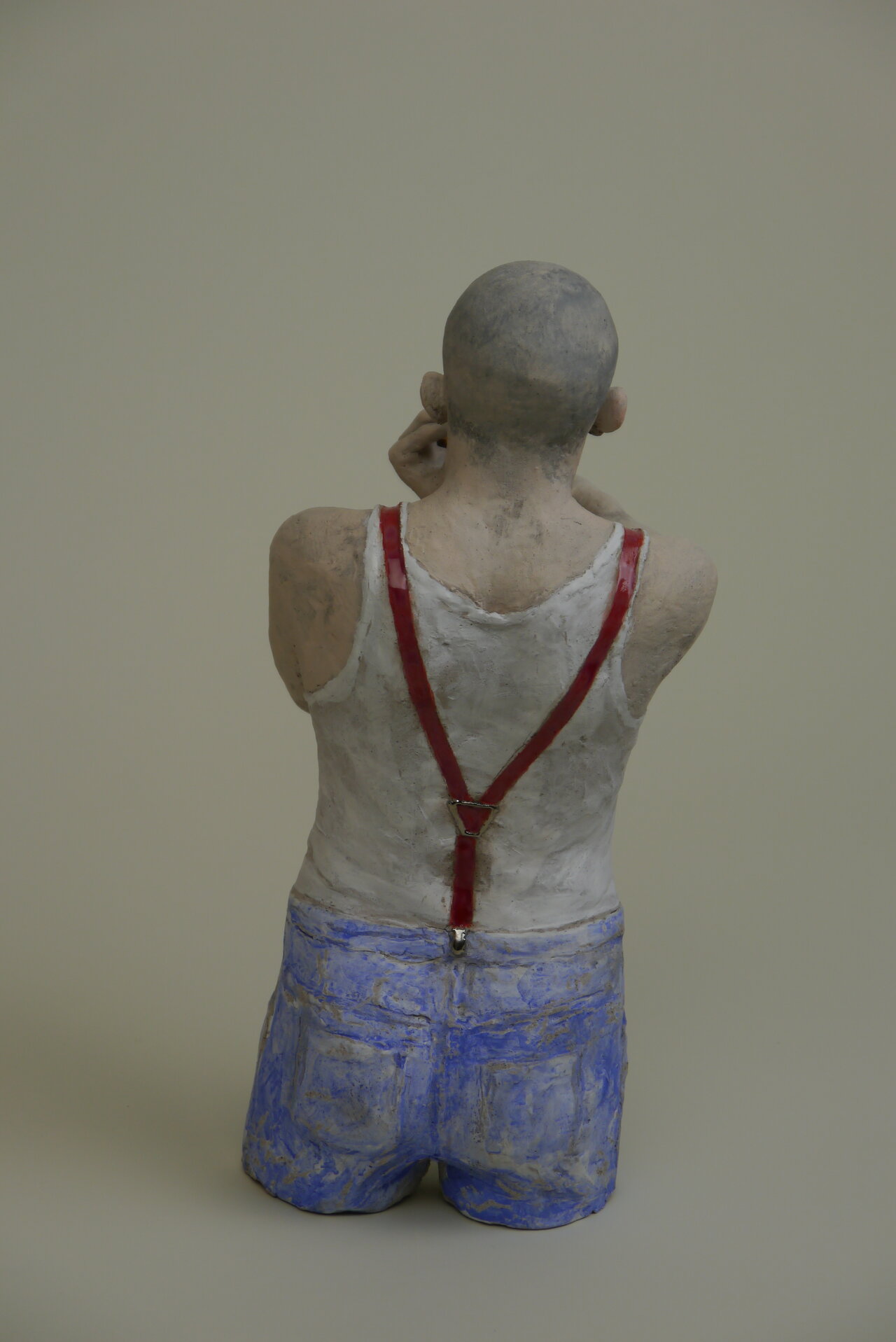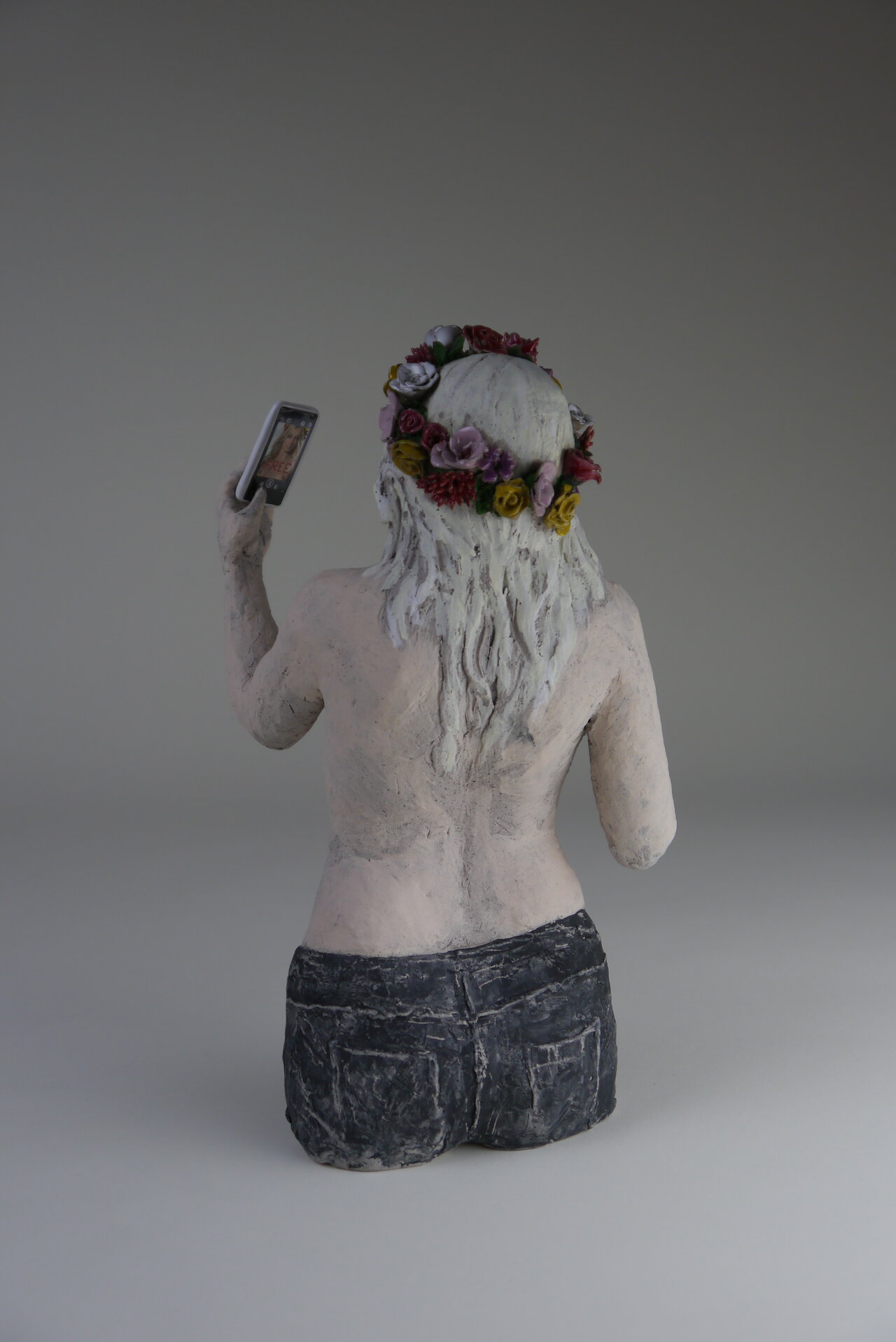 Figur: 18 x 37 x 12 cm, Vasenobjekt: 6 x 6 x 6 cm