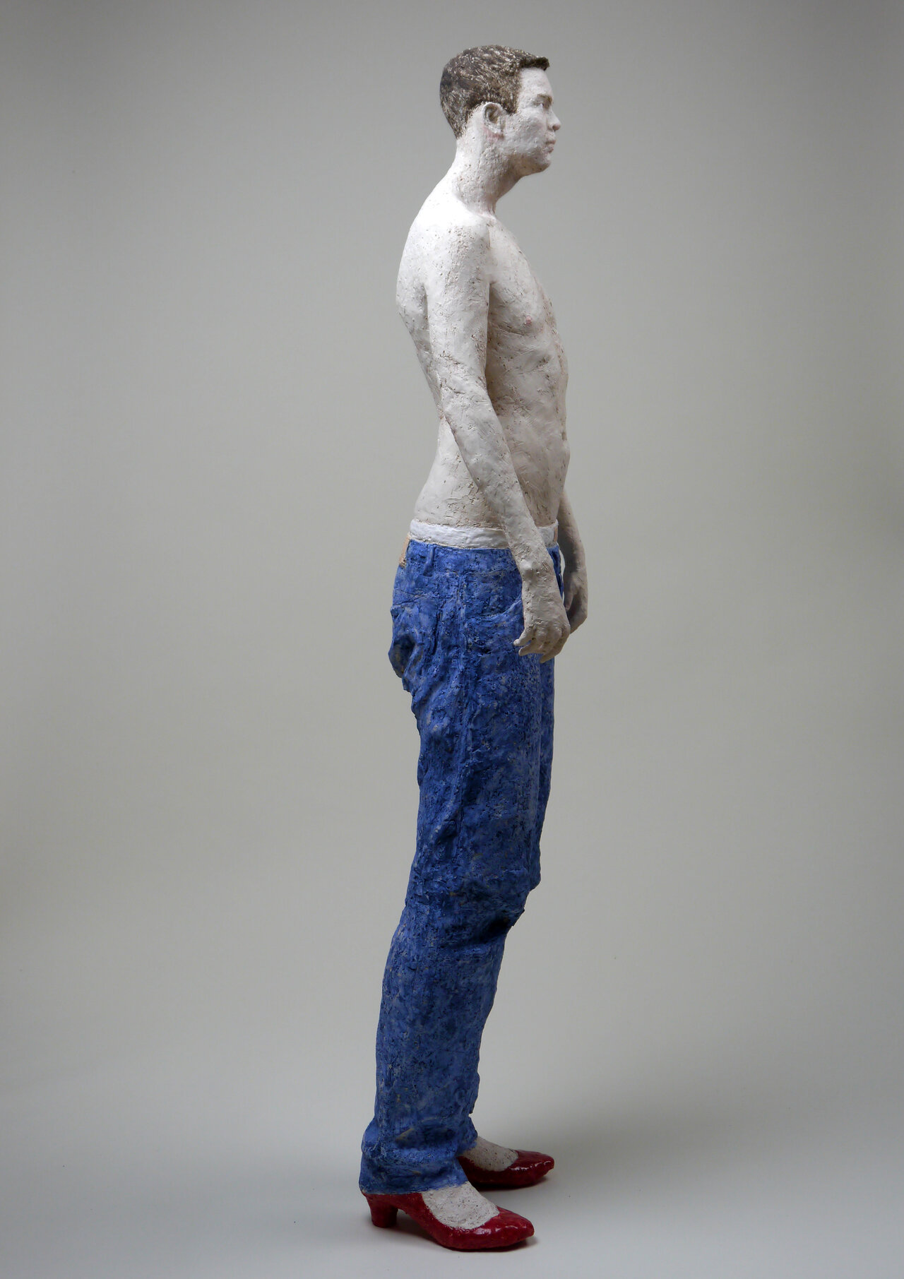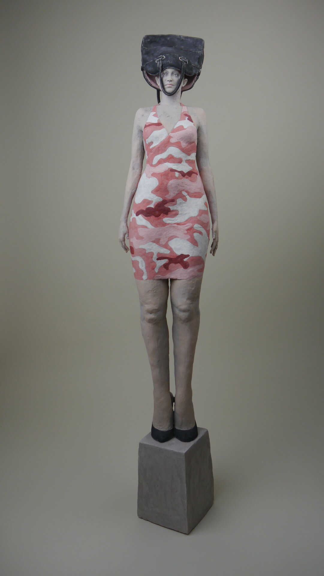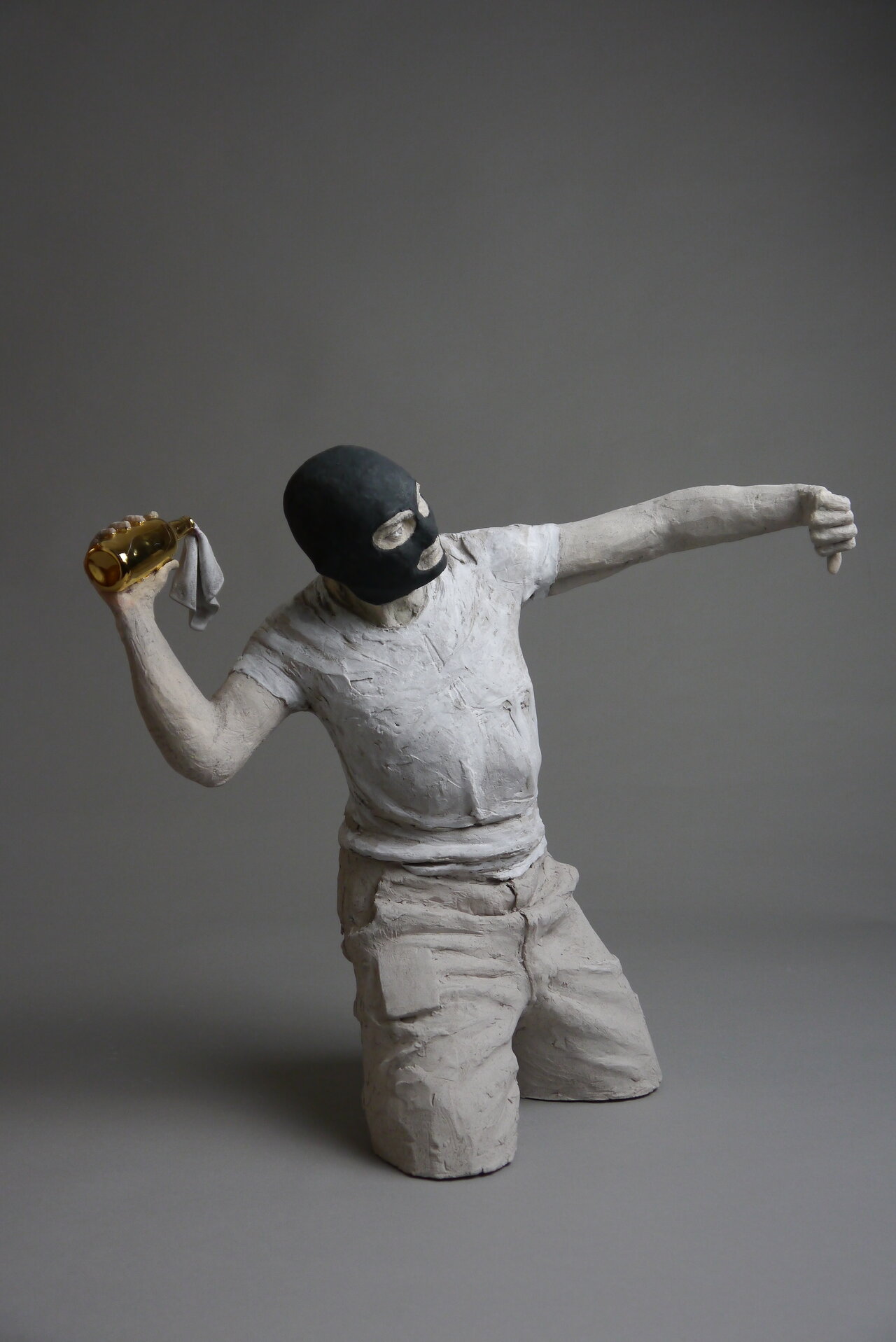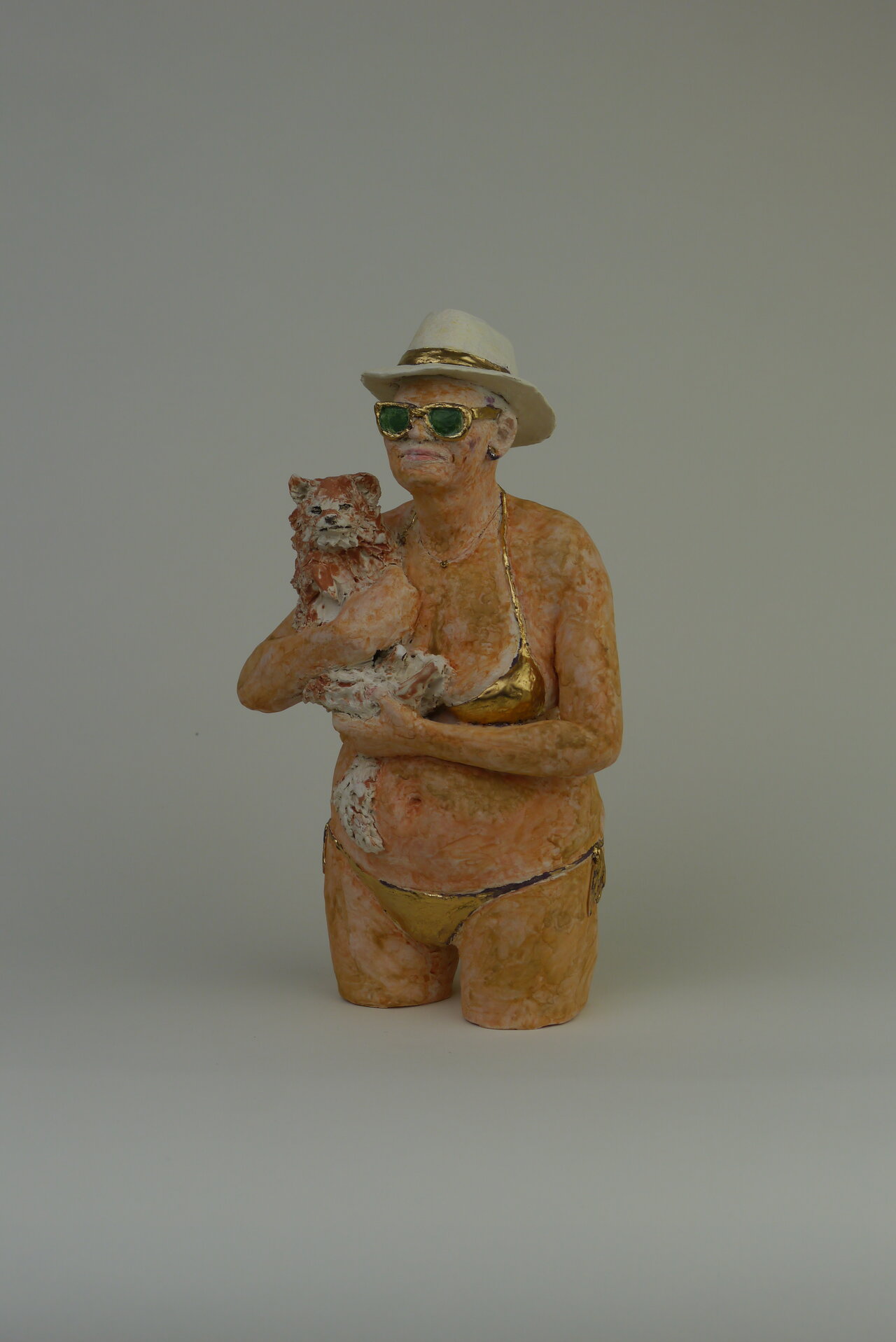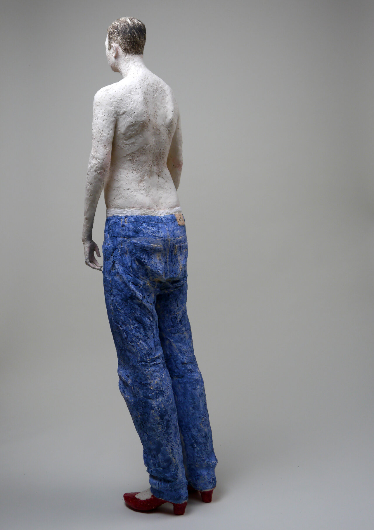 Figur: 18 x 37 x 12 cm, Vasenobjekt: 6 x 6 x 6 cm