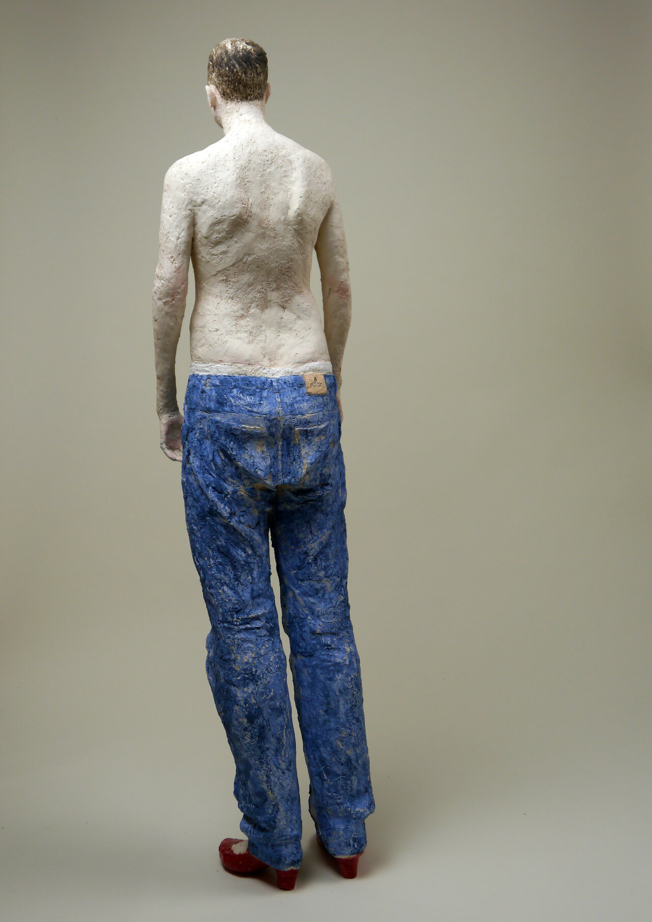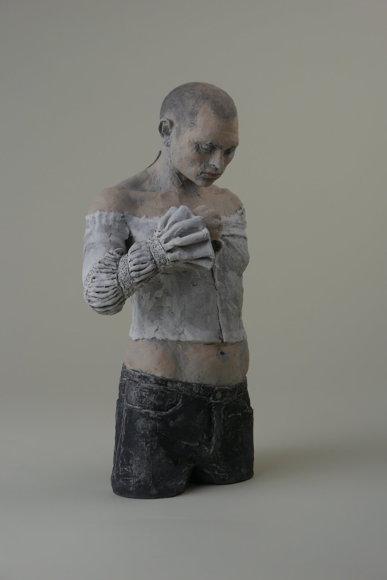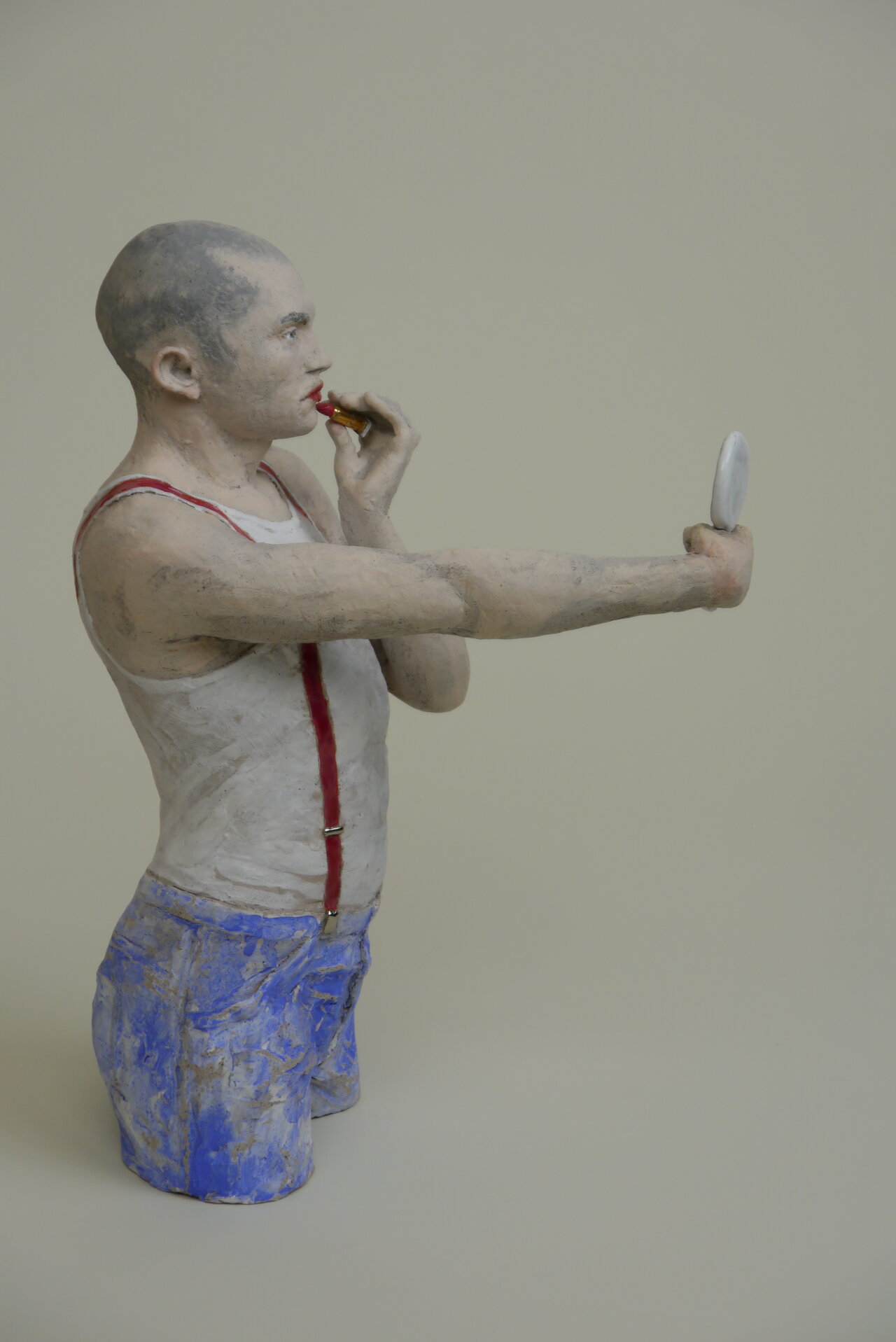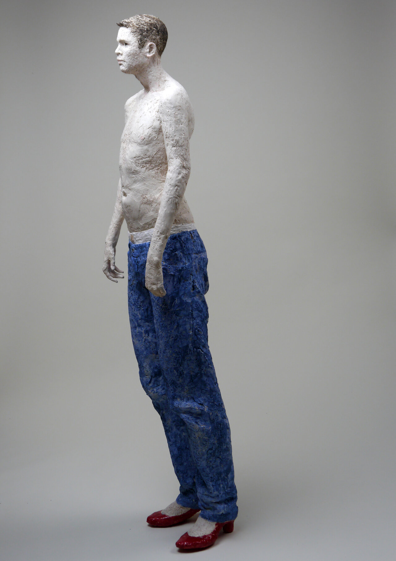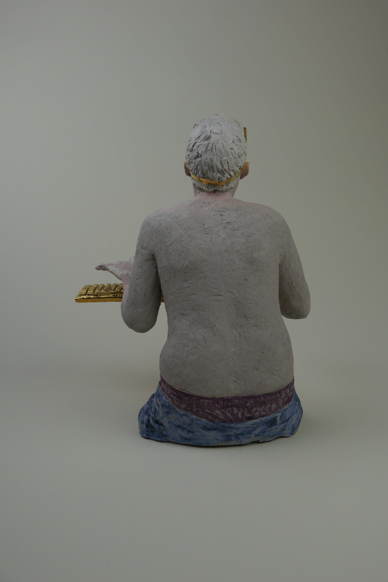 Figur: 18 x 37 x 12 cm, Vasenobjekt: 6 x 6 x 6 cm