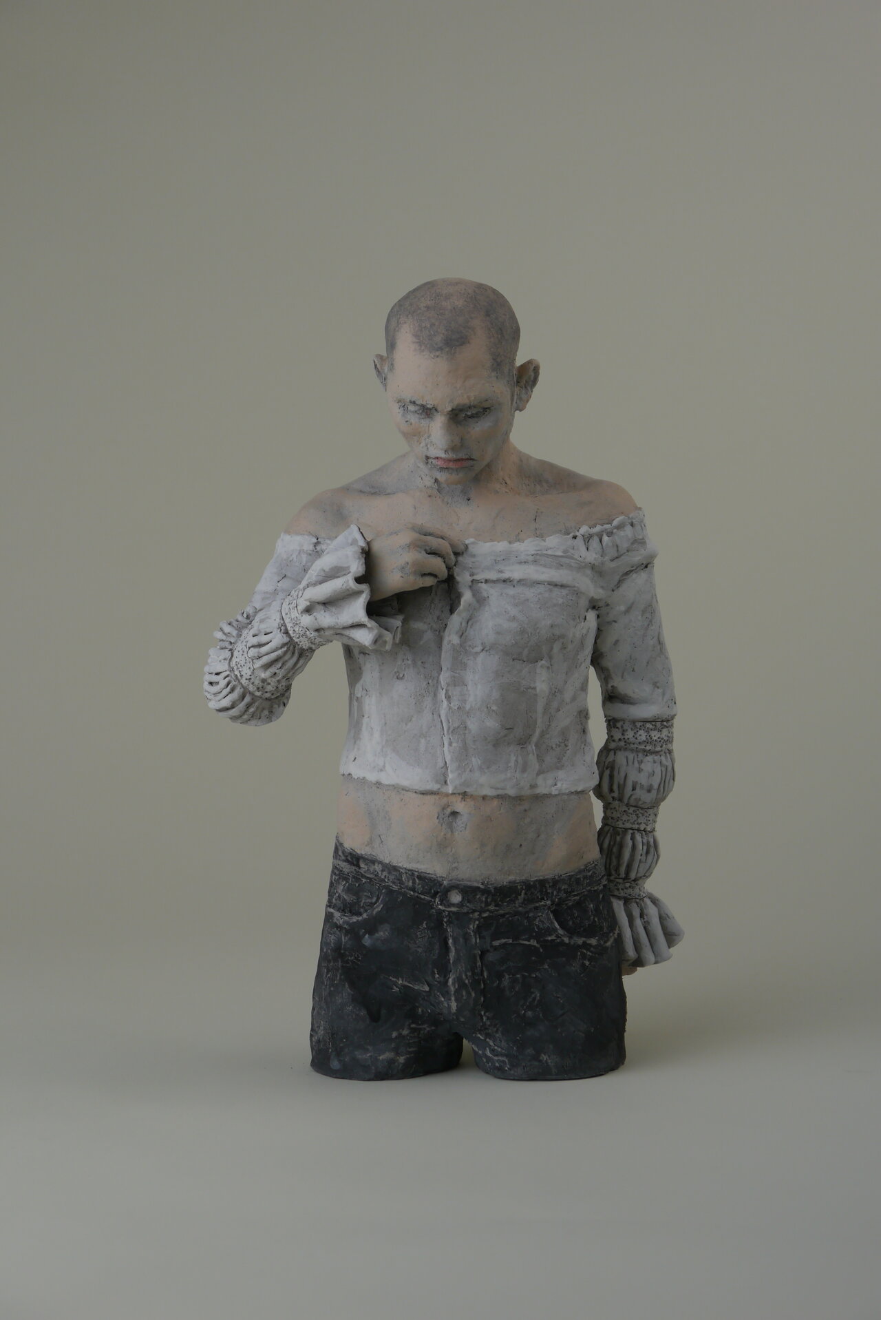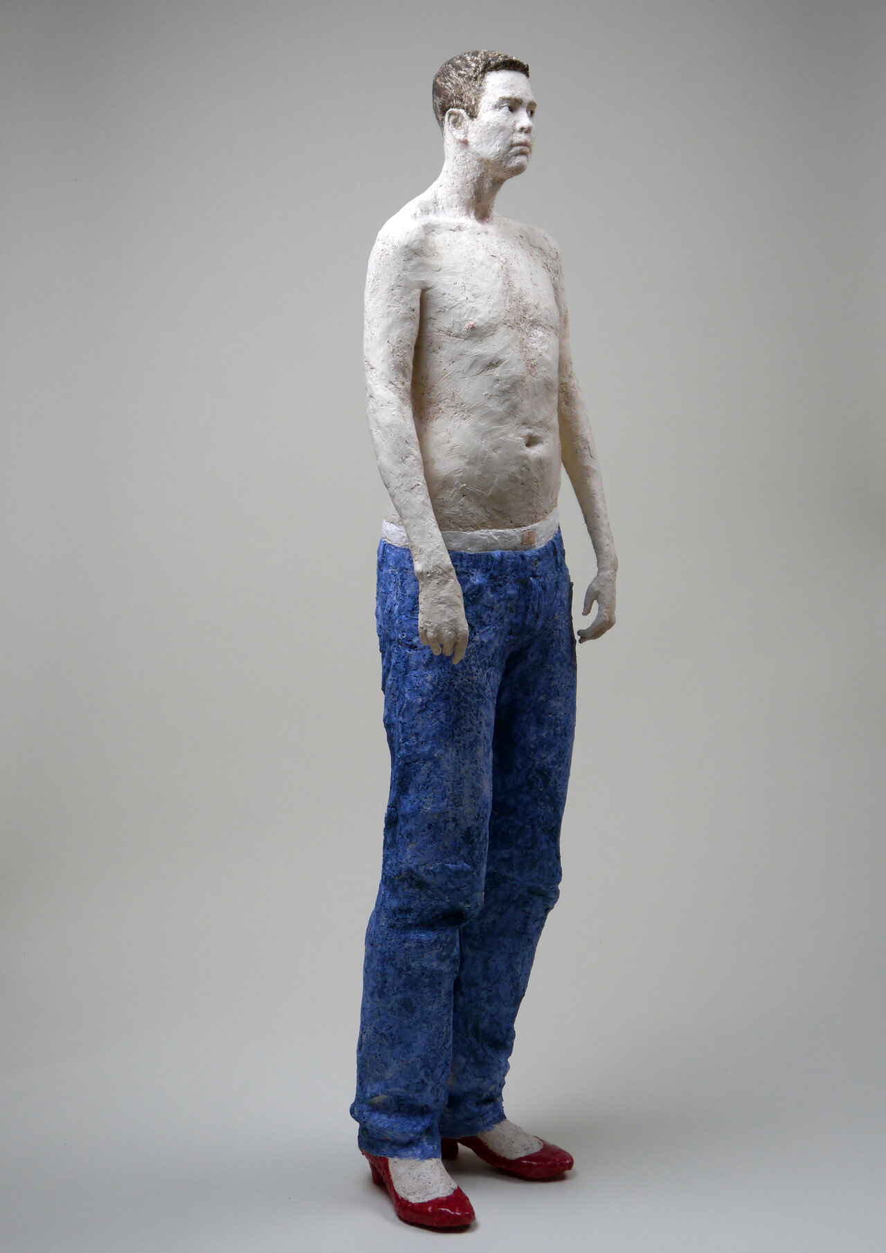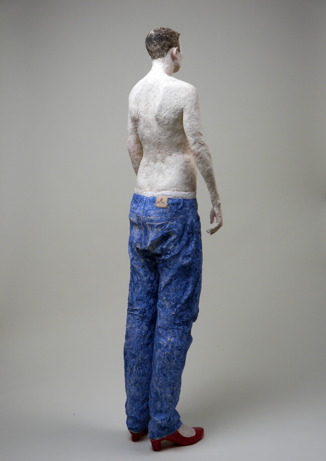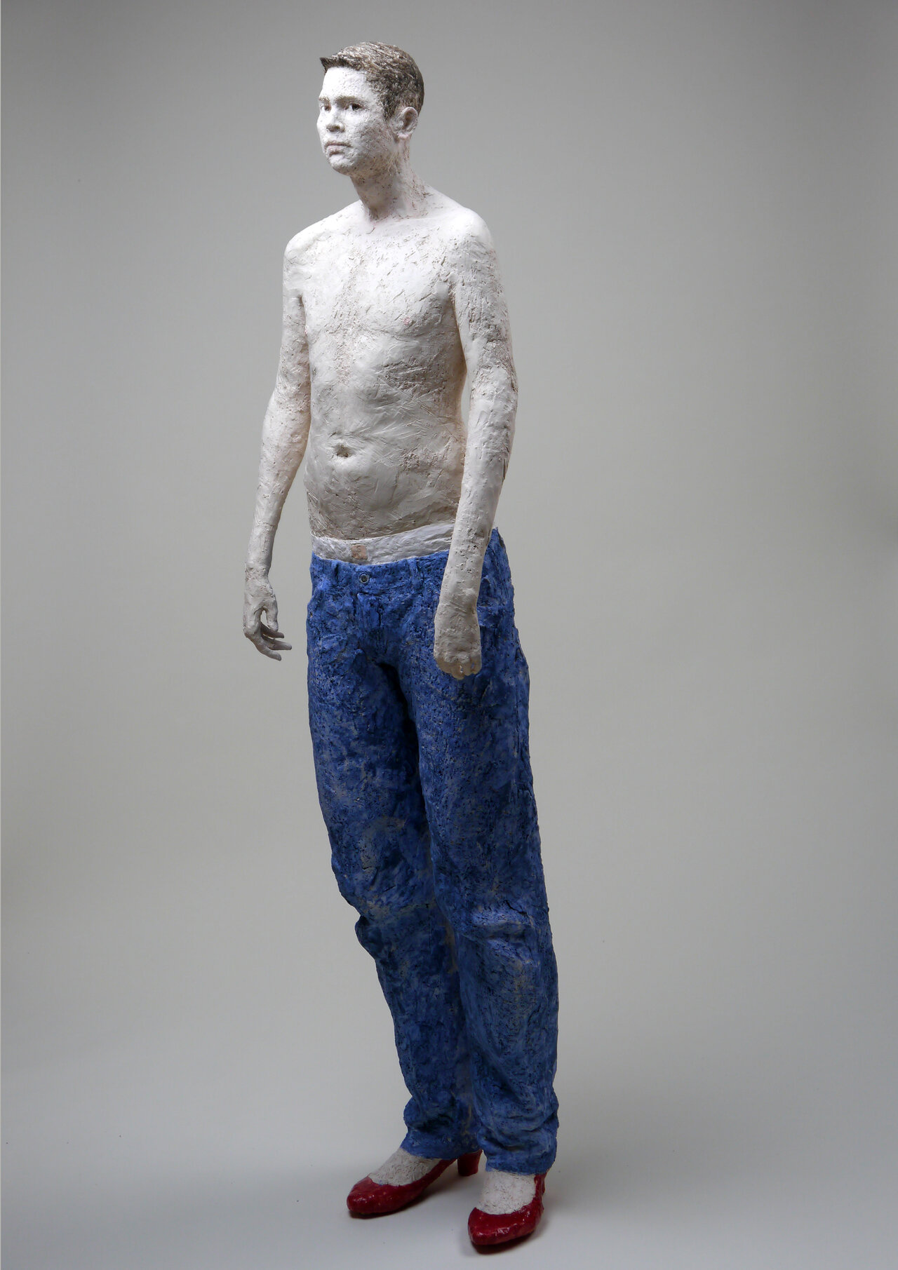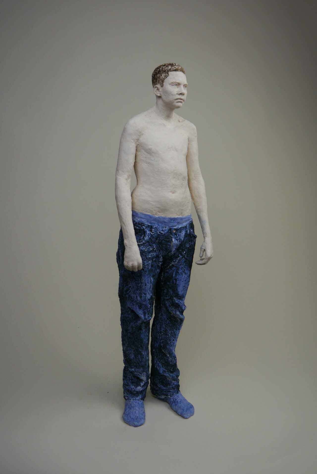 Figur: 18 x 37 x 12 cm, Vasenobjekt: 6 x 6 x 6 cm