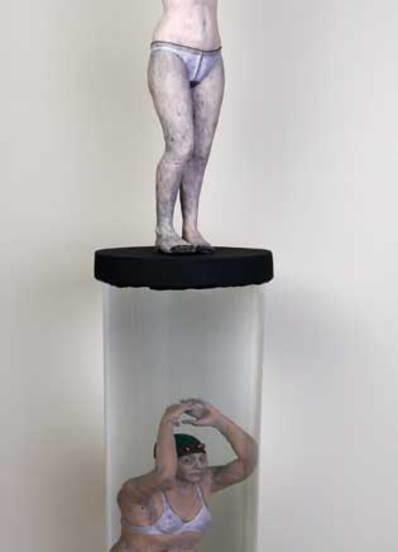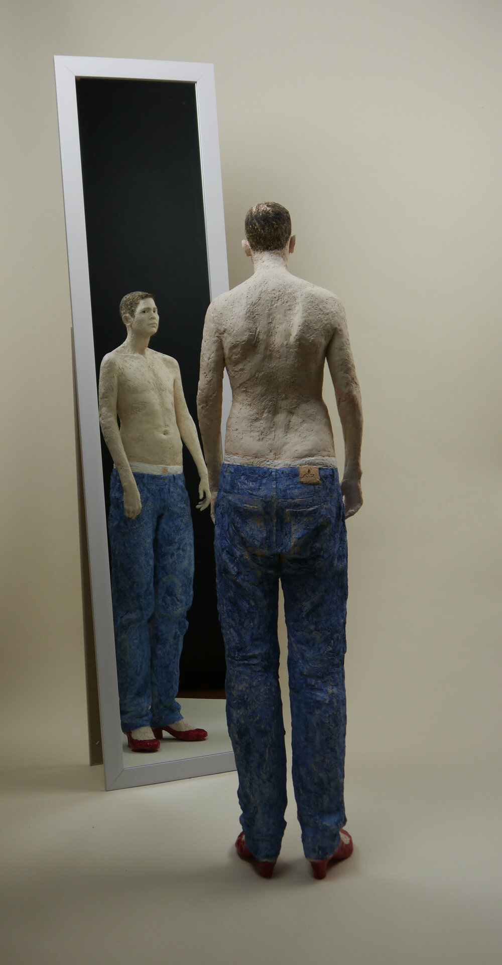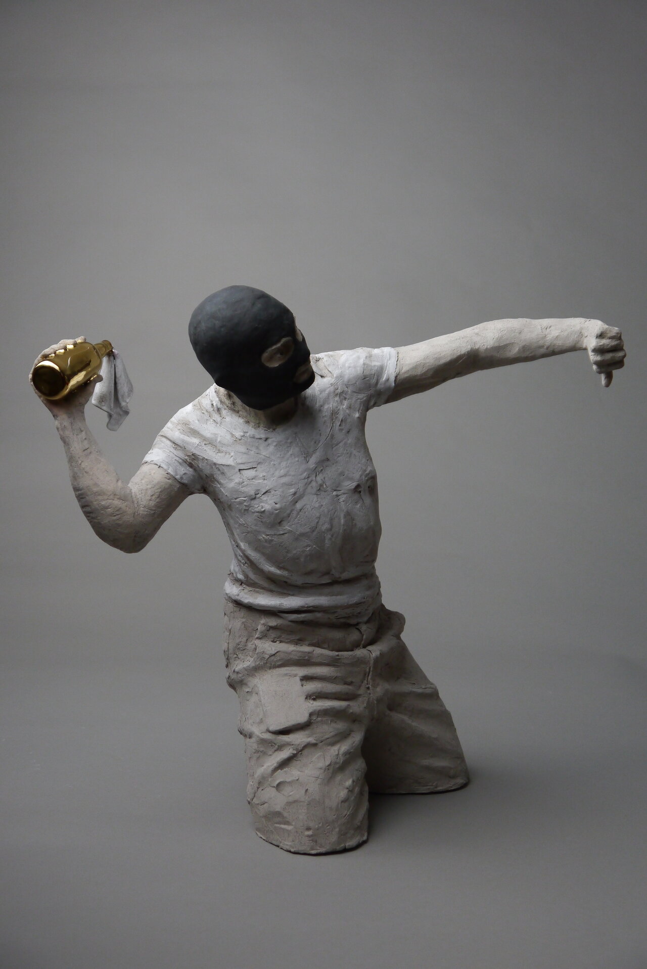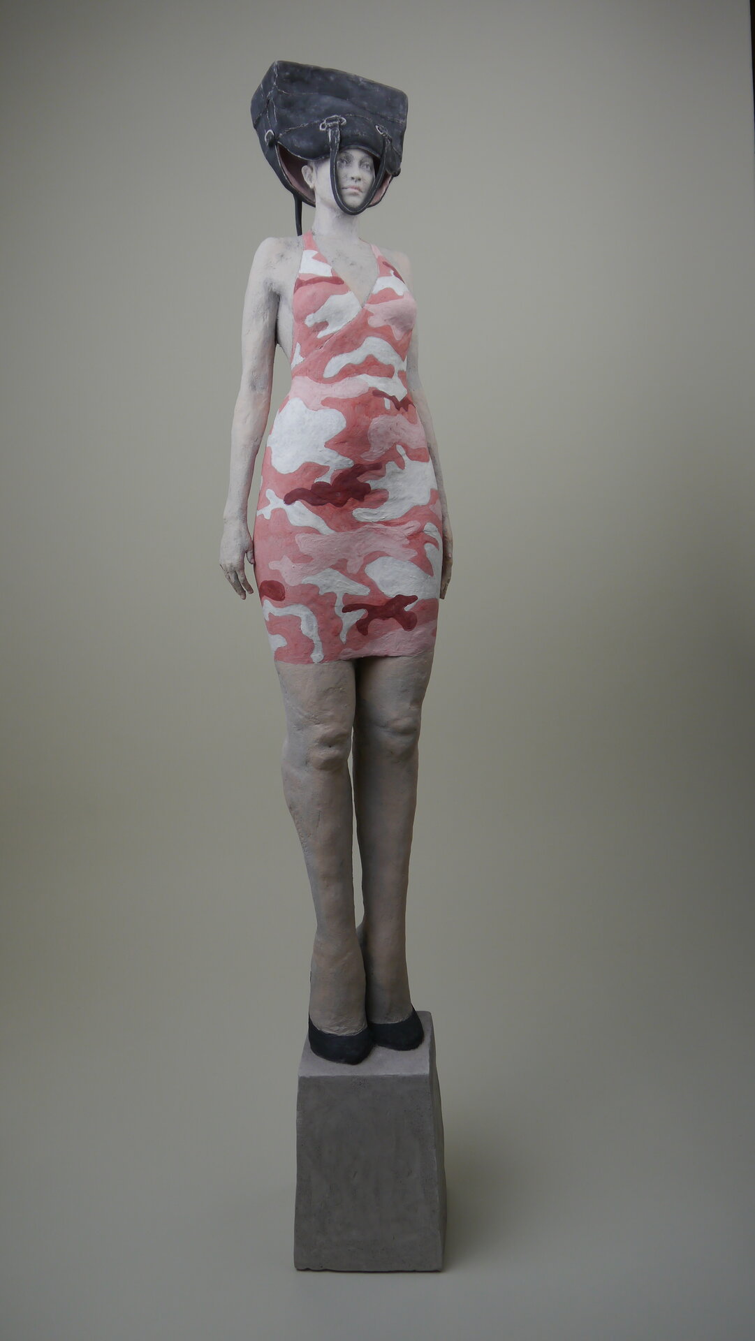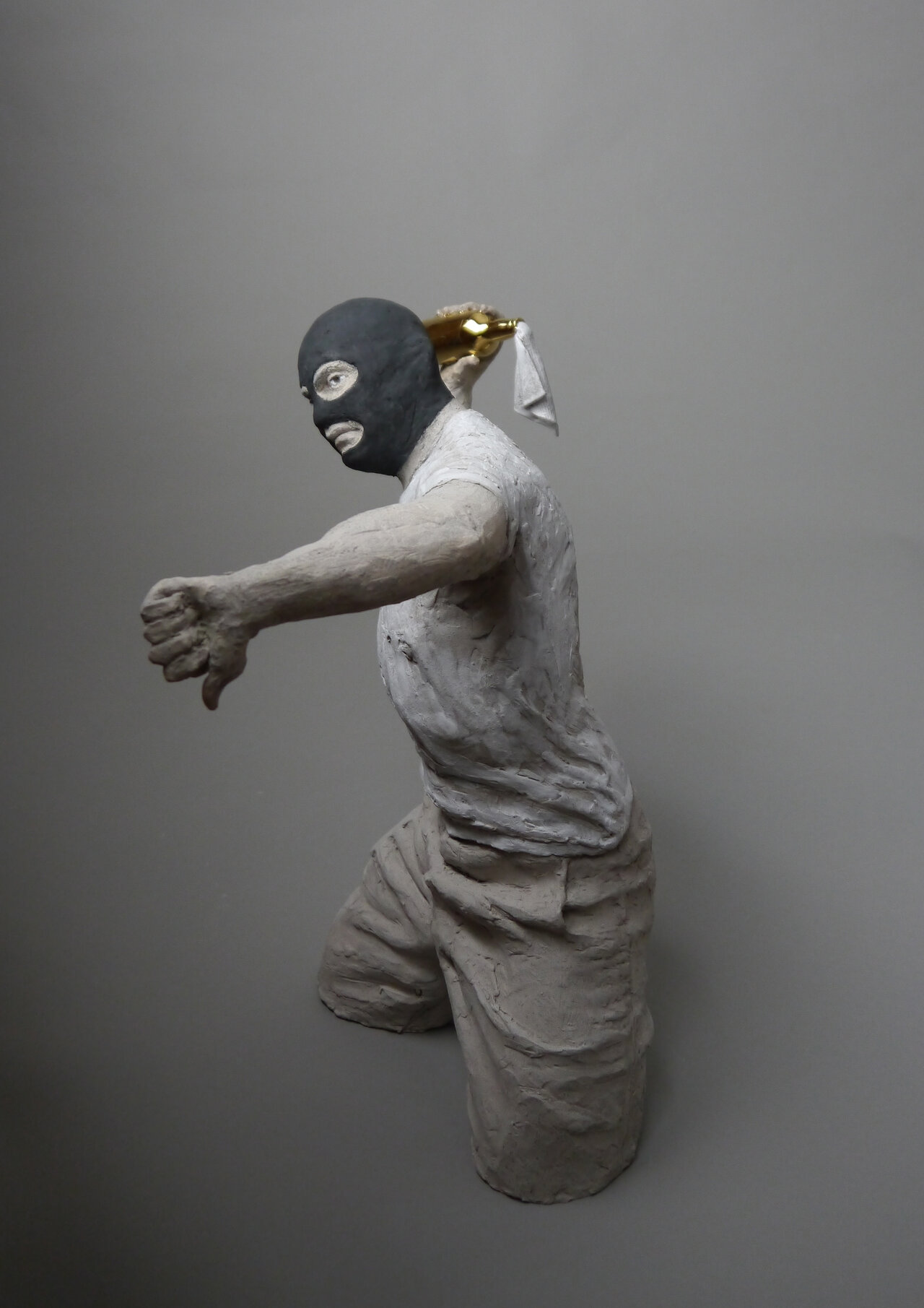 Figur: 18 x 37 x 12 cm, Vasenobjekt: 6 x 6 x 6 cm