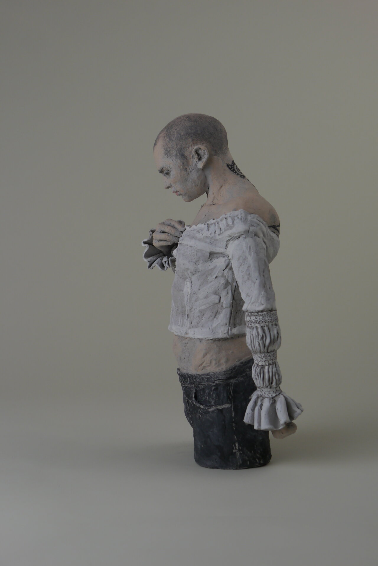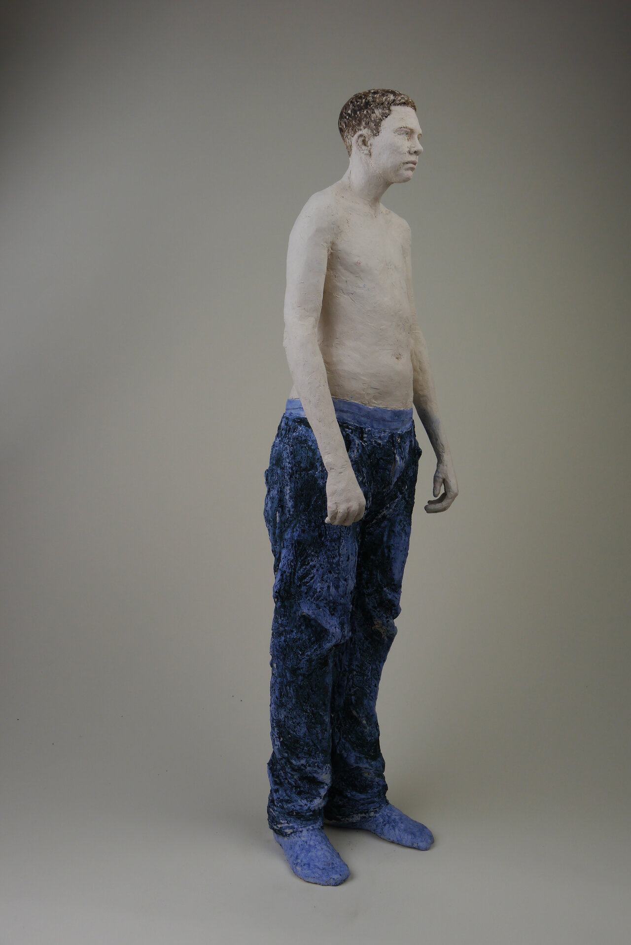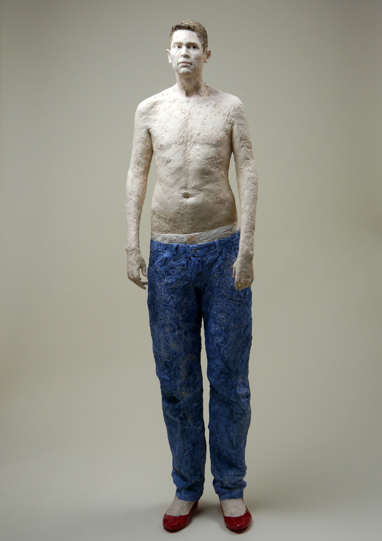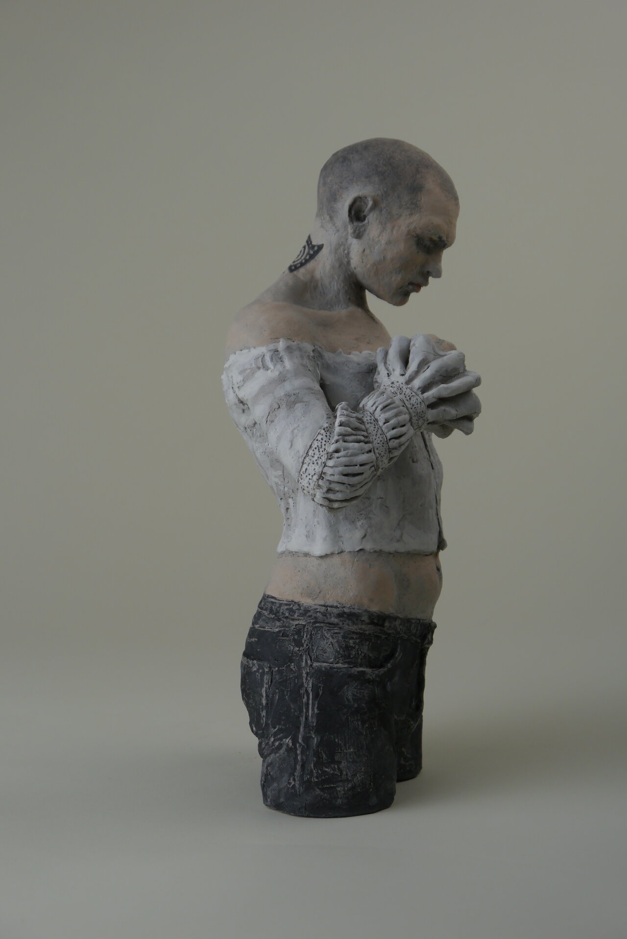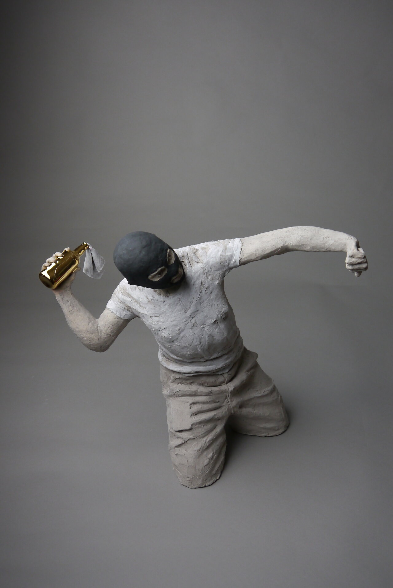 Figur: 18 x 37 x 12 cm, Vasenobjekt: 6 x 6 x 6 cm