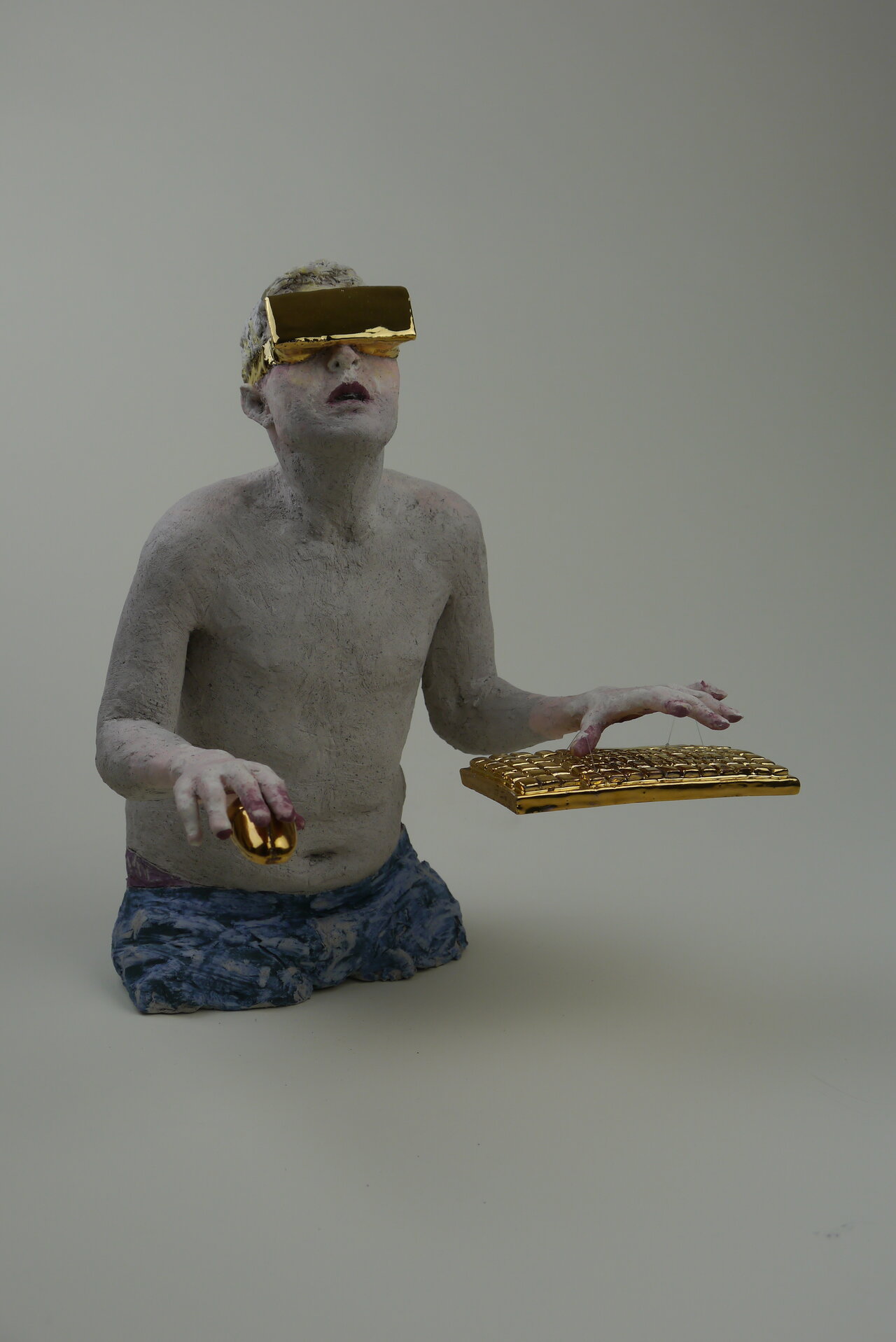 Steinzeug, Engobe, Pigmente, Glasur, Glanzgold, Swarovski Kristalle