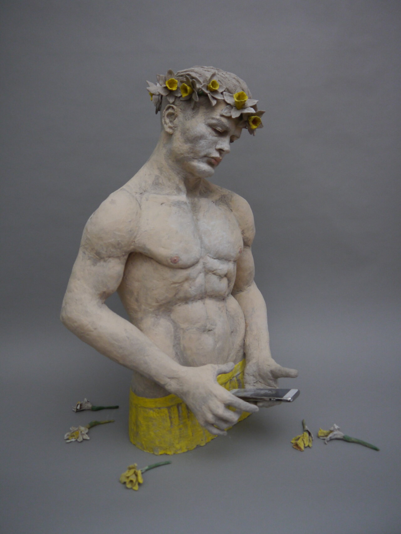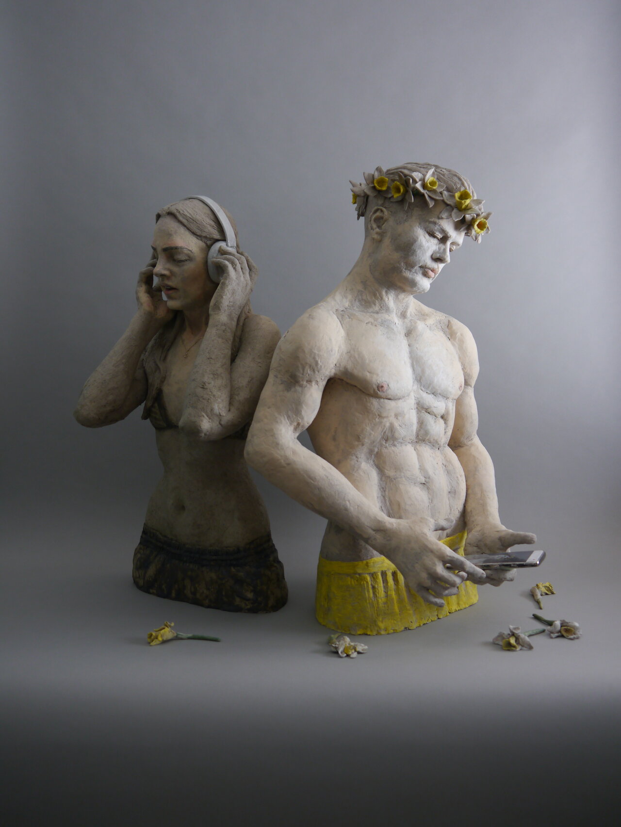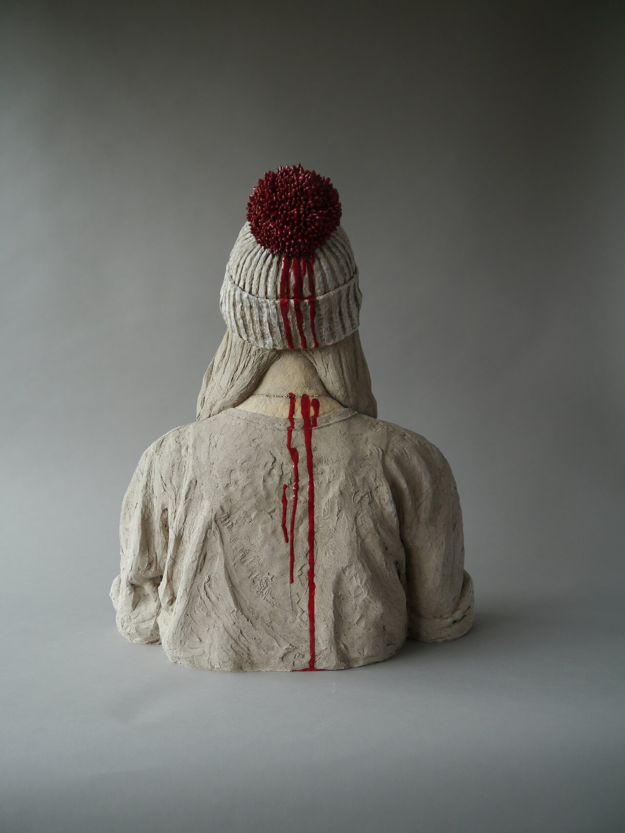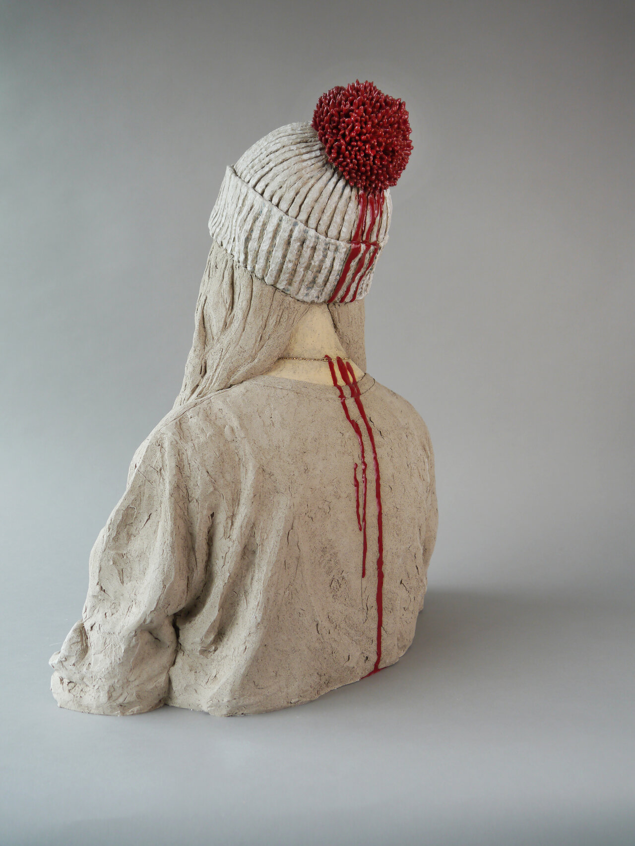 Stephanie Marie Roos, 2020, 44 x 25 x 47 cm, Steinzeug, Engobe, Unterglasurdecal, Glasur, Glanzgold