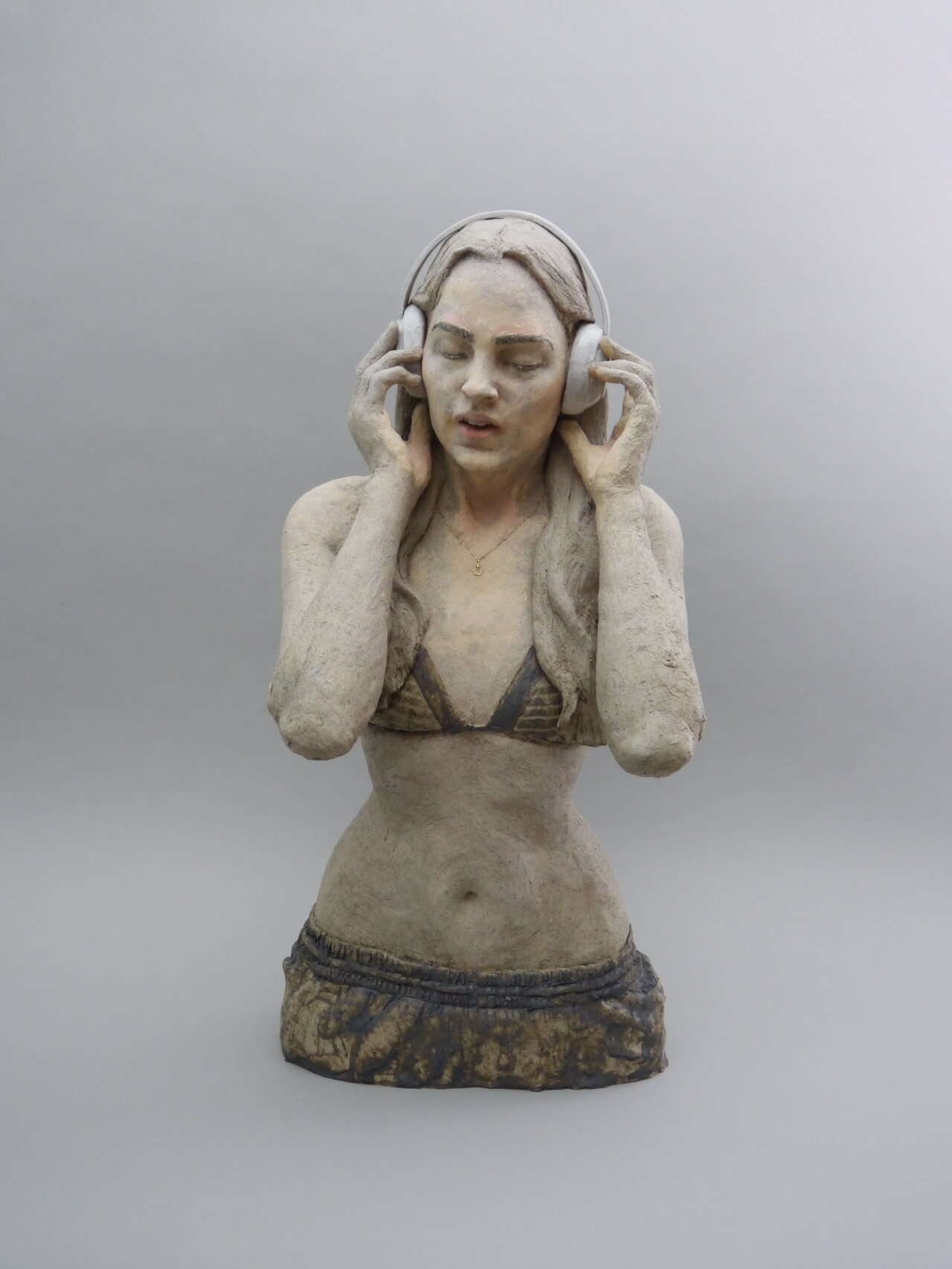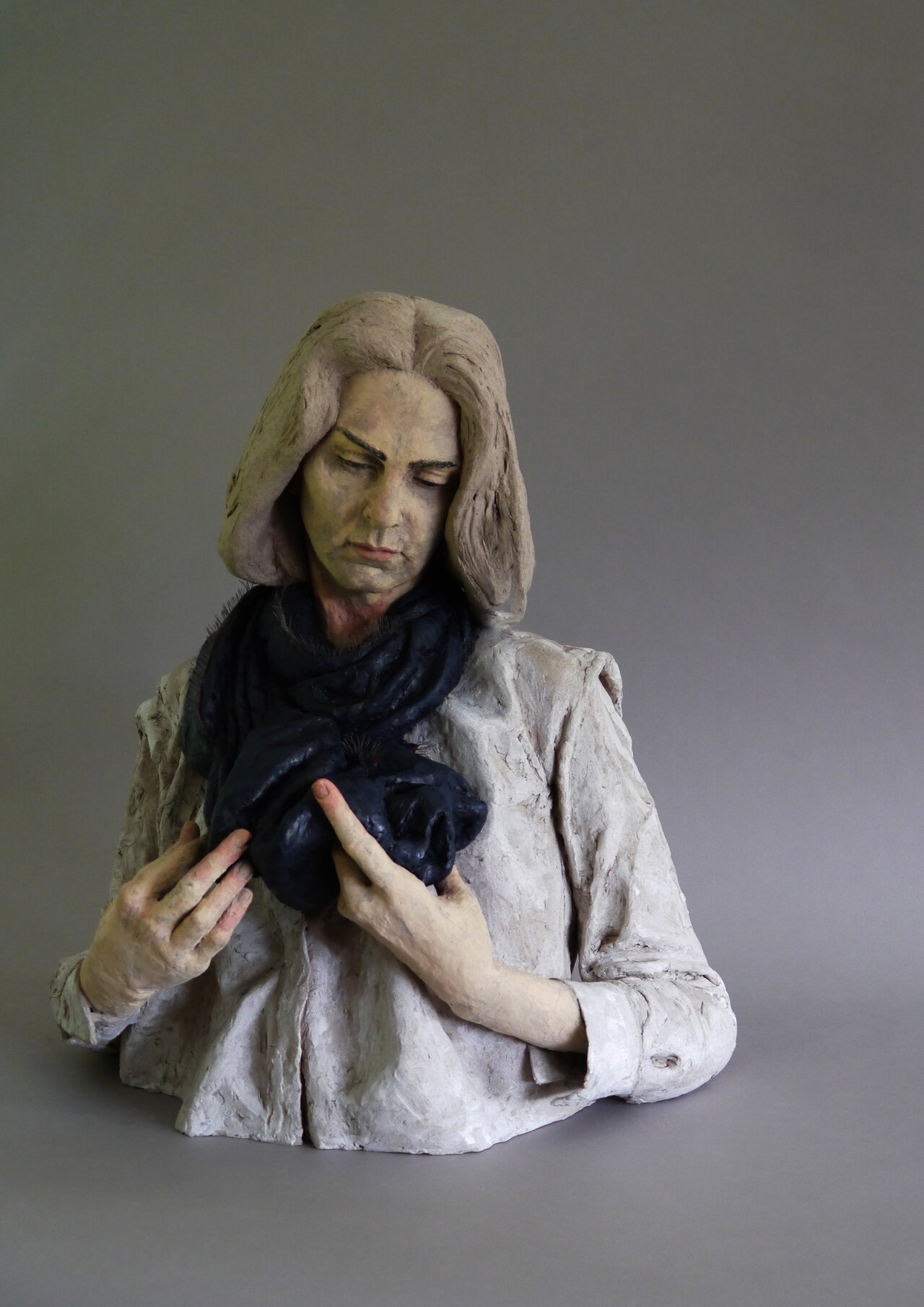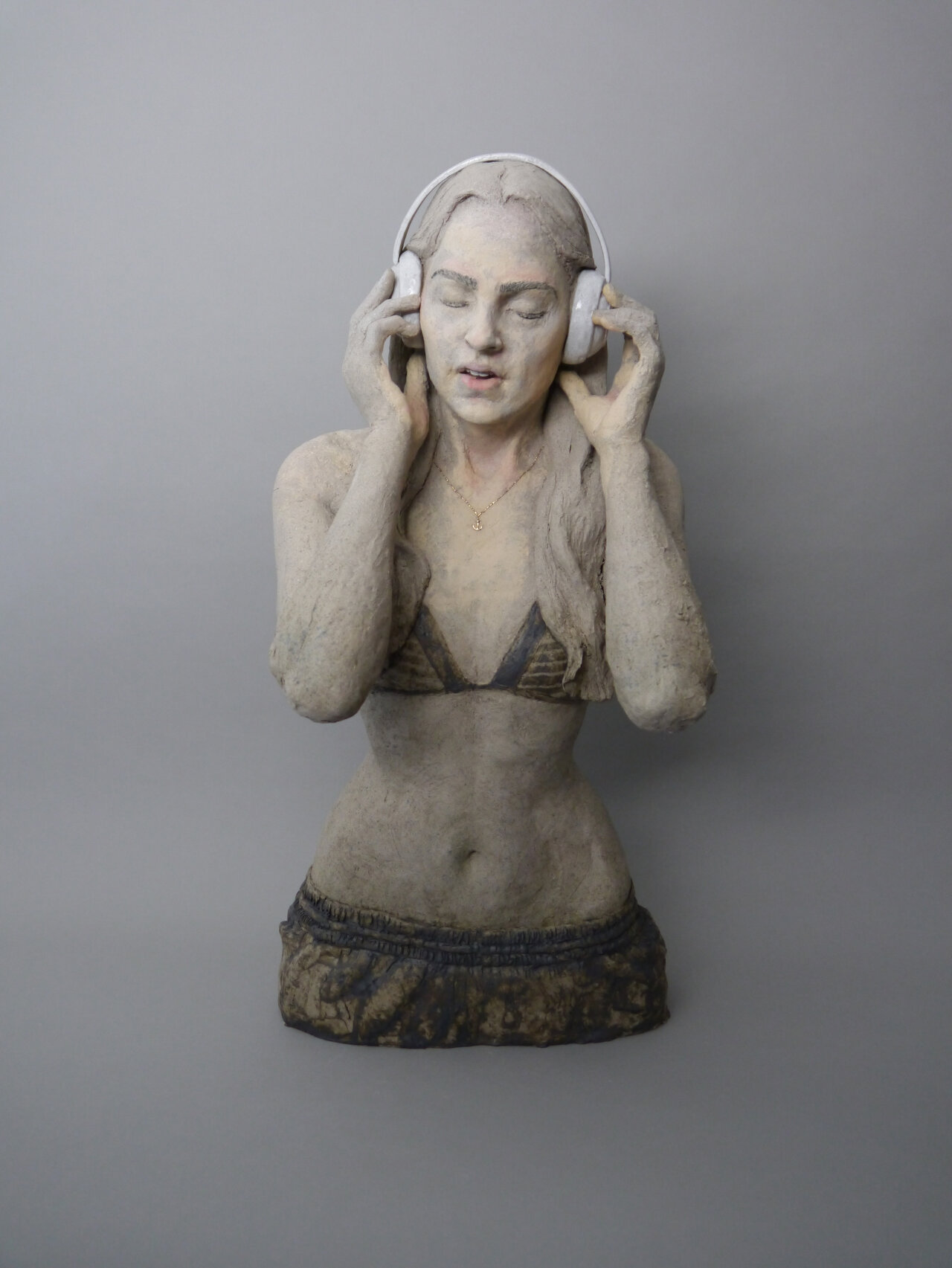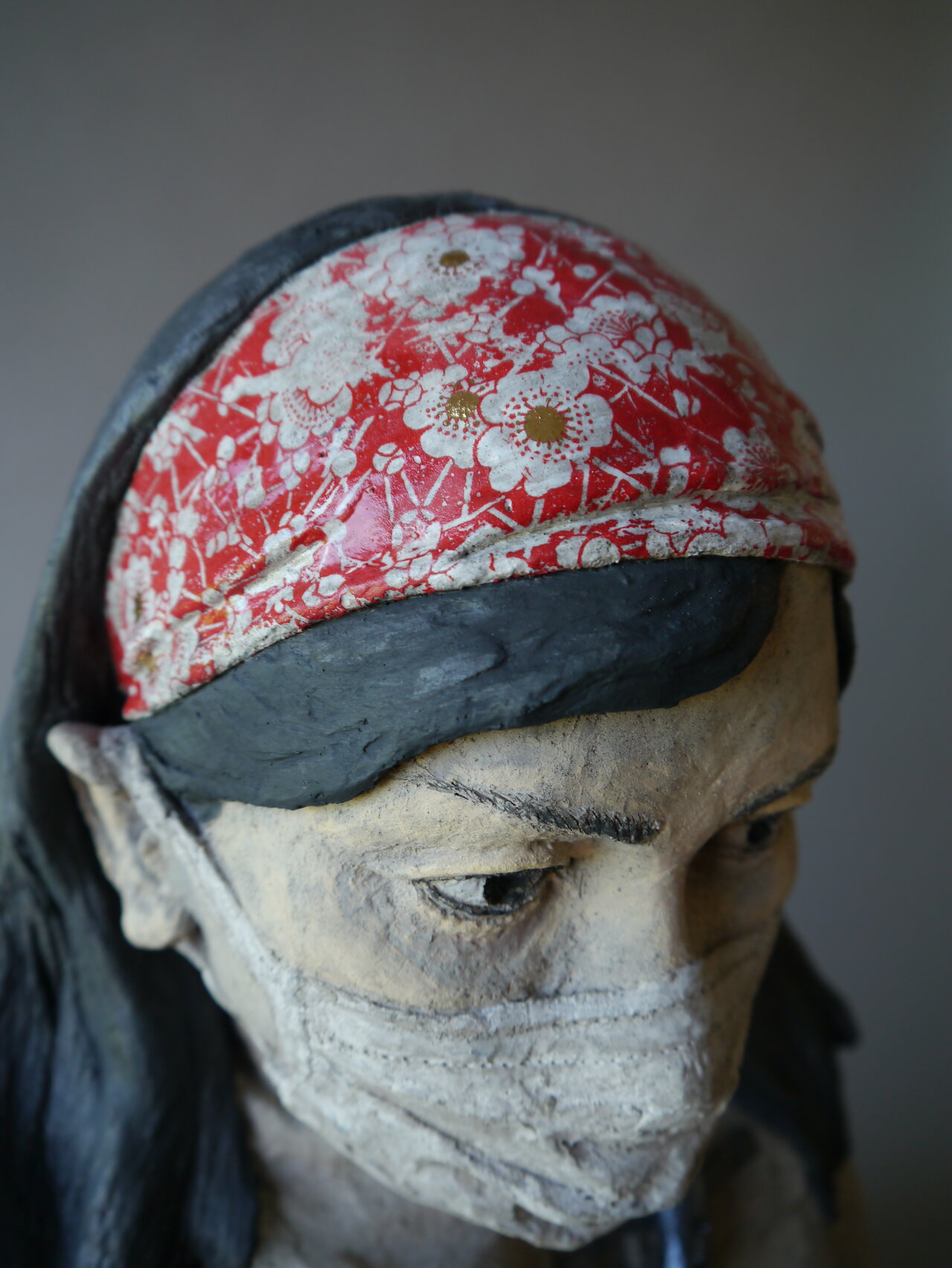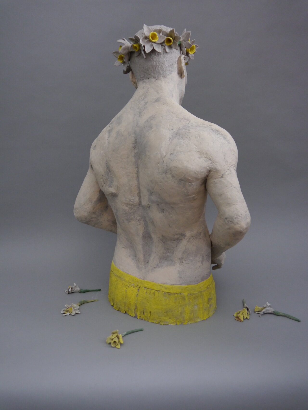 Stephanie Marie Roos, 2020, 44 x 25 x 47 cm, Steinzeug, Engobe, Unterglasurdecal, Glasur, Glanzgold