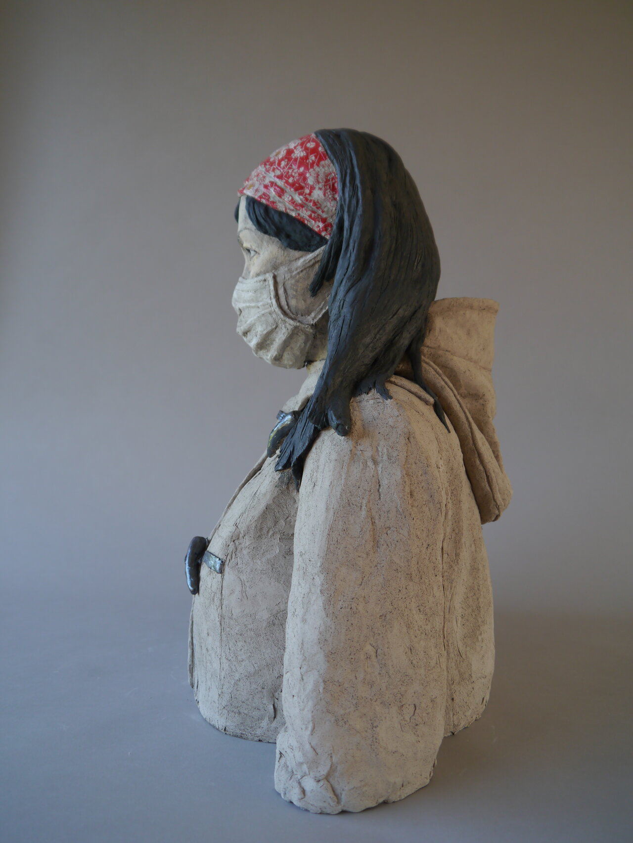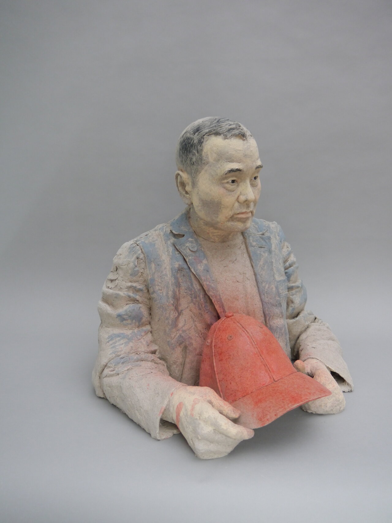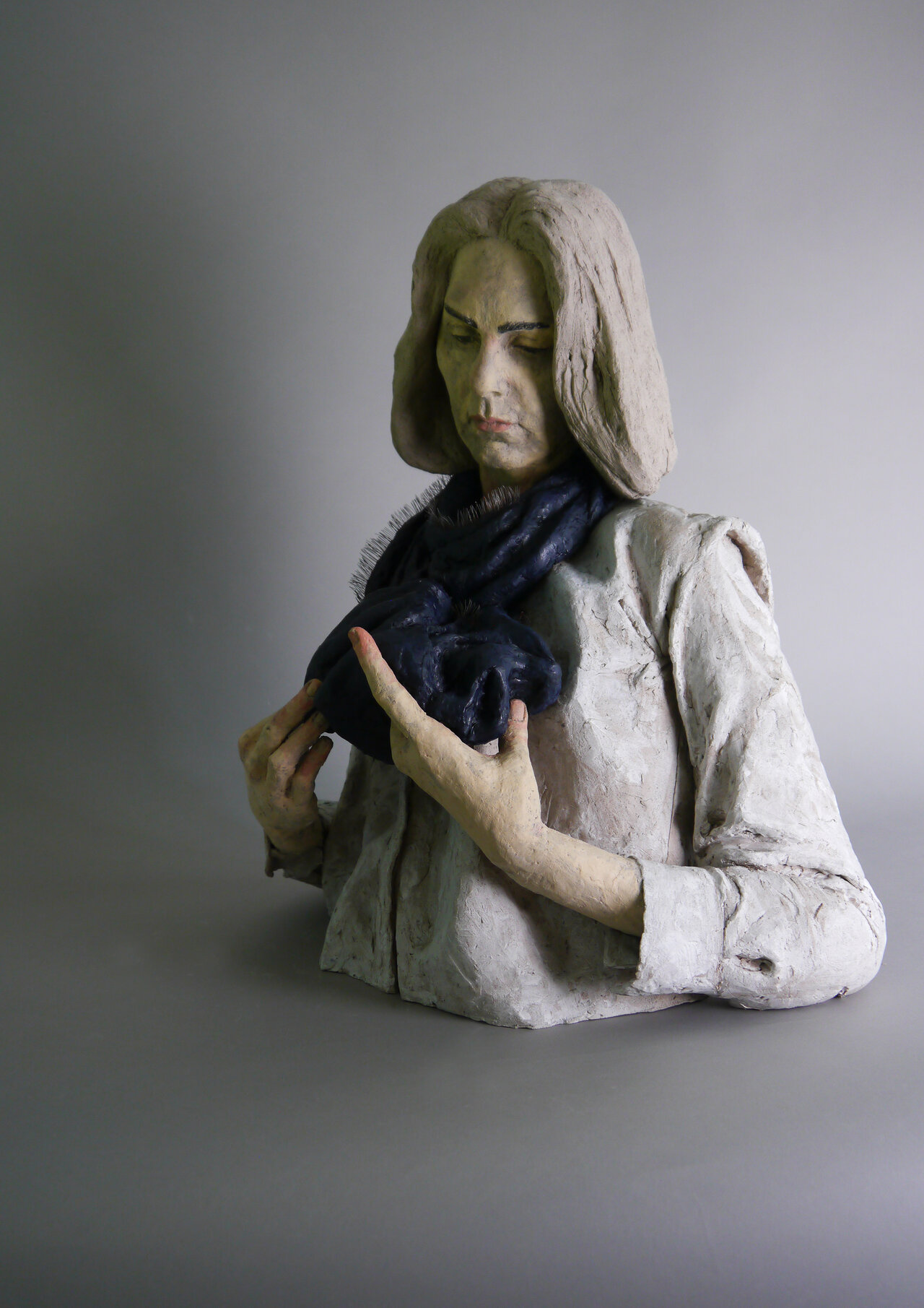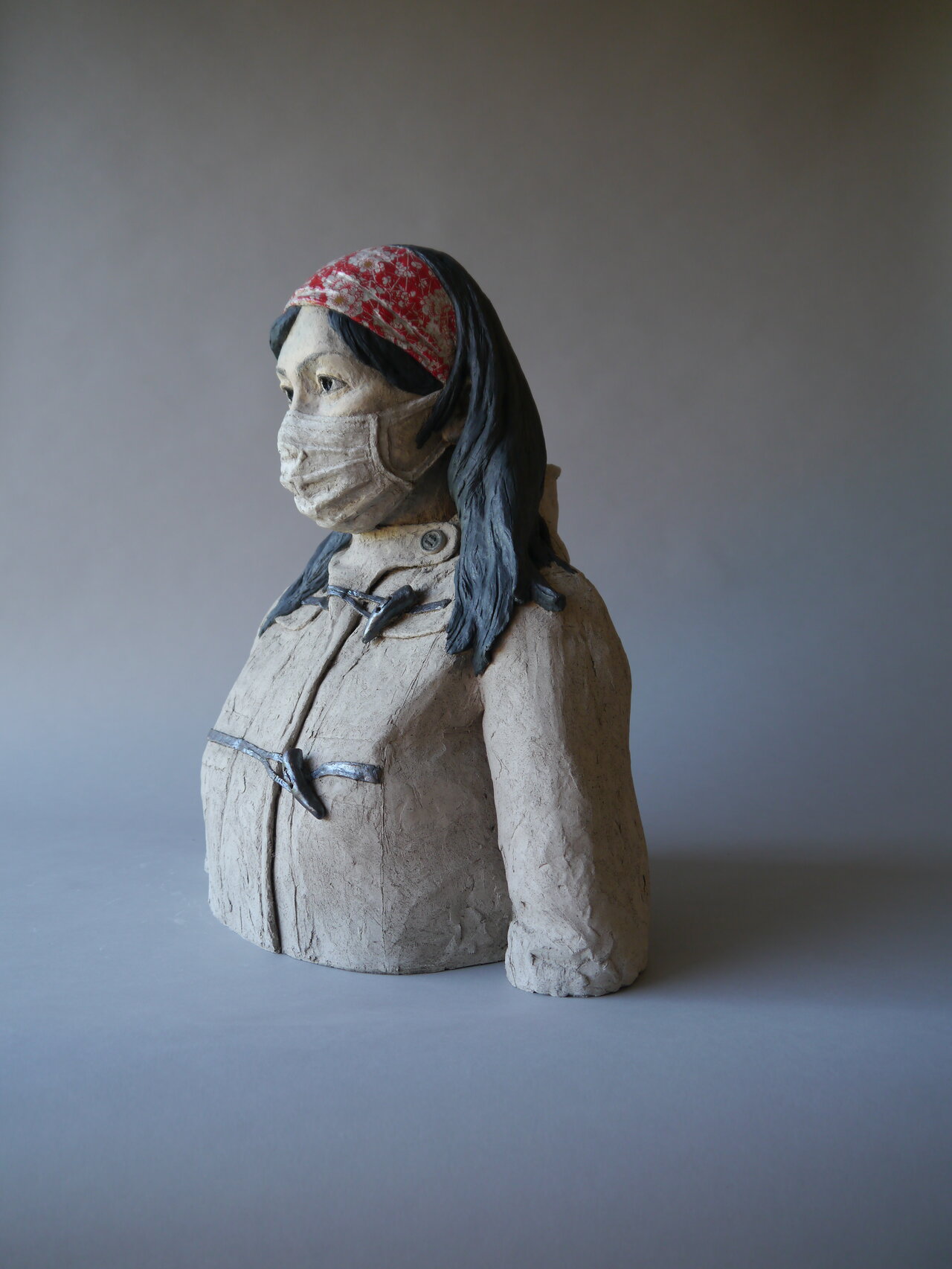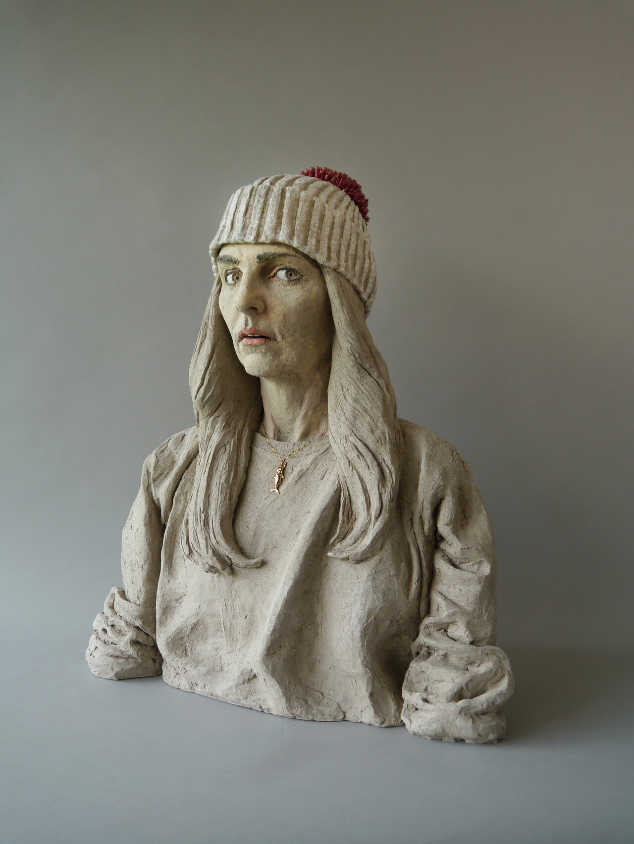 Stephanie Marie Roos, 2020, 44 x 25 x 47 cm, Steinzeug, Engobe, Unterglasurdecal, Glasur, Glanzgold