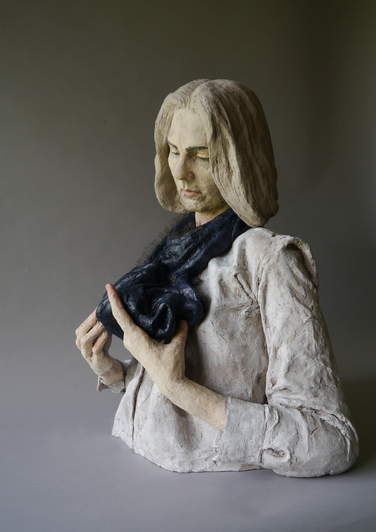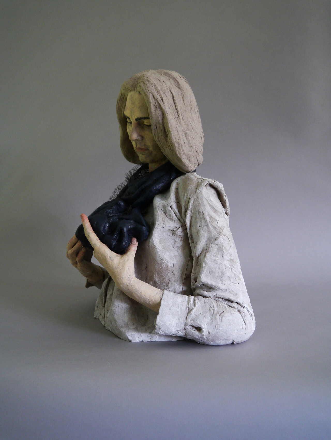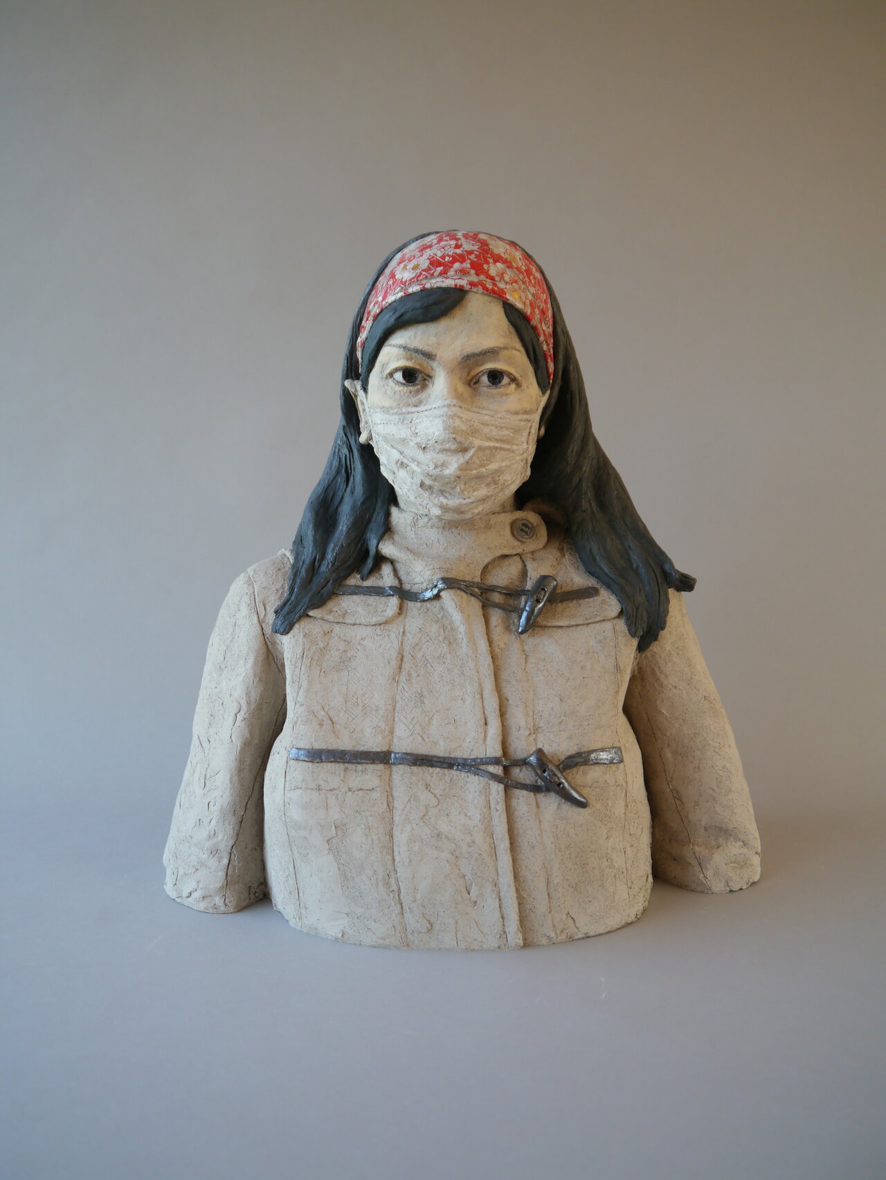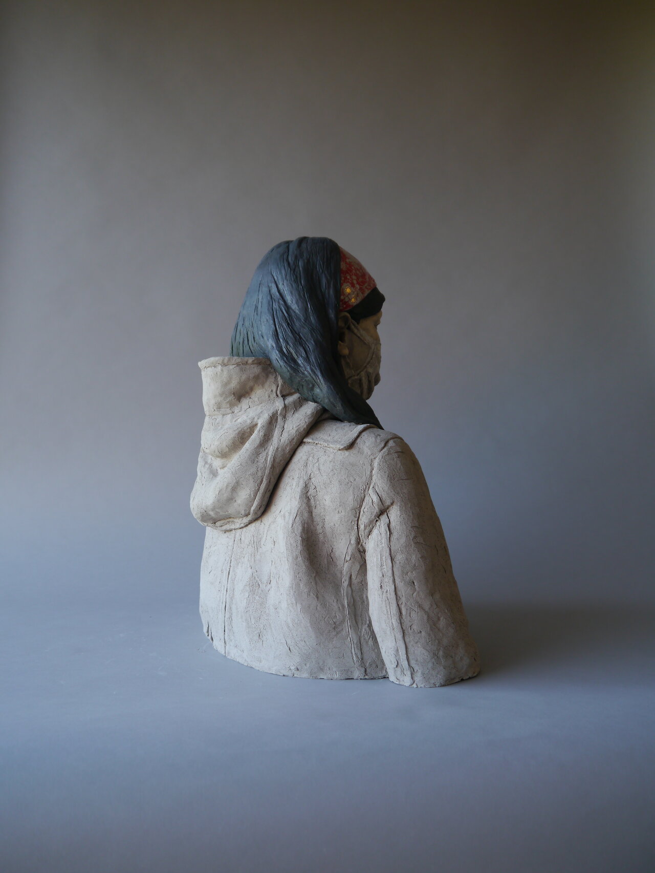 Stephanie Marie Roos, 2020, 44 x 25 x 47 cm, Steinzeug, Engobe, Unterglasurdecal, Glasur, Glanzgold
