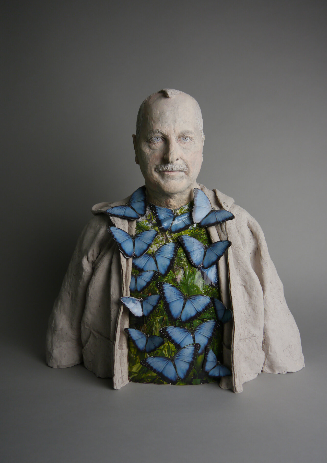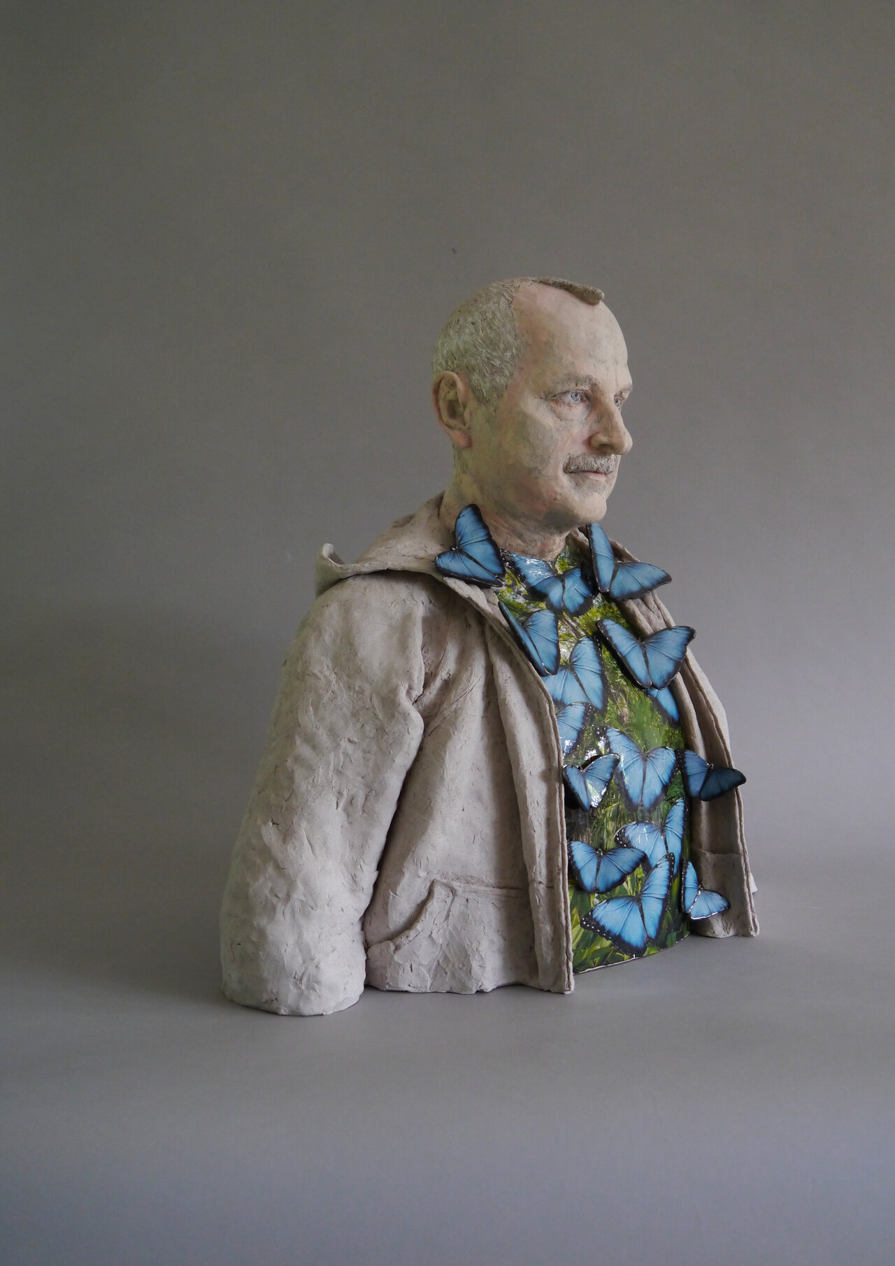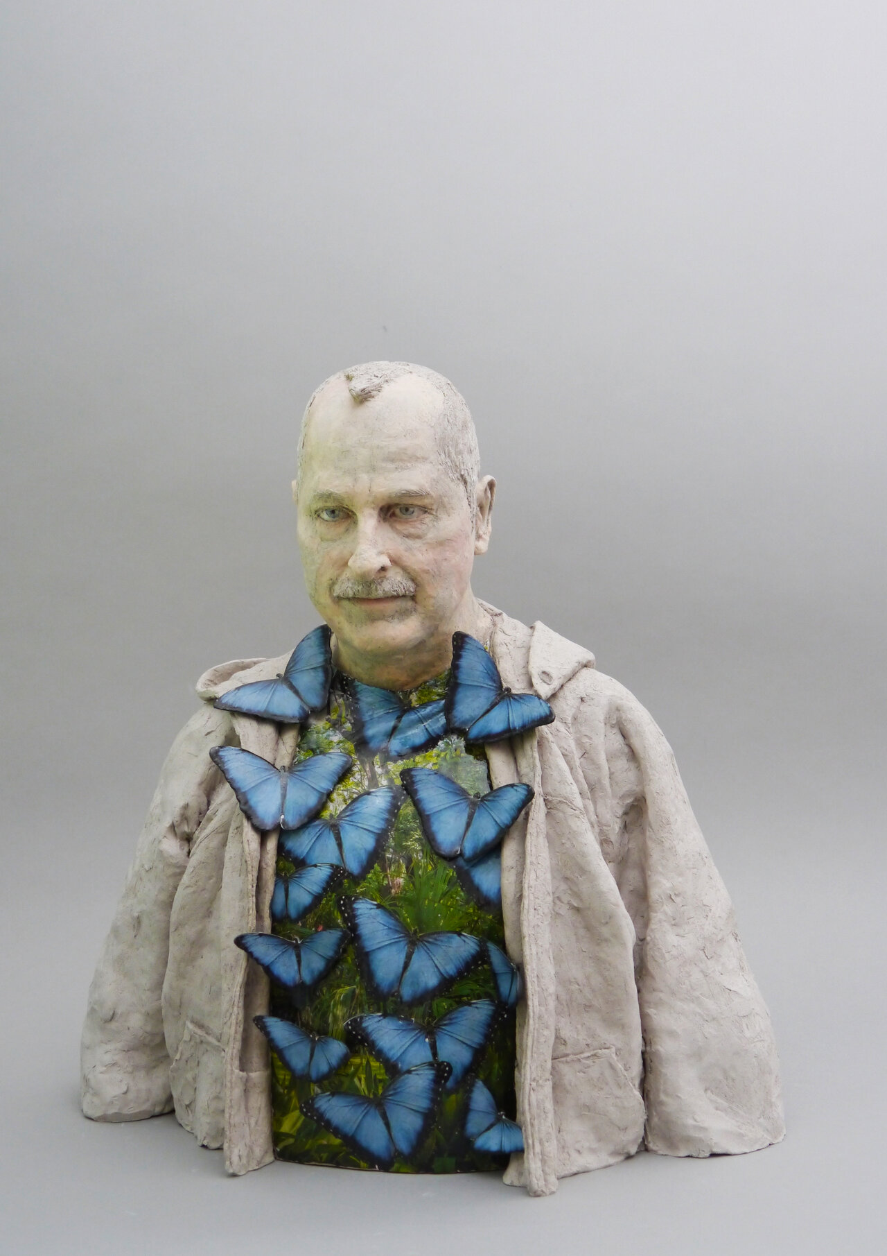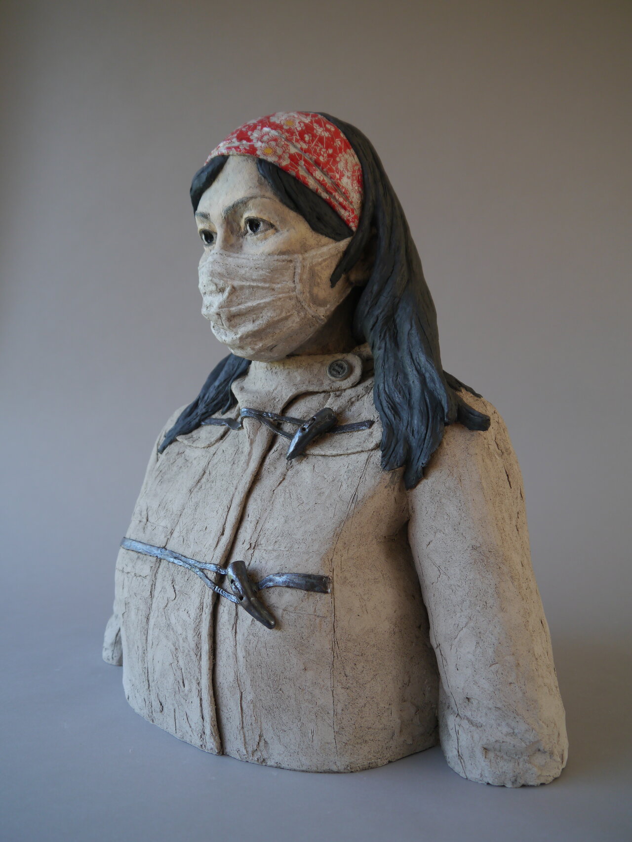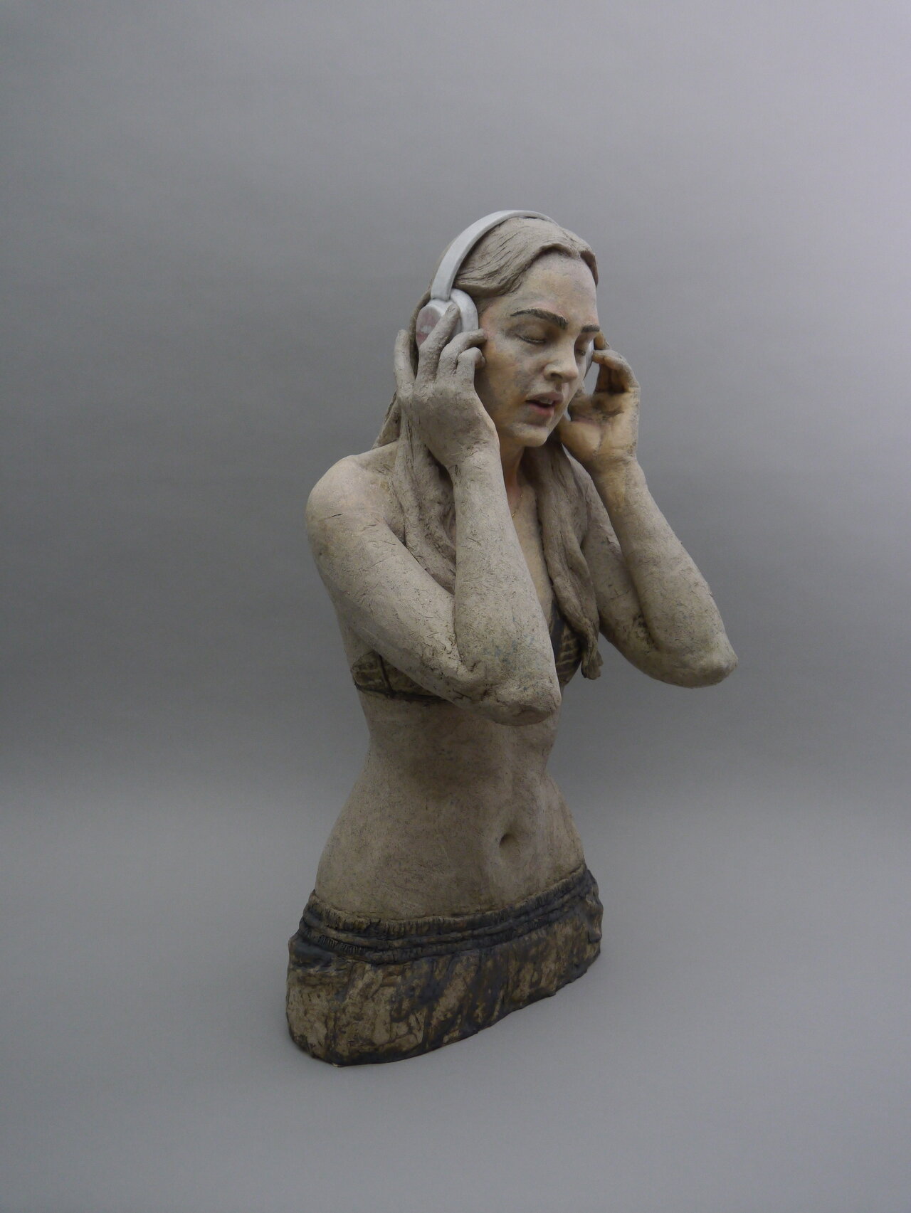 Stephanie Marie Roos, 2020, 44 x 25 x 47 cm, Steinzeug, Engobe, Unterglasurdecal, Glasur, Glanzgold