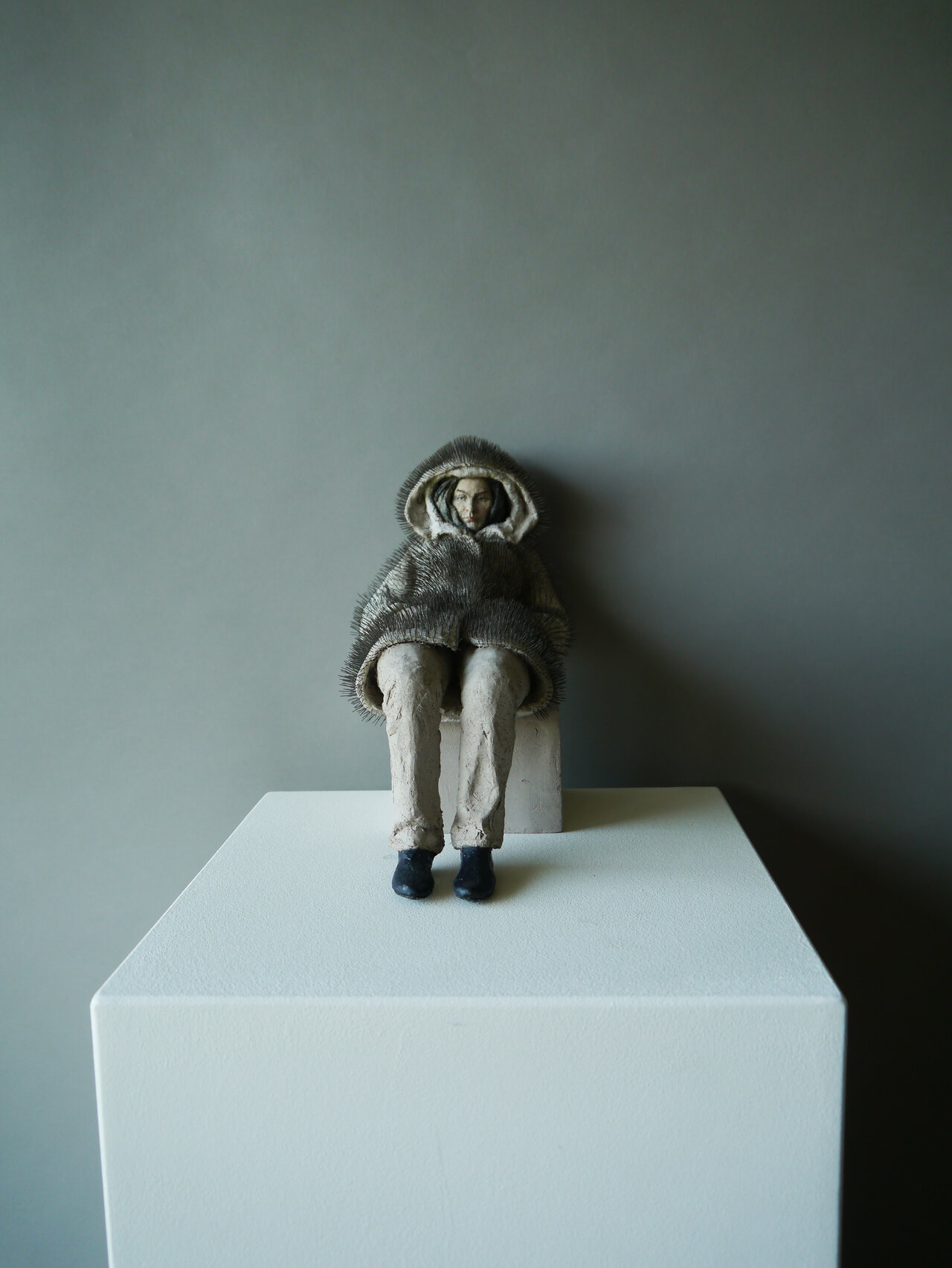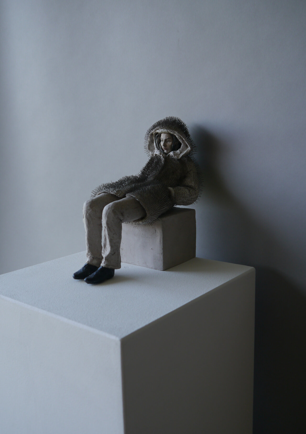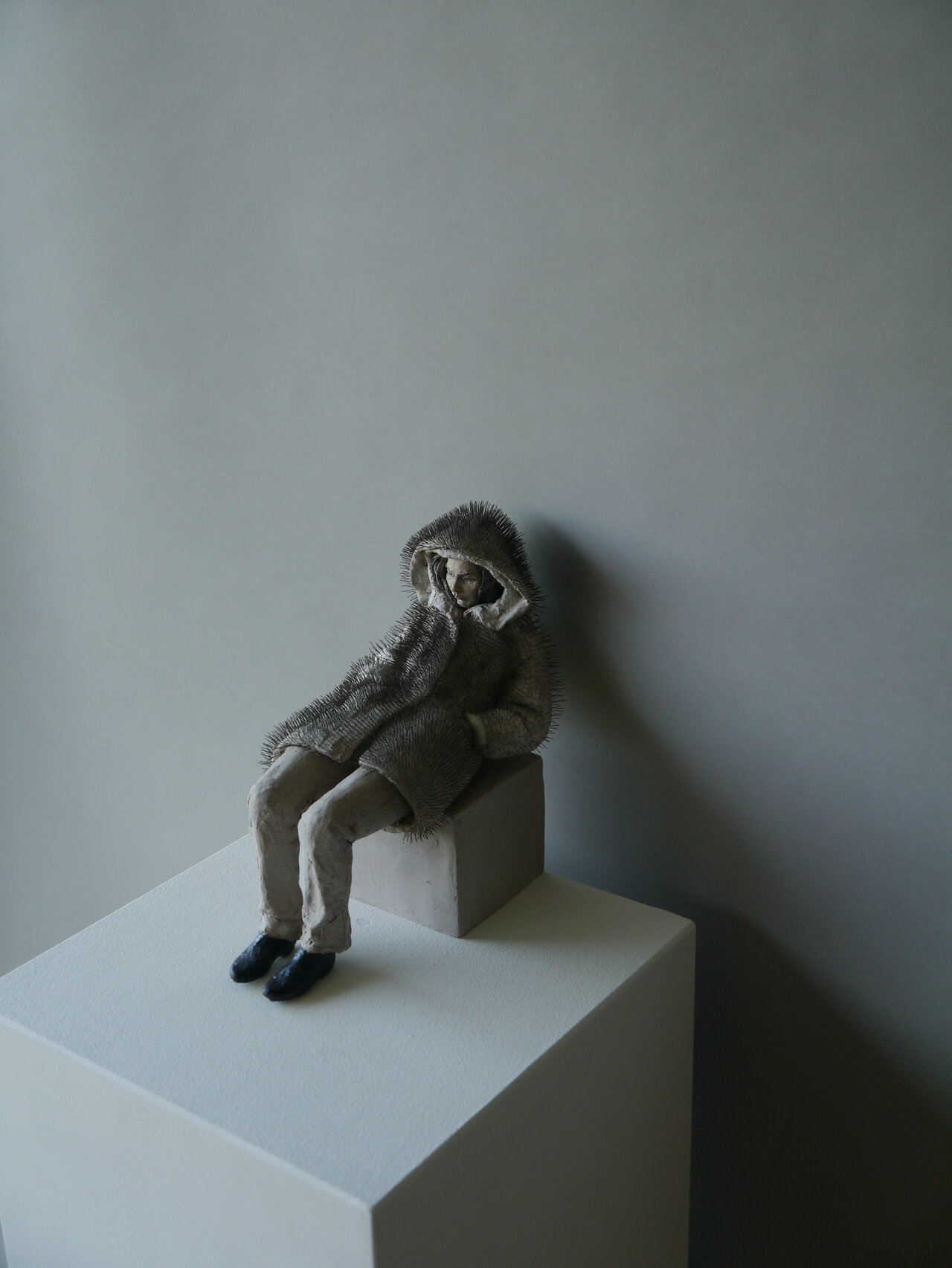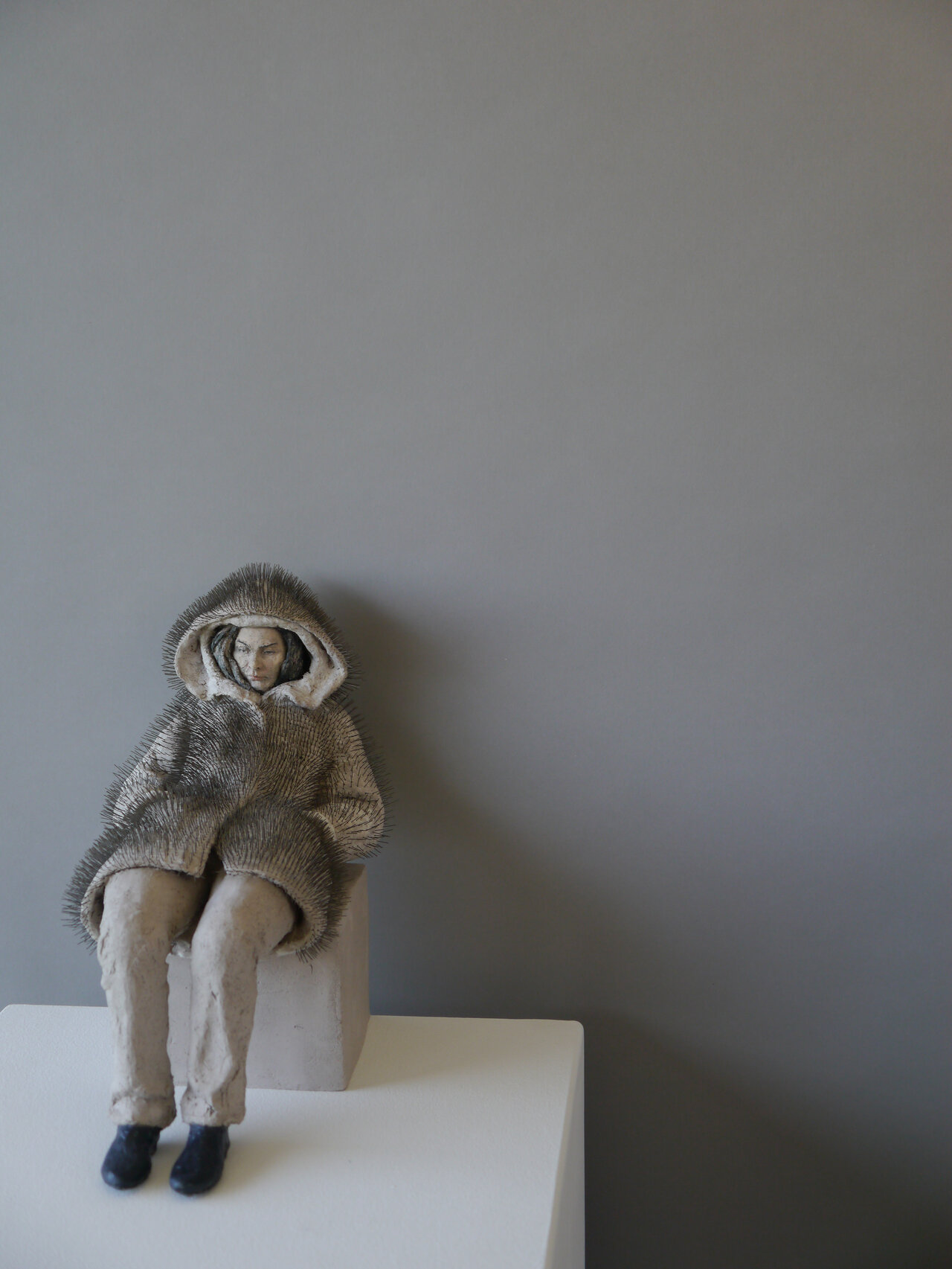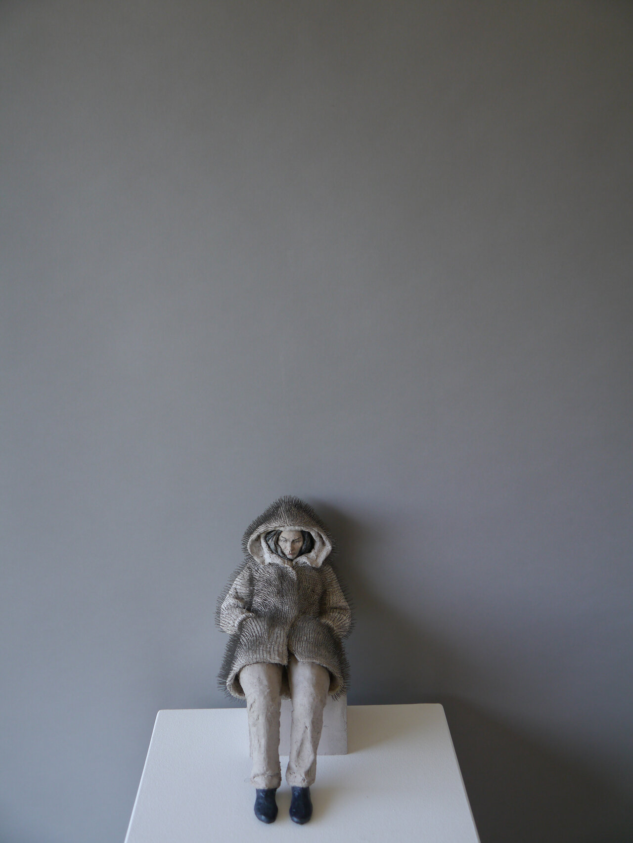 25 x 50 x 25 cm, Regal mit Panzer: 10 x 3,5 x 6 cm, Kleines Mädchen: 13 x 26 x 10 cm, Wandsockel: 25 x 36 x 25
