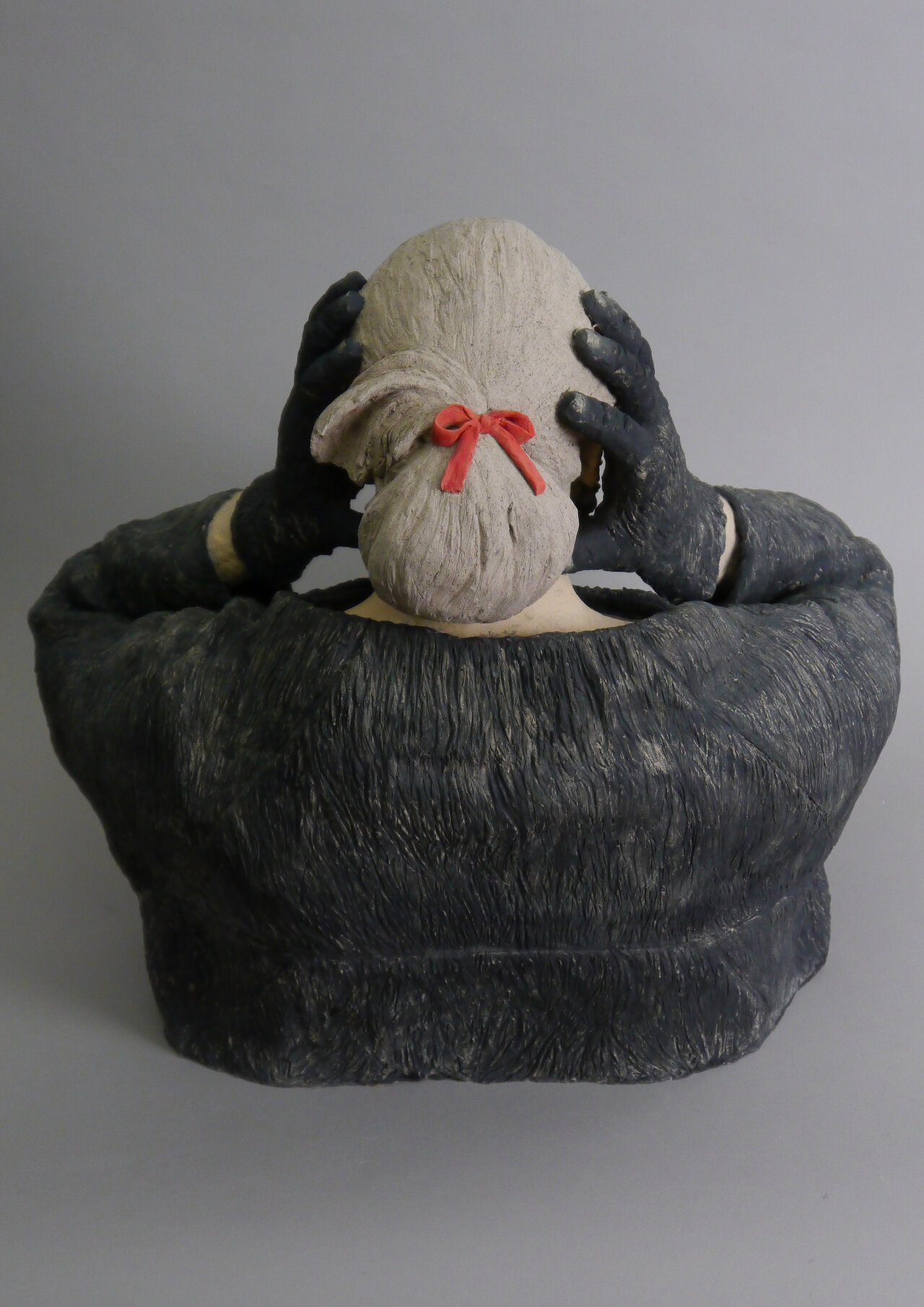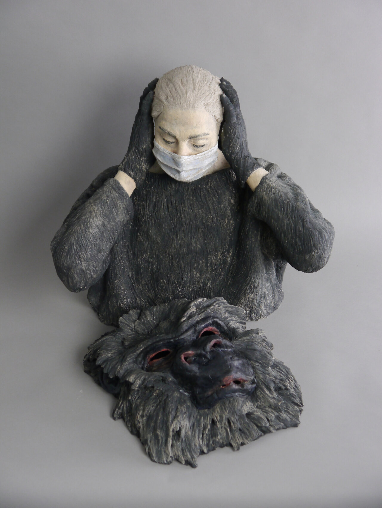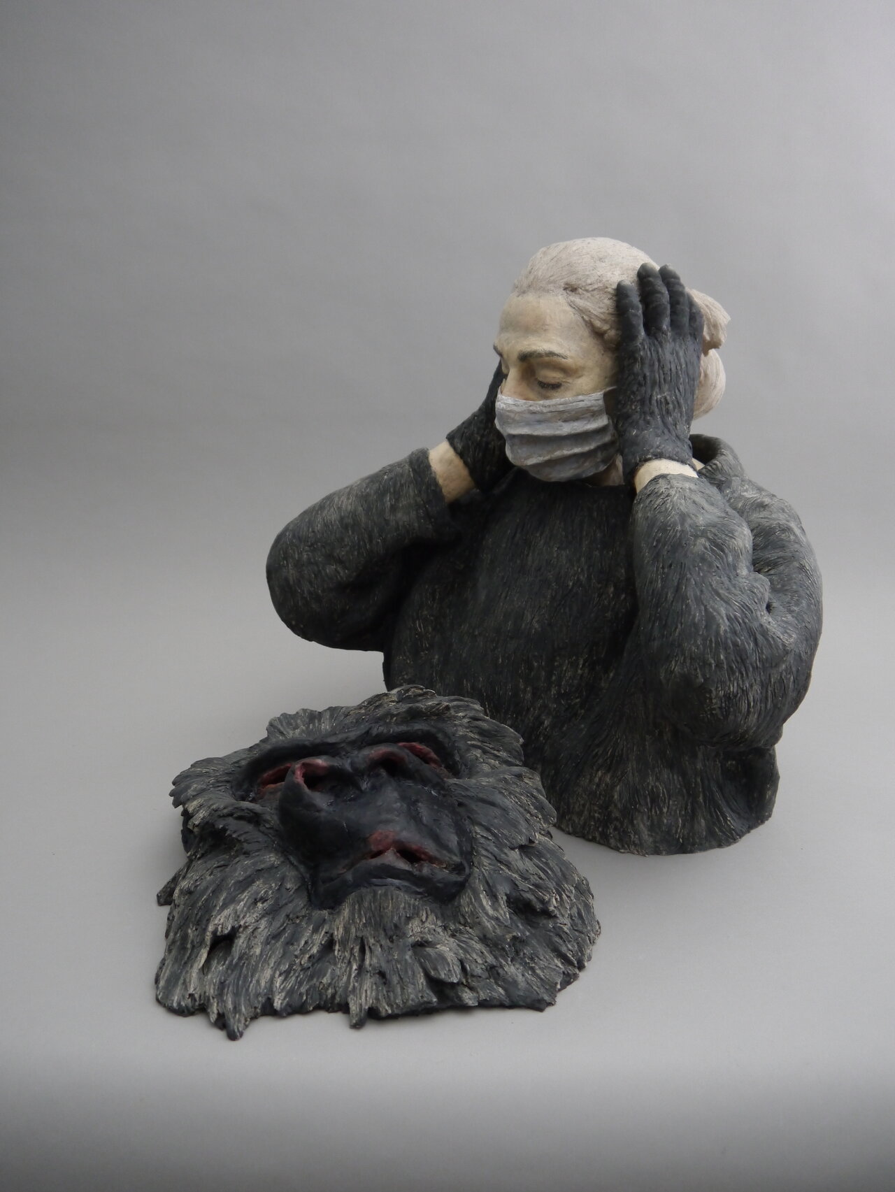 Figur: 45 x 42 x 29cm, Gorillamaske: 28 x 12 x 34cm