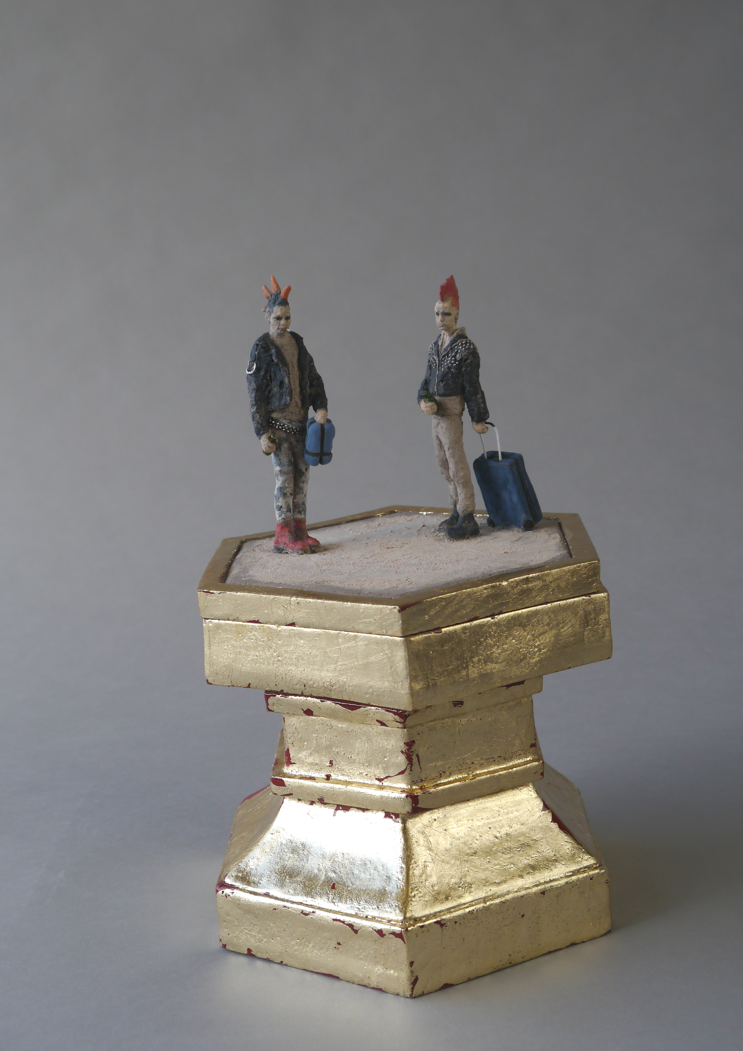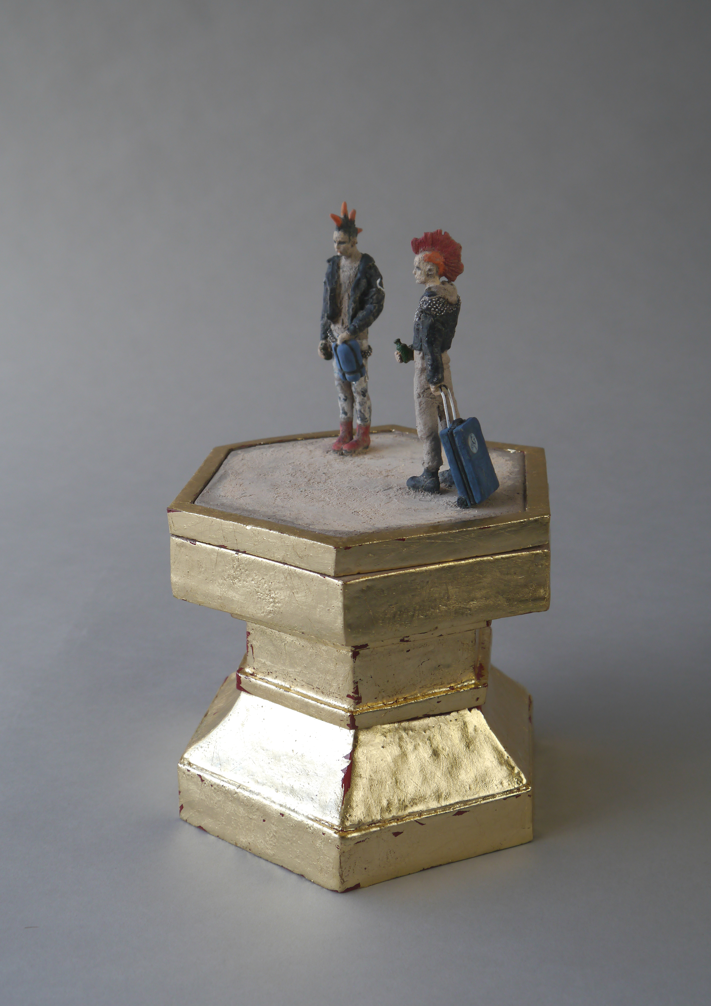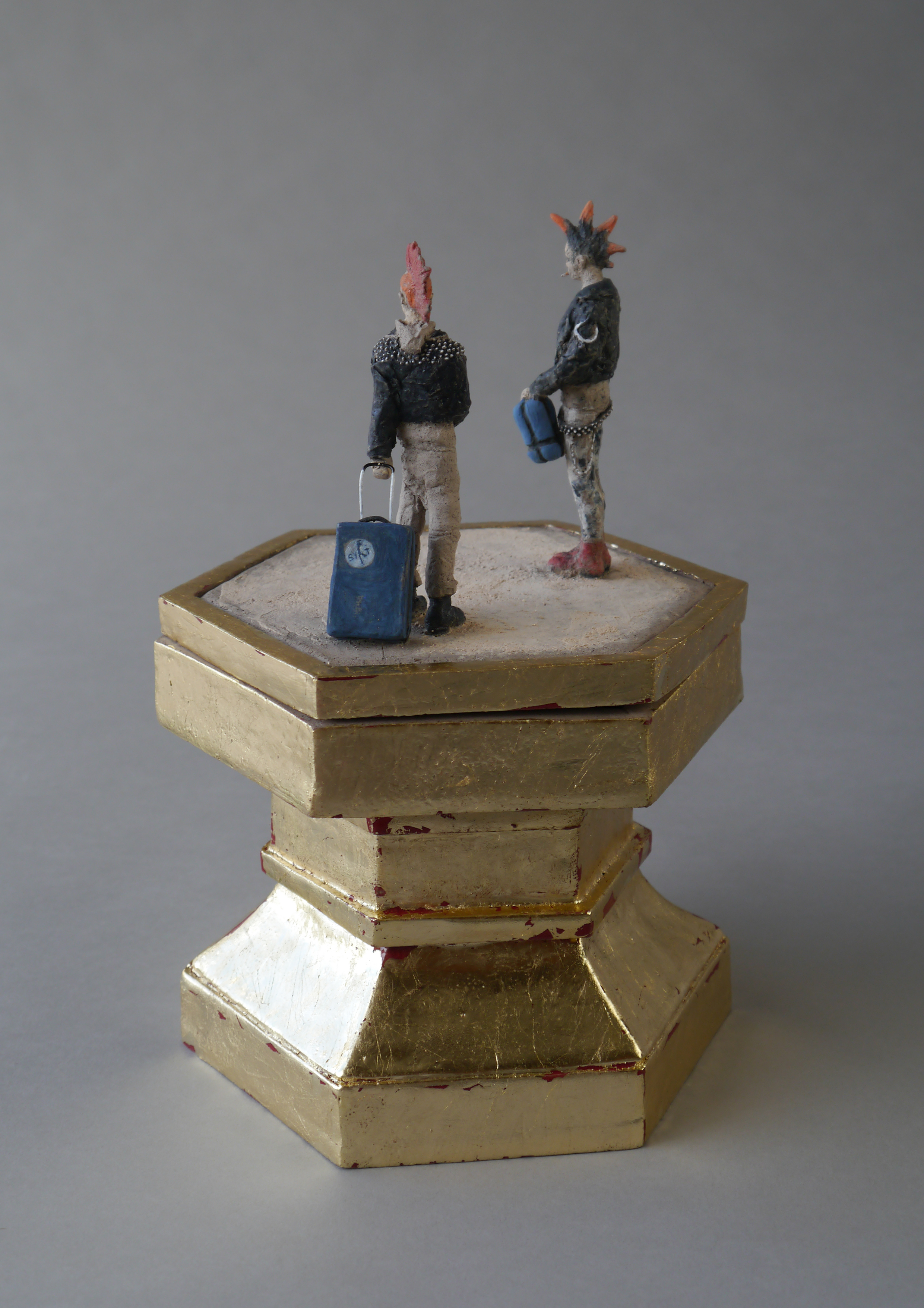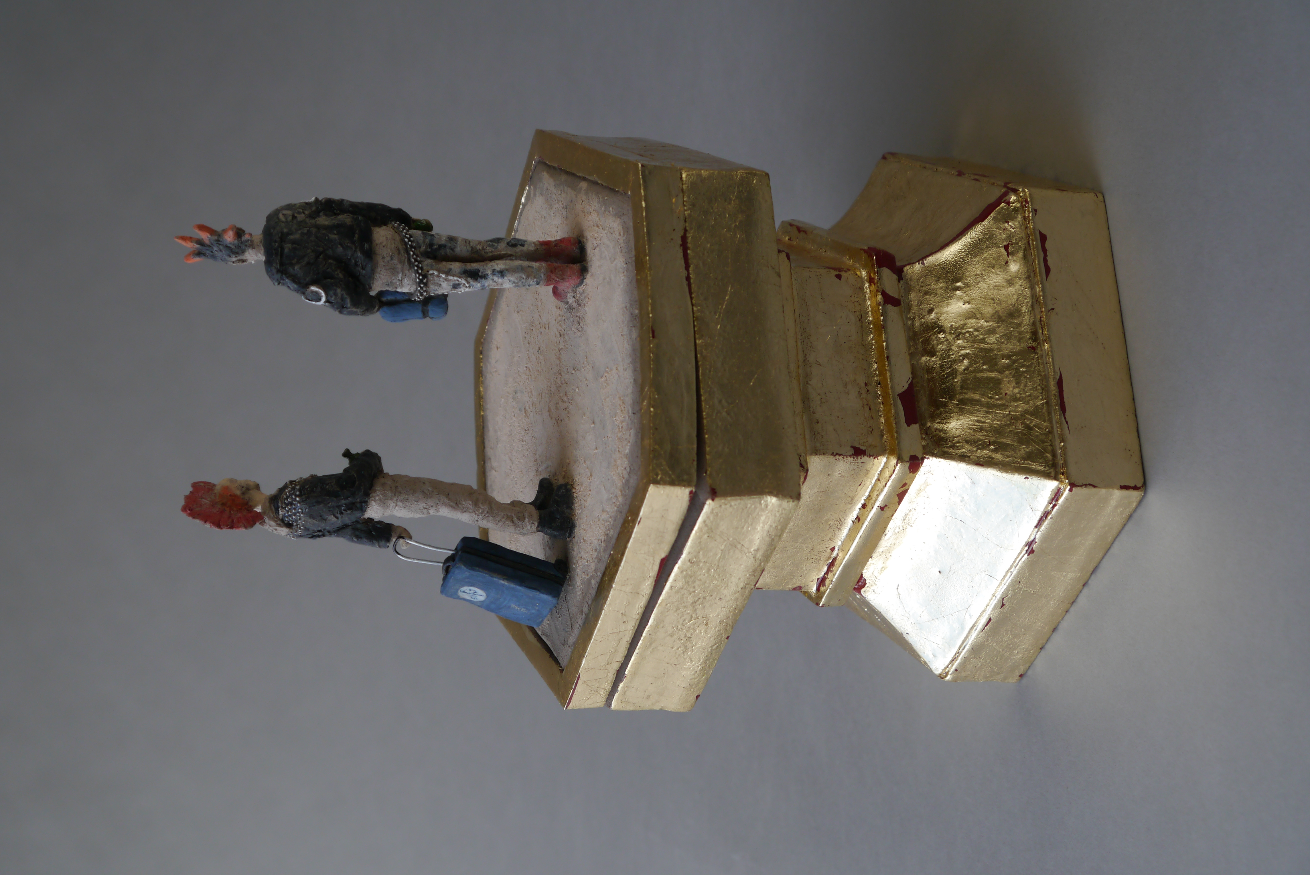 Apostelinnen XI and XII: Sylt, 2023 28 x 19 x 16,5 cm Steinzeug, Engobe, Glasur, Schlagmetall