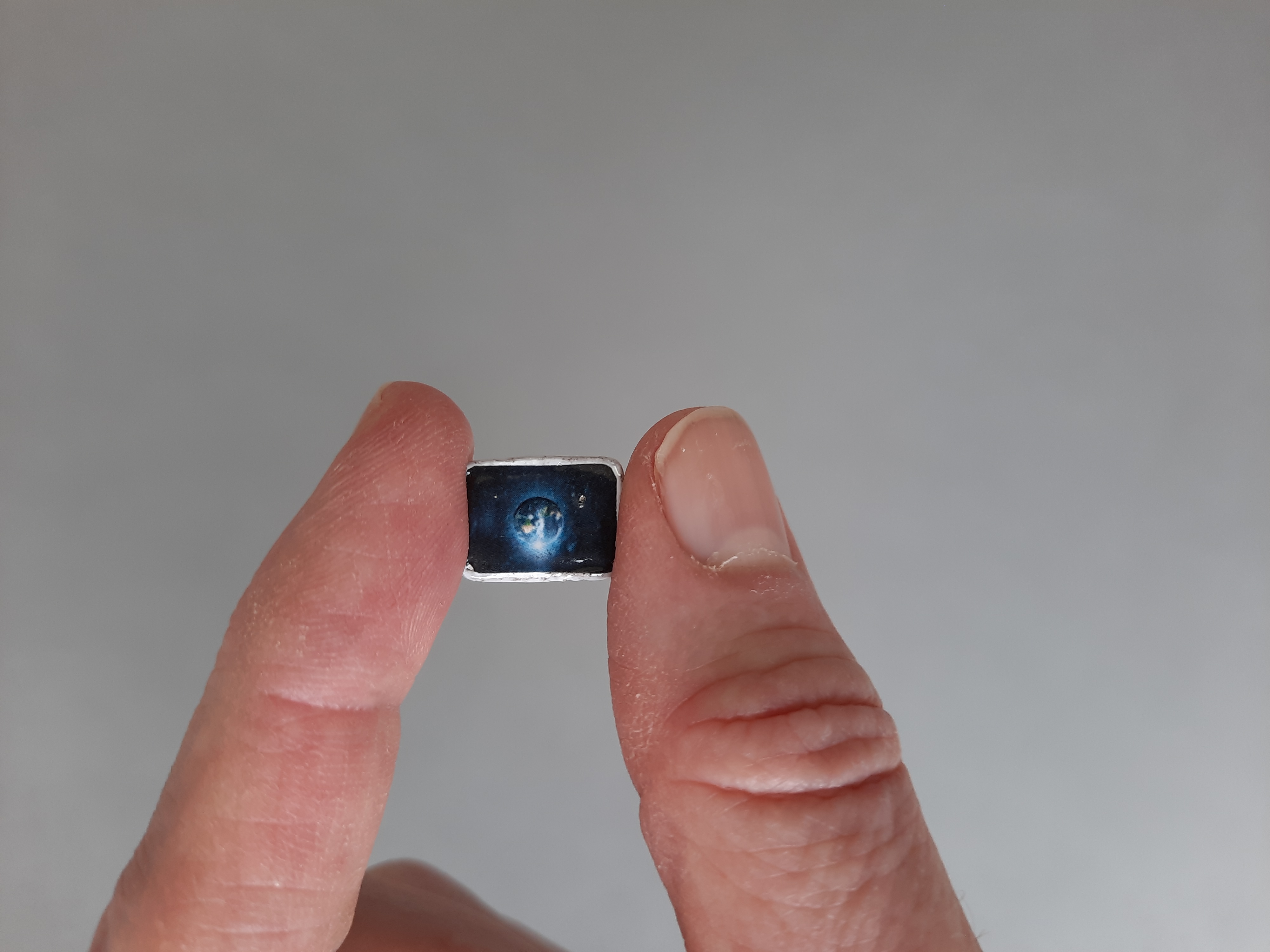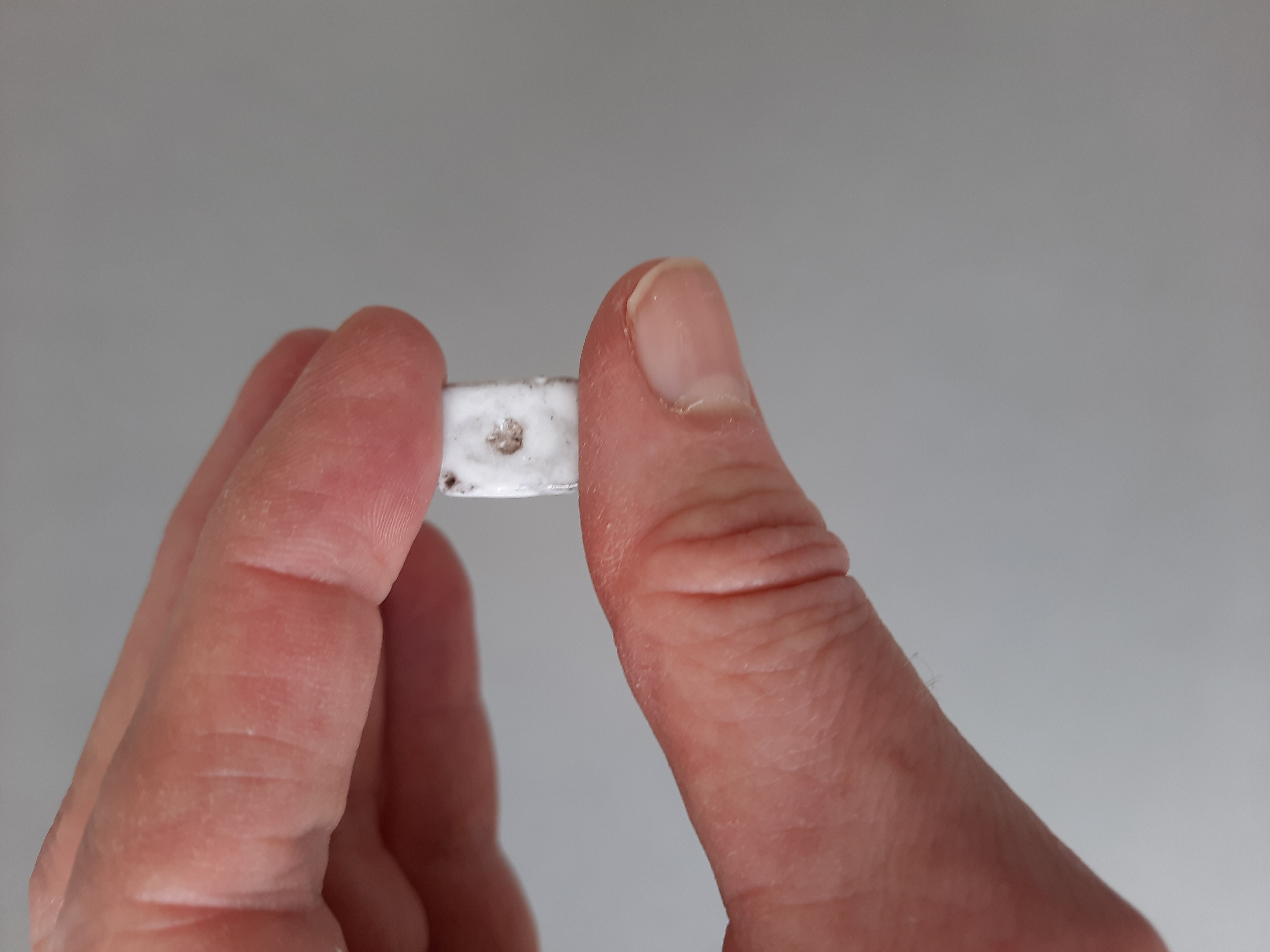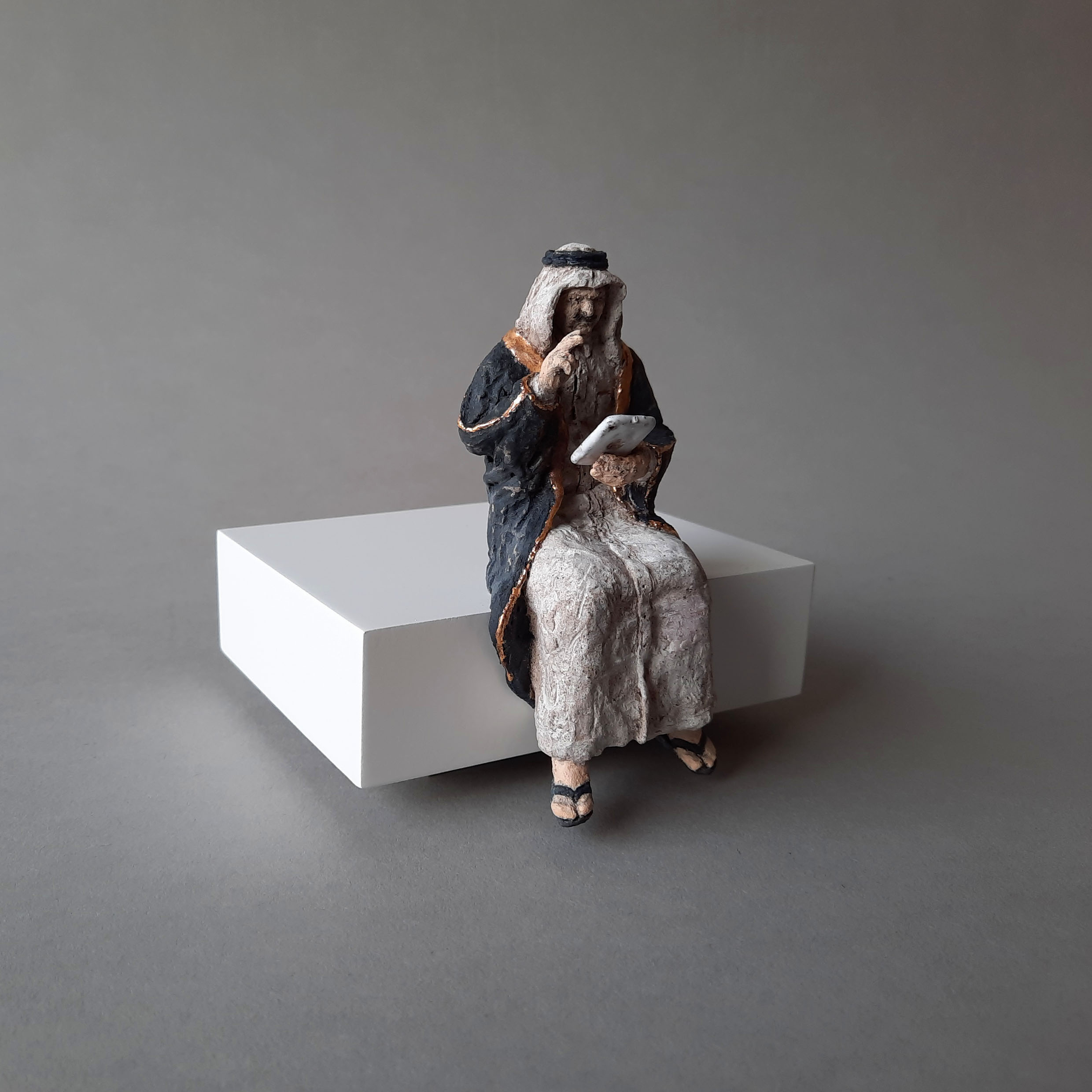 Der Pantokrator, 2023 9,5 x 5 x 5 cm , Wandsockel: 3 x 10,5 x 8 cm Steinzeug, Engobe, Glasur, Glanzgold, Keramik-Decal