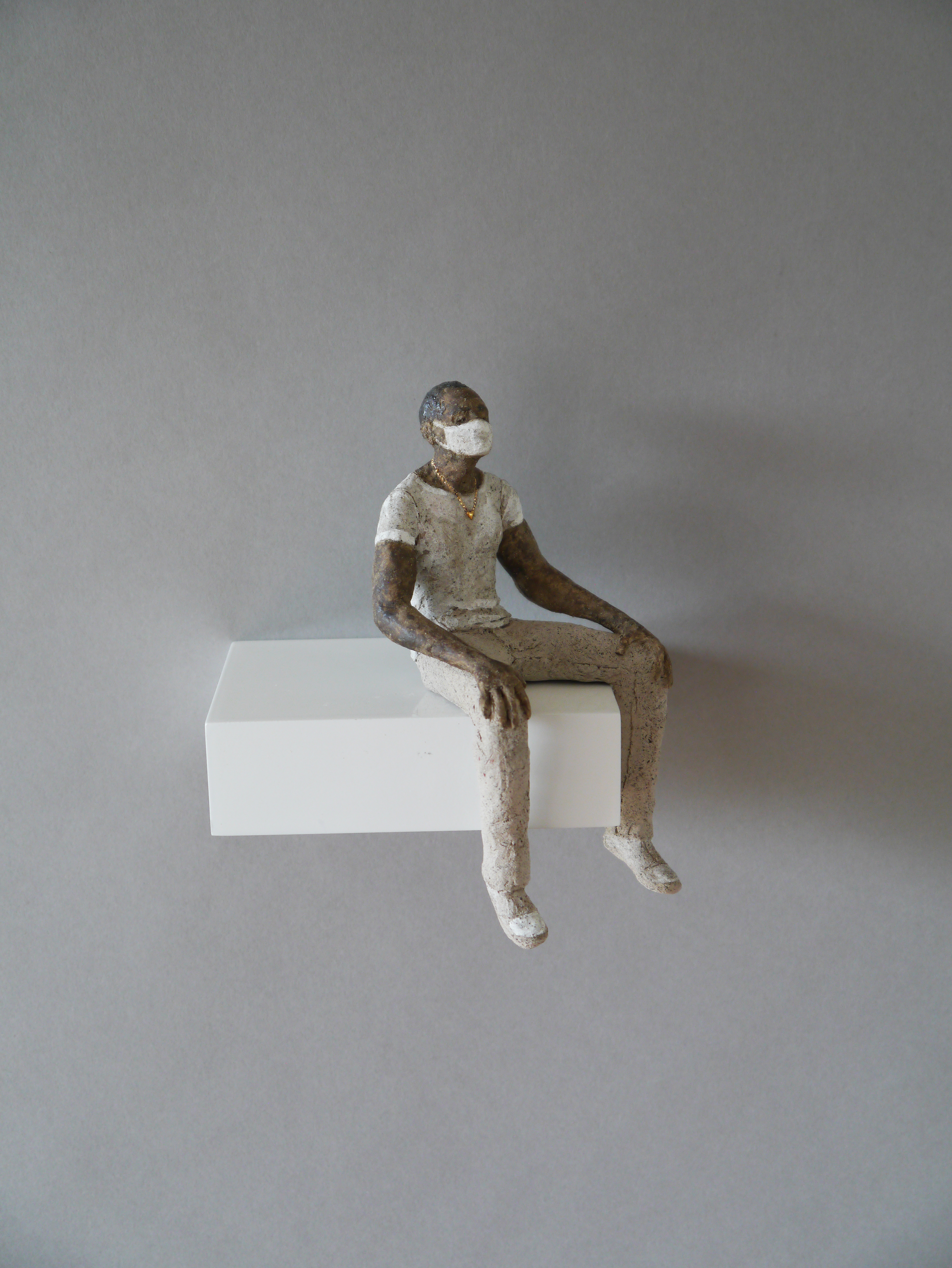 Minneapolis, 2020 7 x 14 x 7,5cm, Wandsockel 10,5 x 7,8 cm Steinzeug, Engobe, Glasur, Glanzgold, Magnete