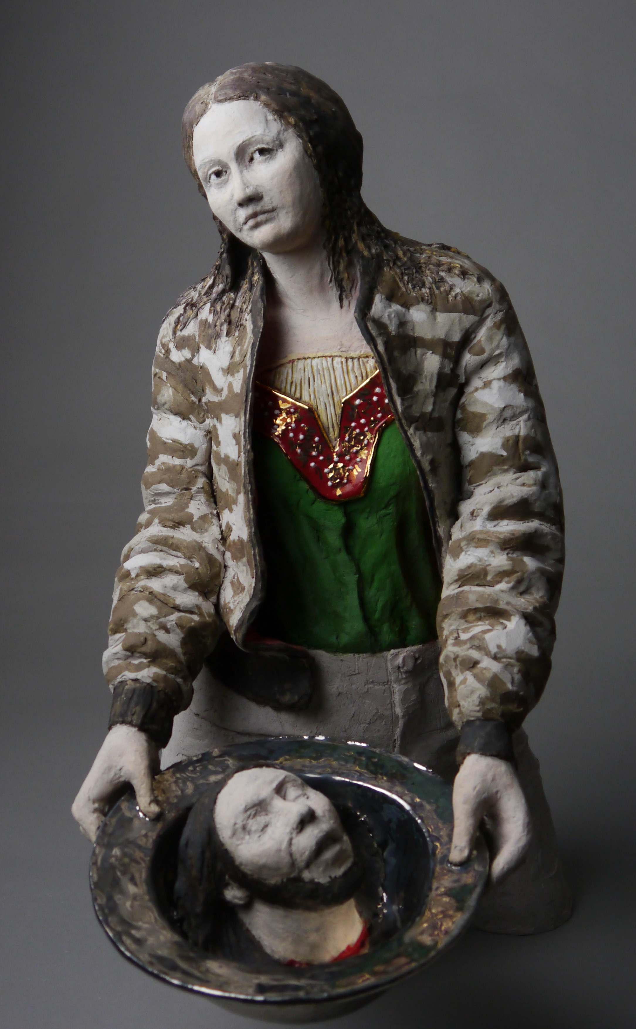 Modern Salome, 2016 51 x 30 x 35 cm Steinzeug, Engobe, Pigmente, Oxide, Glasur, Glanzgold und Glanzplatin
