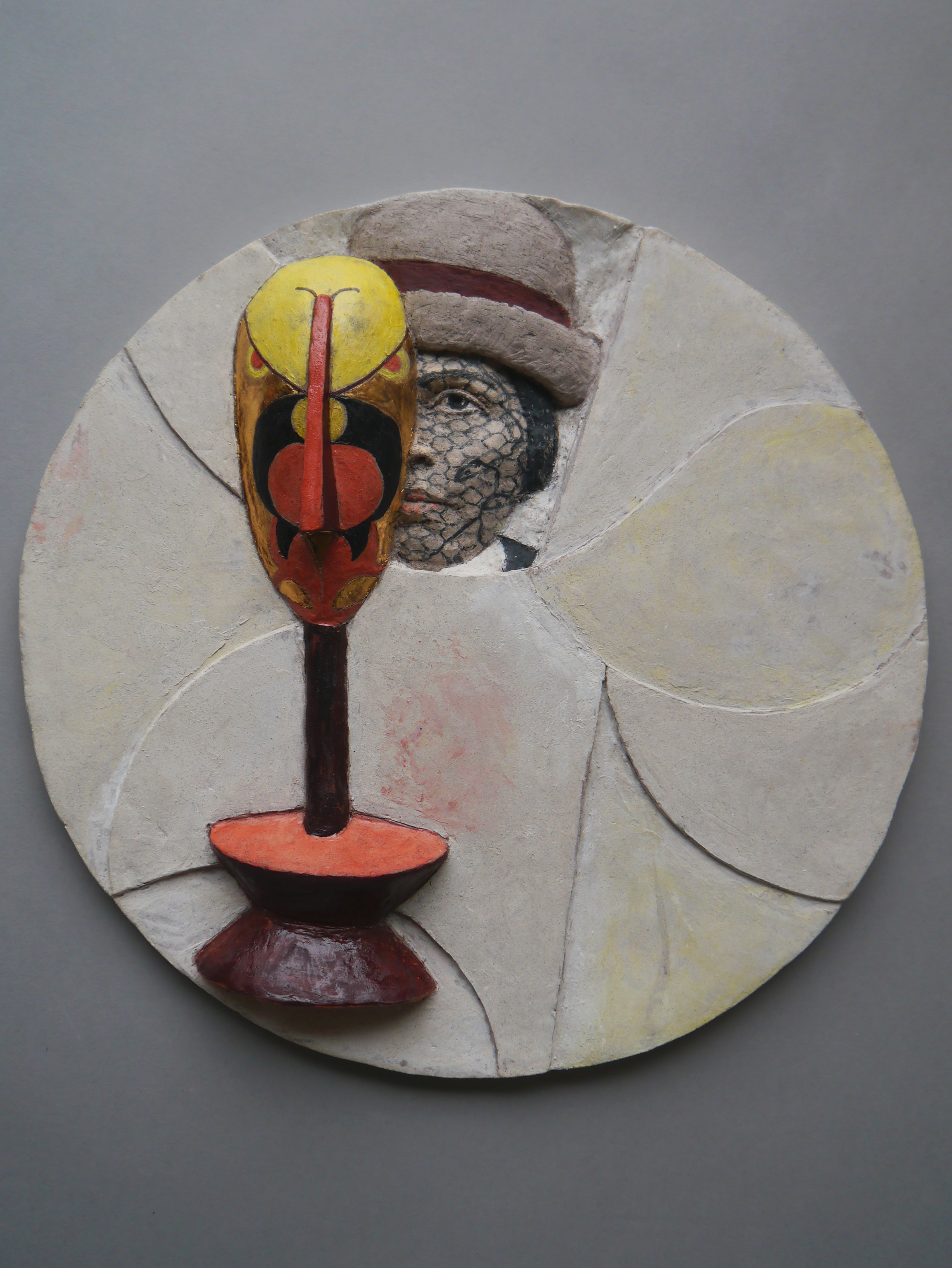 Sophie Täuber-Arp, 2022 30 x 30 x 4 cm Steinzeug, Engobe, Pigmente, Glasur, Glanzgold Wandobjekt