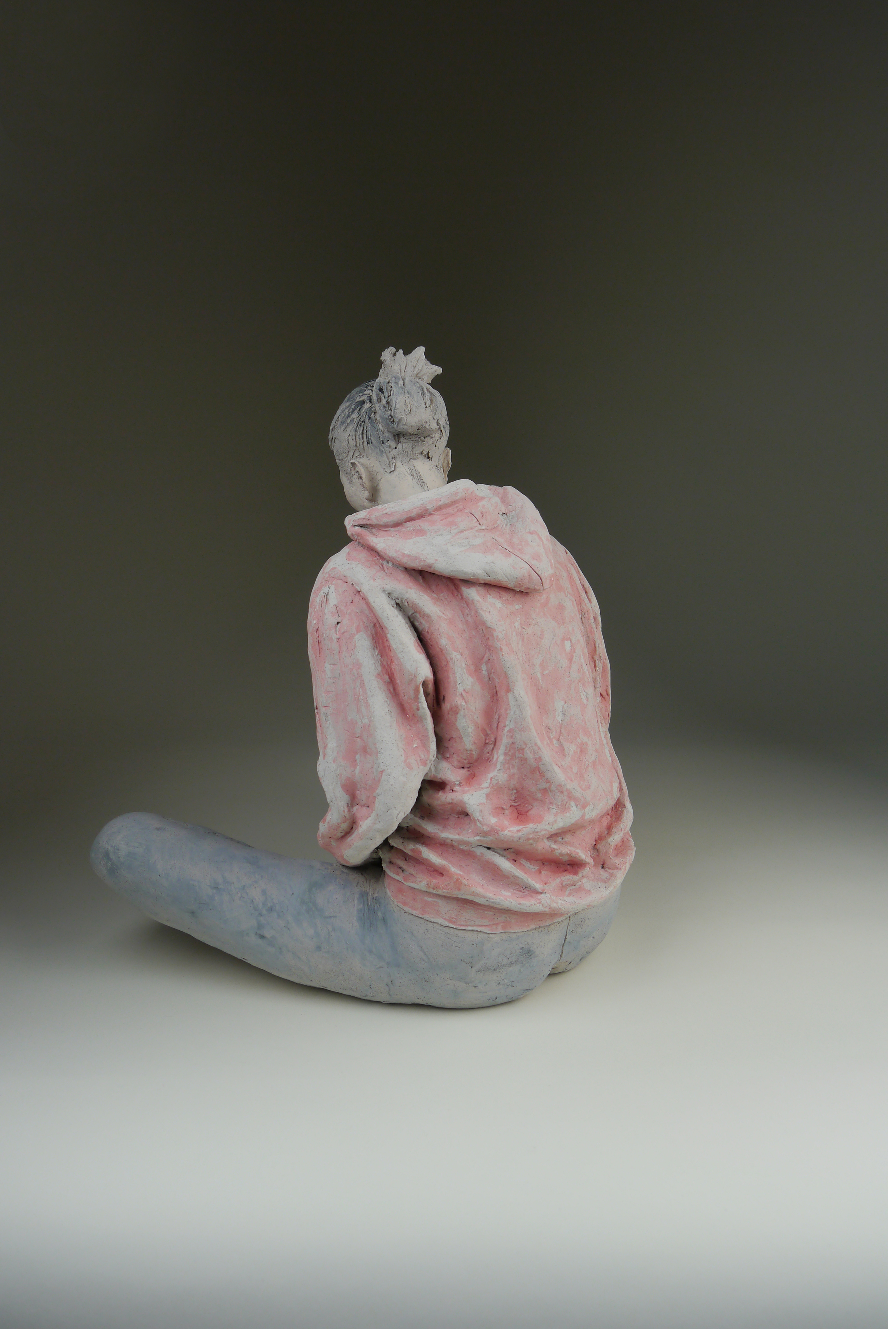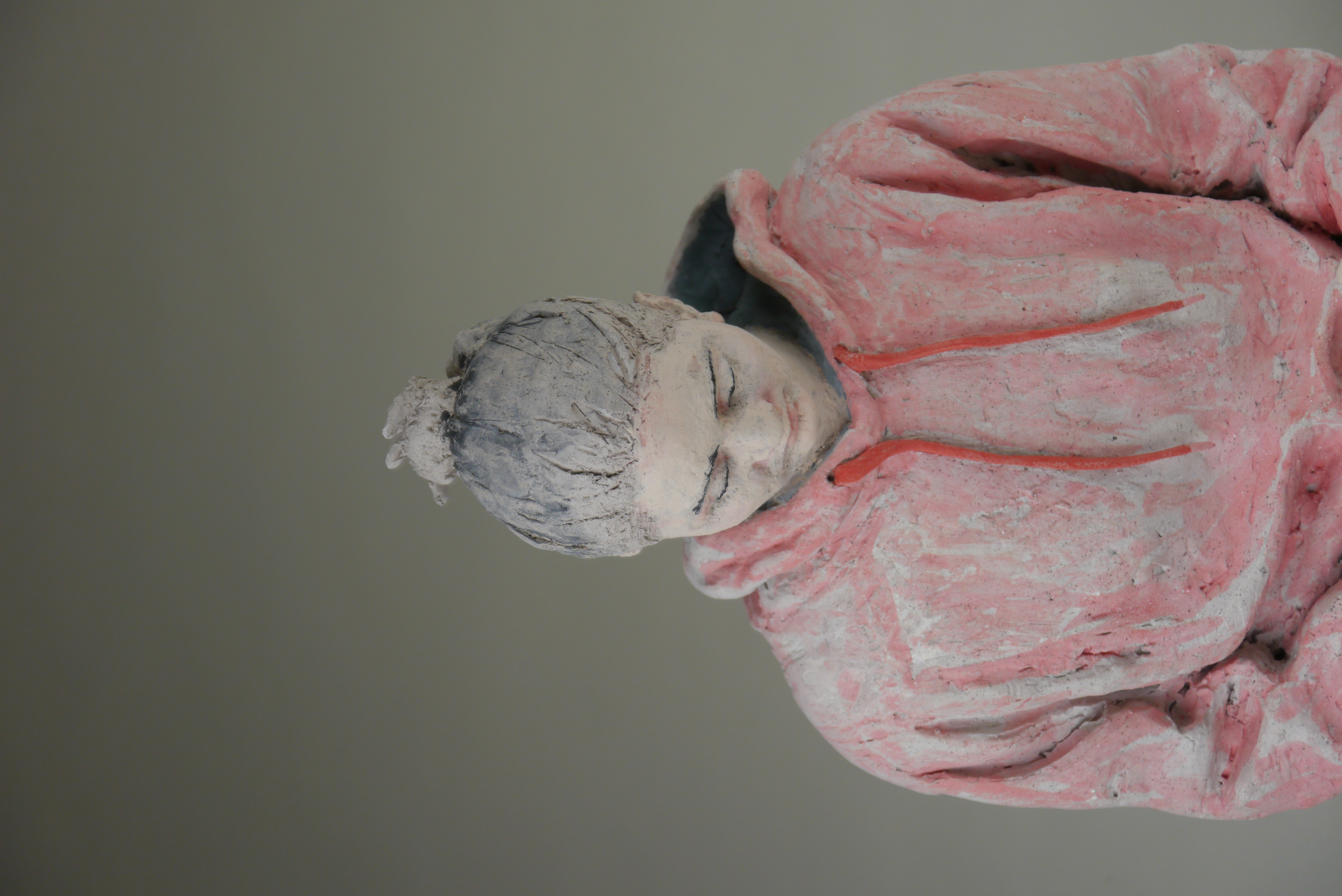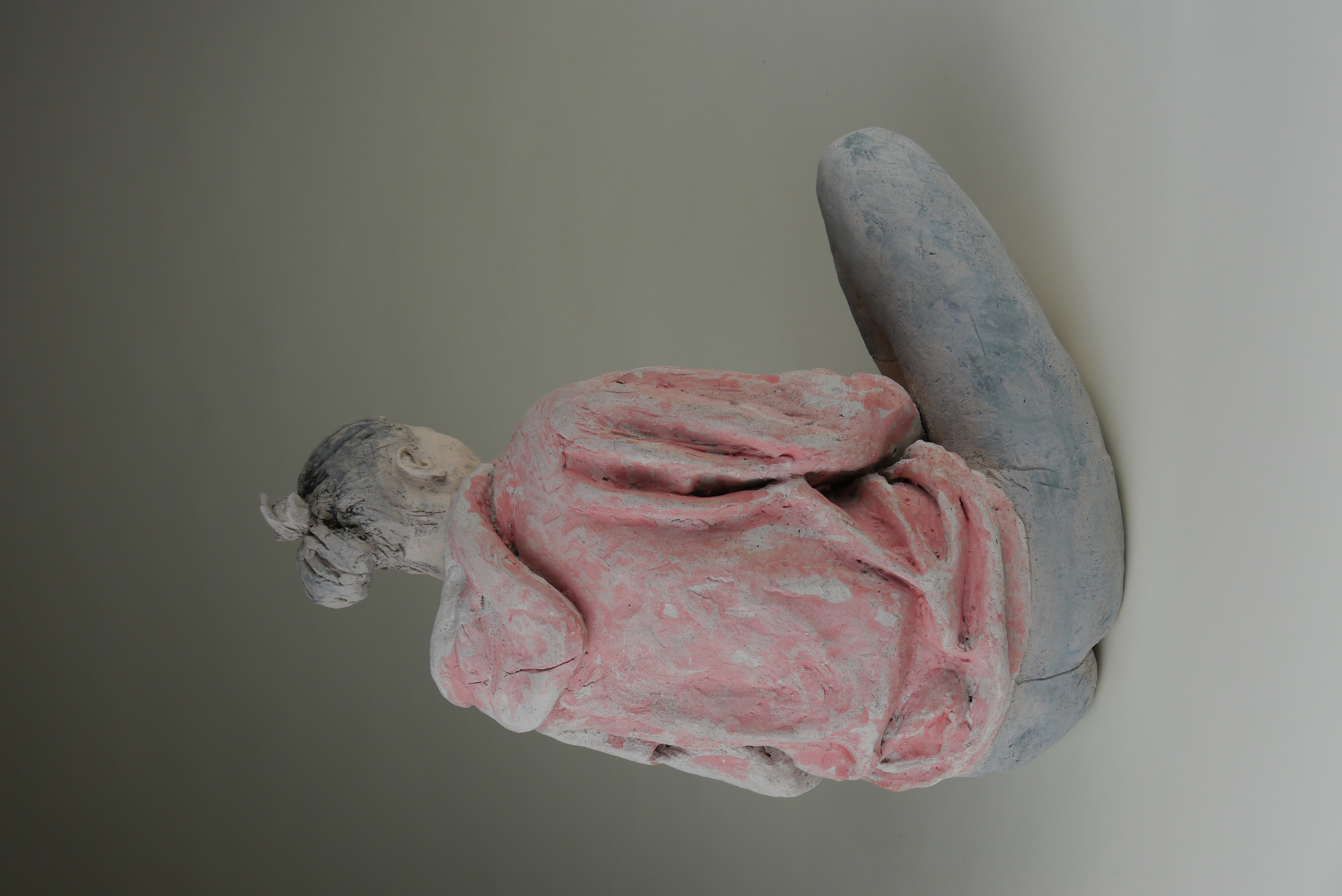 schwarzrotgold, 2017 Figur: 30 x 35 x 24 cm, Nagellackflasche: ca. 4 x 4 cm Steinzeug, Pigmente, Glasur, Glanzgold